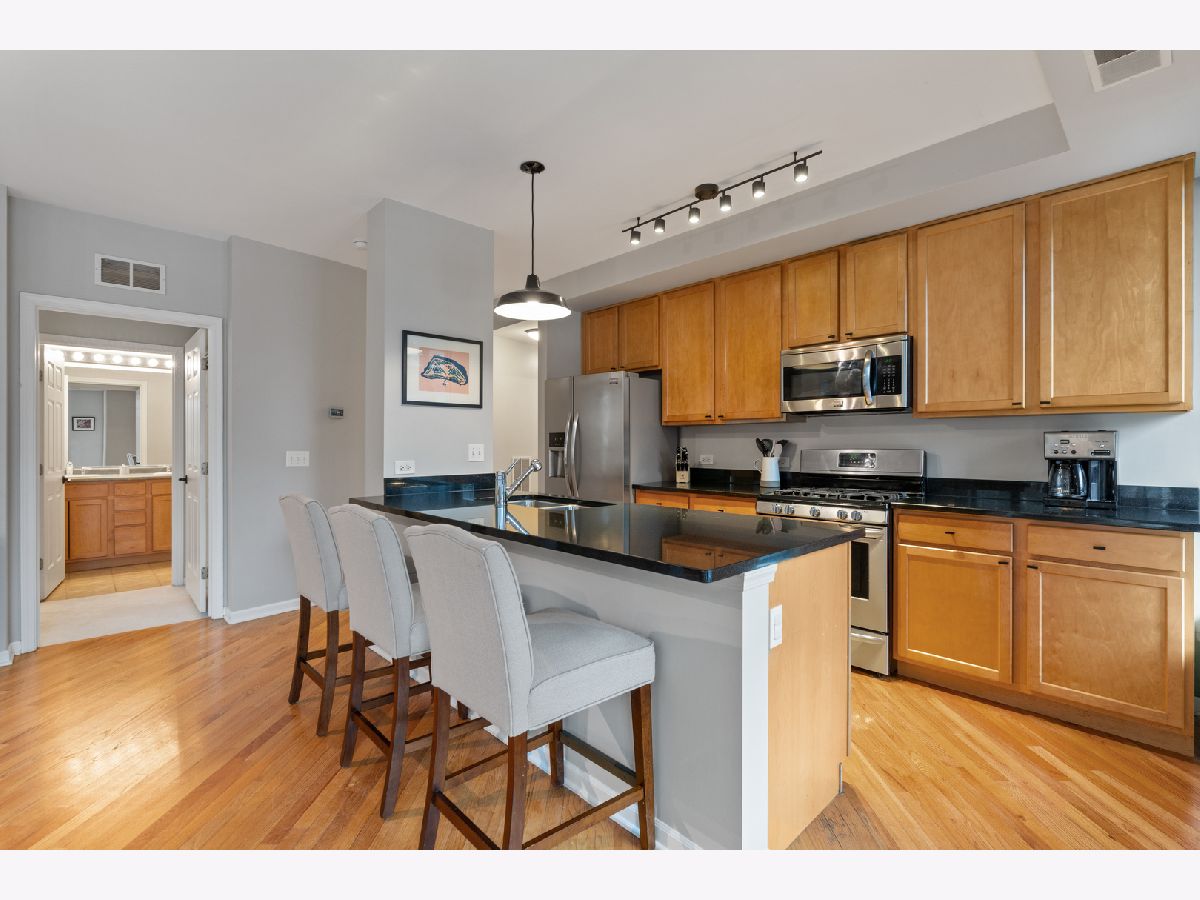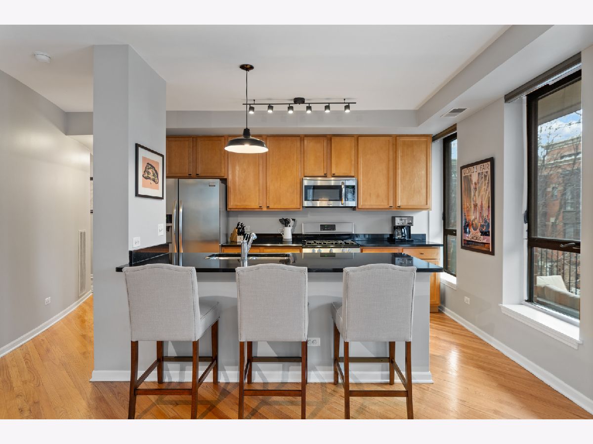 **** MULTIPLE OFFERS RECEIVED. BEST AND FINAL OFFERS DUE SUNDAY MARCH 1ST AT 12:00PM. ***** Welcome to this bright and beautifully maintained 2 bedroom, 2 bathroom corner unit in an elevator building ideally located in the heart of Chicago's sought-after Old Town neighborhood. Just steps from the area's best restaurants, shops, nightlife, parks, and public transit, this home offers the perfect blend of comfort, convenience, and vibrant city living. Front entrance leads into a spacious foyer with closet space and storage. Bright and airy living room, where floor-to-ceiling windows and balcony bring in west facing light and offers charming views of the courtyard. A gas fireplace and designated dining area create a cozy yet open space that flows seamlessly into the modern kitchen; perfect for entertaining. The kitchen features stone countertops, large island with breakfast bar, and stainless-steel appliances. Spacious primary bedroom features a walk-in closet and ensuite bathroom with double sinks. Large second bedroom, full bathroom, private covered balcony, washer/dryer and additional storage space complete this home. One garage parking space and full-size storage crate included in the price. Additional parking for rent may be available. Building to have a brand new roof and smart elevators. This home truly delivers the best of Old Town living in a move-in ready package.