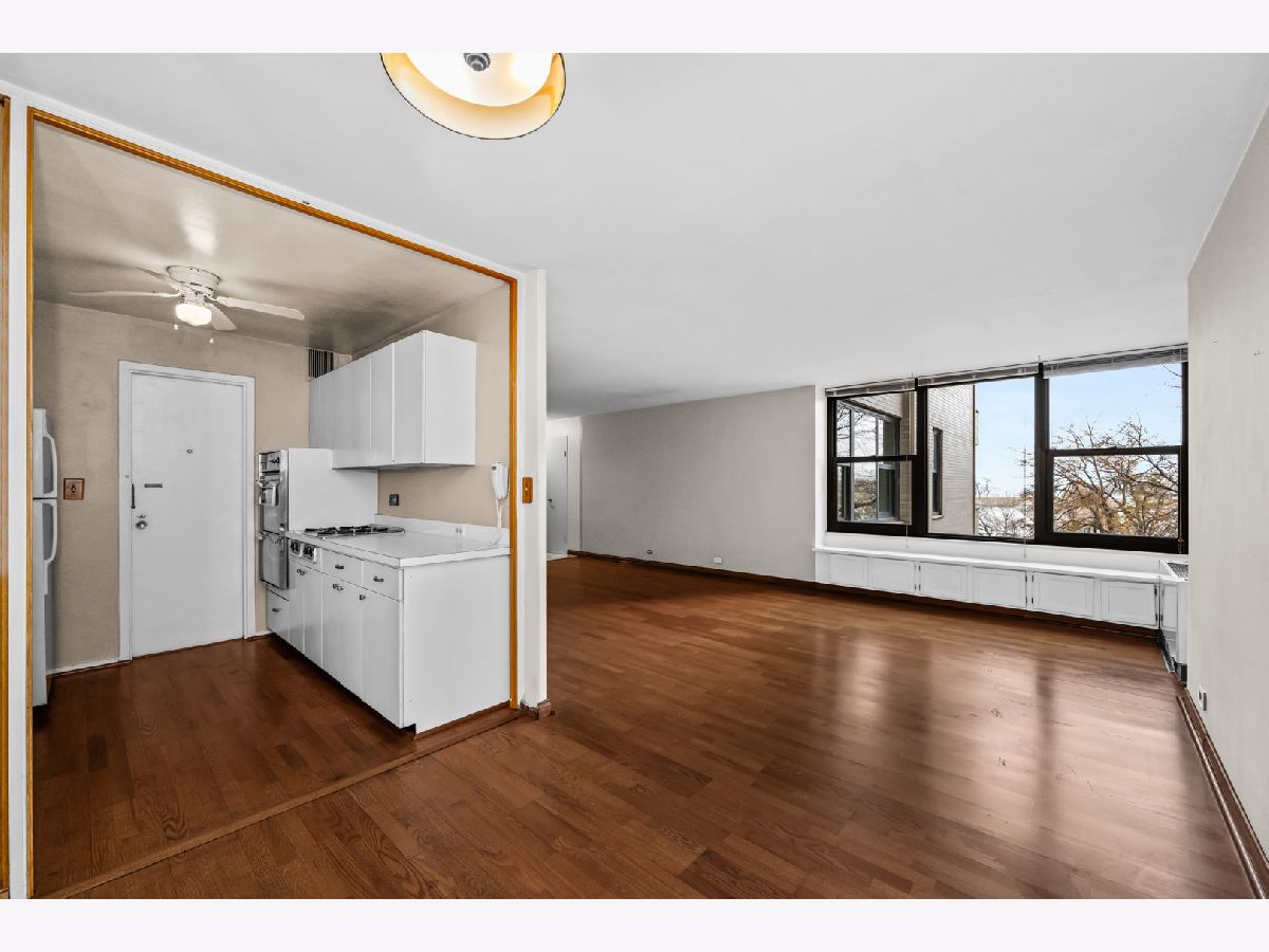 Welcome to 3430 N Lake Shore Dr unit 4K! Set in a full-amenity Lakeview high-rise, this 1-bed, 1-bath home is the perfect fit for investors, first-time buyers, or anyone ready to tailor a space to their style. With hardwood floors throughout and large windows that fill the home with natural light, the fundamentals are already in place. The kitchen offers ample cabinetry and counter space, giving you plenty of room for everyday cooking or future customization. A spacious combined living and dining area provides flexibility-ideal for entertaining, working from home, or creating your own in-city sanctuary. The bedroom is comfortably sized with great potential for your preferred layout. Whether you're envisioning a personal refresh or building your portfolio, this home delivers a solid foundation in one of Lakeview's most convenient locations. The building features 24-hour door staff, fitness center, laundry room, onsite management, and unbeatable access to the lakefront, transit (the express bus downtown is RIGHT OUTSIDE the building), and local Lakeview favorites like Anne Sathers, grocery options, and great local cafes!