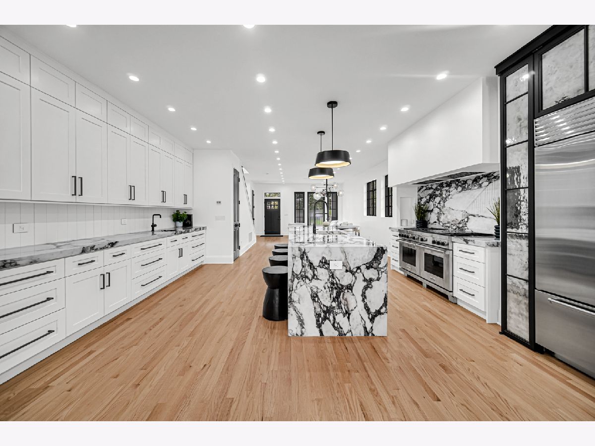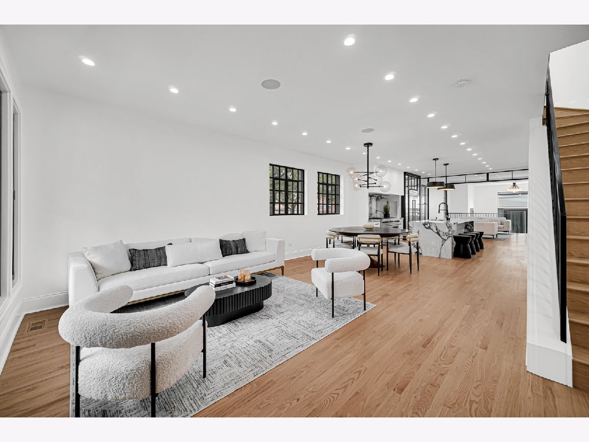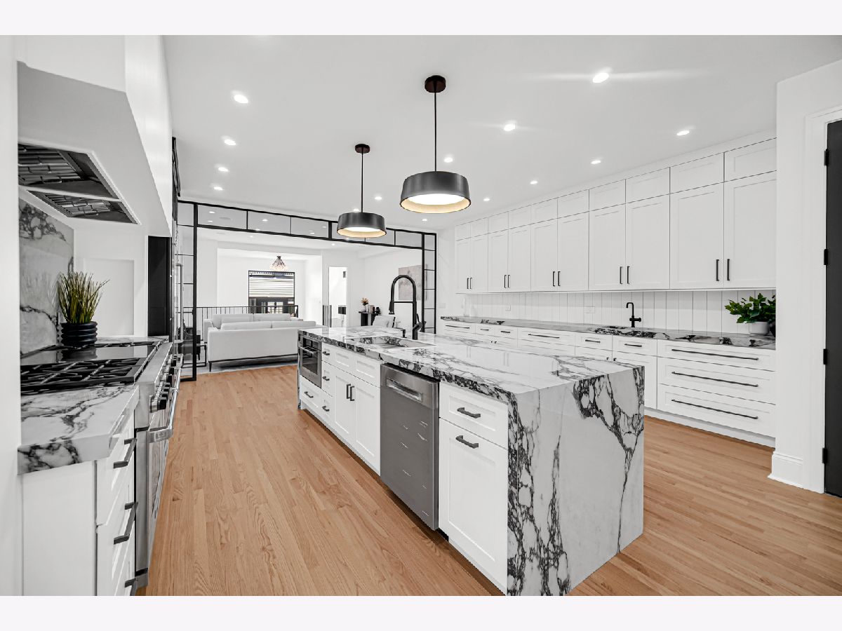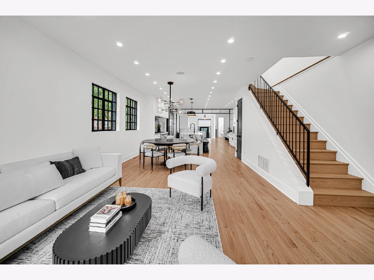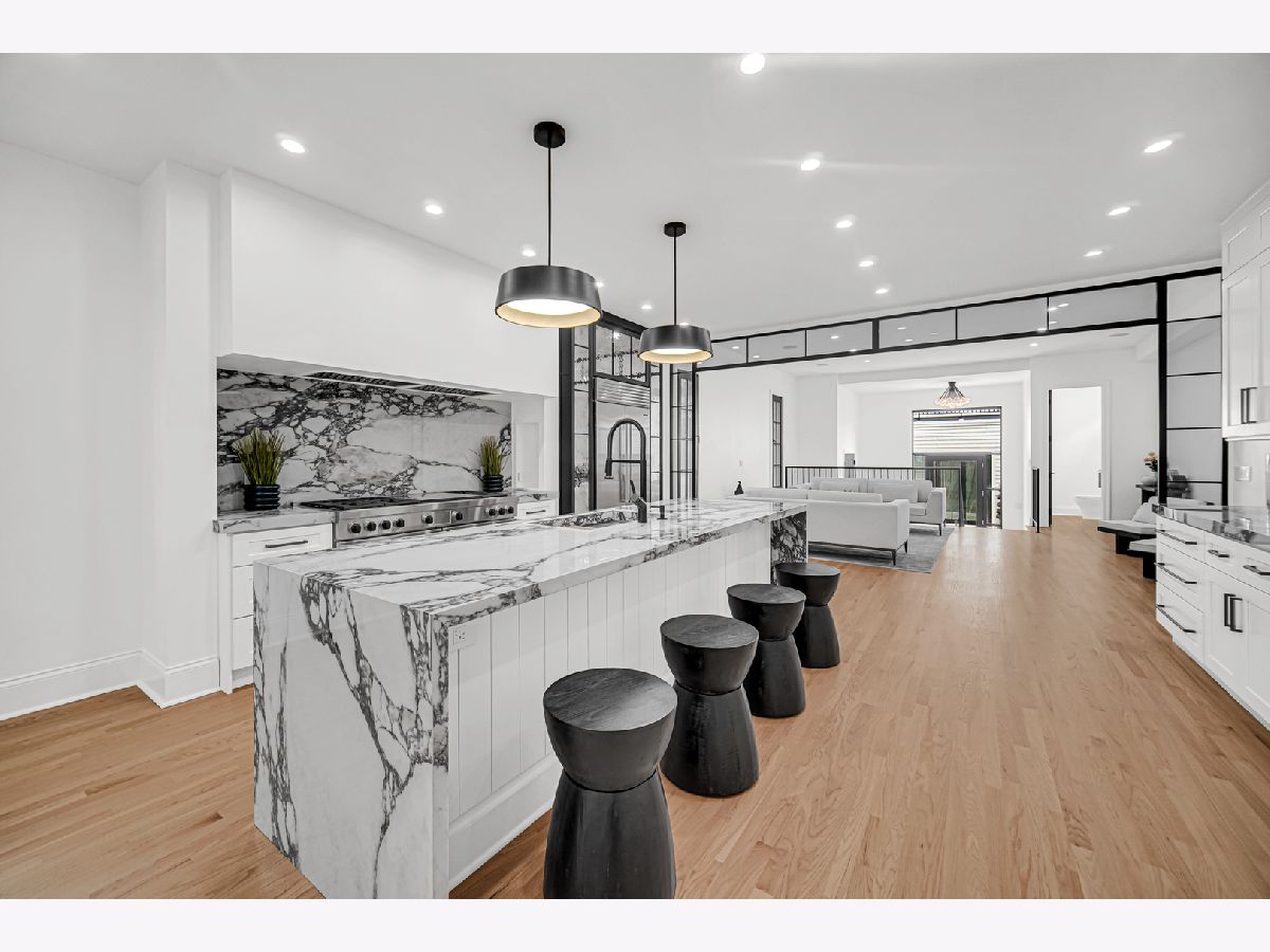 Welcome to your dream home in the heart of Logan Square, a modern single-family residence that blends luxury with thoughtful design. Perfectly situated on a corner lot, this 5-bedroom, 3.5-bath home offers the ideal balance of sophistication, comfort, and convenience. The chef's kitchen is a true showpiece, featuring a 60" Wolf range, SubZero refrigerator, Bosch dishwasher, dual sinks, and Italian countertops. Custom metalwork, designed exclusively for the home, frames the open-concept kitchen and living area, while custom cabinetry surrounds the refrigerator for a seamless, modern look. Elegant lighting and finishes from Restoration Hardware bring a refined touch of luxury throughout. Upstairs, 6 skylights fill the vaulted ceiling hallways and bedrooms with natural light, creating bright and airy spaces. Four spacious bedrooms provide room for family and guests, while the lower level extends the living space with a fifth bedroom, a sleek wet bar, and a dog wash station. A thoughtful detail for pet lovers, the back entrance even includes a "dog apartment," perfect for keeping paws clean and organized. Throughout the home, integrated speakers set the perfect ambiance for everyday living or entertaining. The exterior is equally impressive, with crisp white siding, bold black Marvin and steel windows, and striking black accents. Outdoor living abounds with a welcoming front entrance deck, a private balcony off the primary suite, a designer patio, and a spacious rooftop deck above the 2-car garage. Located near Palmer Square Park, the 606 Trail, and the vibrant dining and shopping scene of downtown Logan Square, this home offers both a family-friendly environment and sophisticated city living. Whether hosting a gathering or enjoying a quiet evening at home, this residence was designed for those who appreciate quality, style, and comfort.