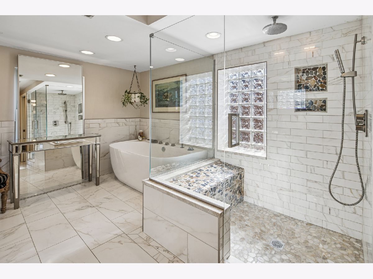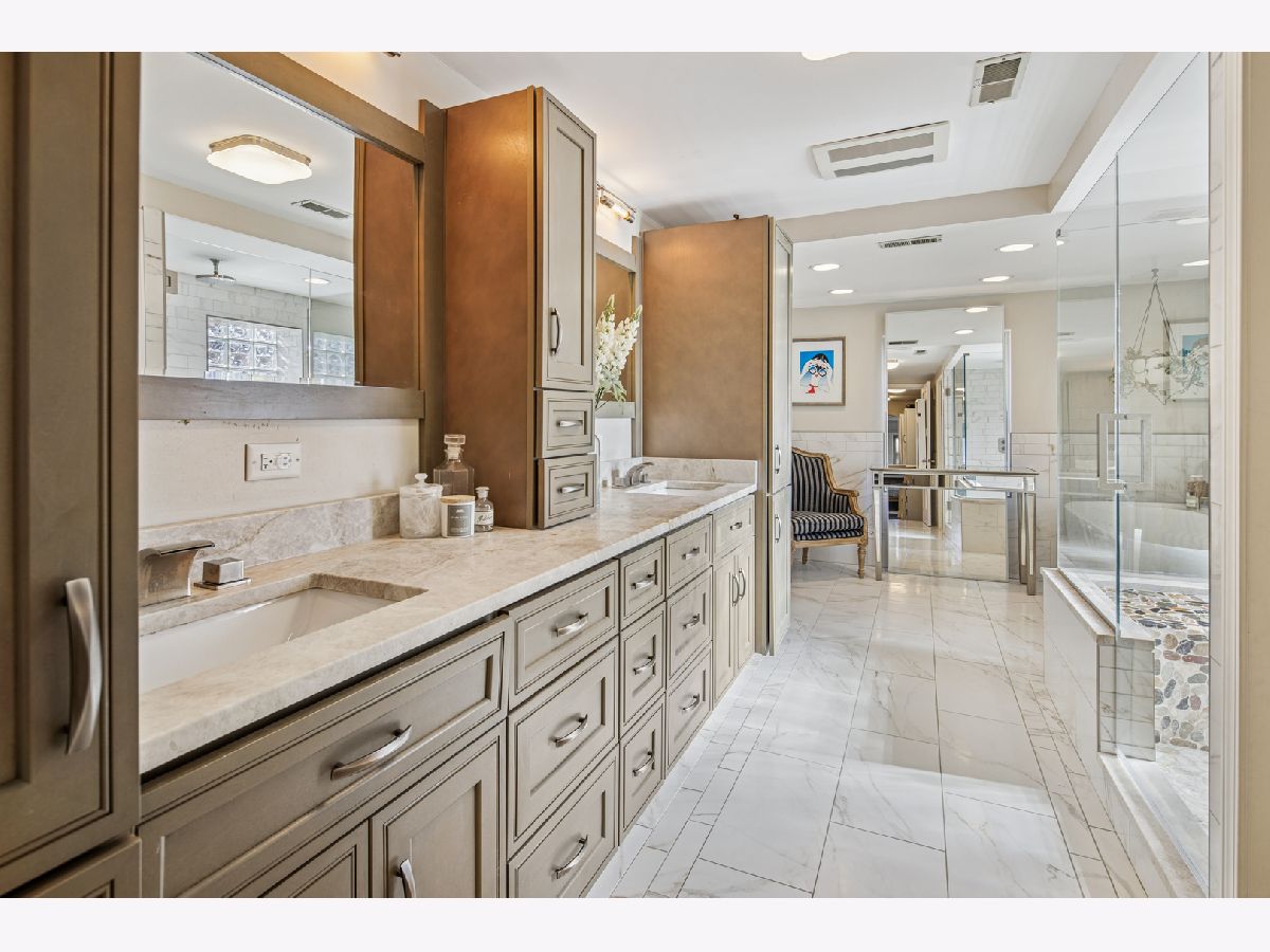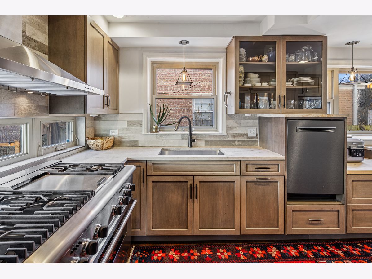 Beautifully updated oversized corner lot home on a picturesque tree lined street in the heart of North Park. This move in ready residence blends classic charm with extensive modern upgrades throughout. The welcoming foyer features a sweeping staircase and hardwood floors that lead into a flexible open floor plan ideal for everyday living and entertaining. The brand new chef's kitchen showcases top of the line appliances, custom cabinetry, and quartzite countertops. Spacious living and dining areas are accented by a fireplace, brick details, and barn doors opening to a comfortable family room. The second level offers a generous primary suite with a custom walk in closet and a newly renovated spa inspired bathroom with radiant heated floors, frameless glass shower, and six foot soaking tub. Two additional large bedrooms, a full bath, a remodeled powder room, and second floor laundry complete the upper level. The finished lower level includes an authentic rec room with fireplace and wet bar, plus a secondary laundry hookup. Recent improvements include new siding, Roma bio mineral exterior paint, fresh interior paint, a new sump pump and drain tile system by US Waterproofing, and concrete repairs to the oversized driveway. Outdoor living is exceptional with a fully redesigned backyard featuring new landscaping, a Trex patio, built in exterior heaters, 360 degree fencing, and a gated driveway that creates a private oasis rarely found in the city. Ideally located near Peterson Park, North Park Nature Center, excellent schools, dining, and neighborhood amenities. A rare opportunity to own a thoughtfully renovated home in one of Chicago's most desirable neighborhoods.