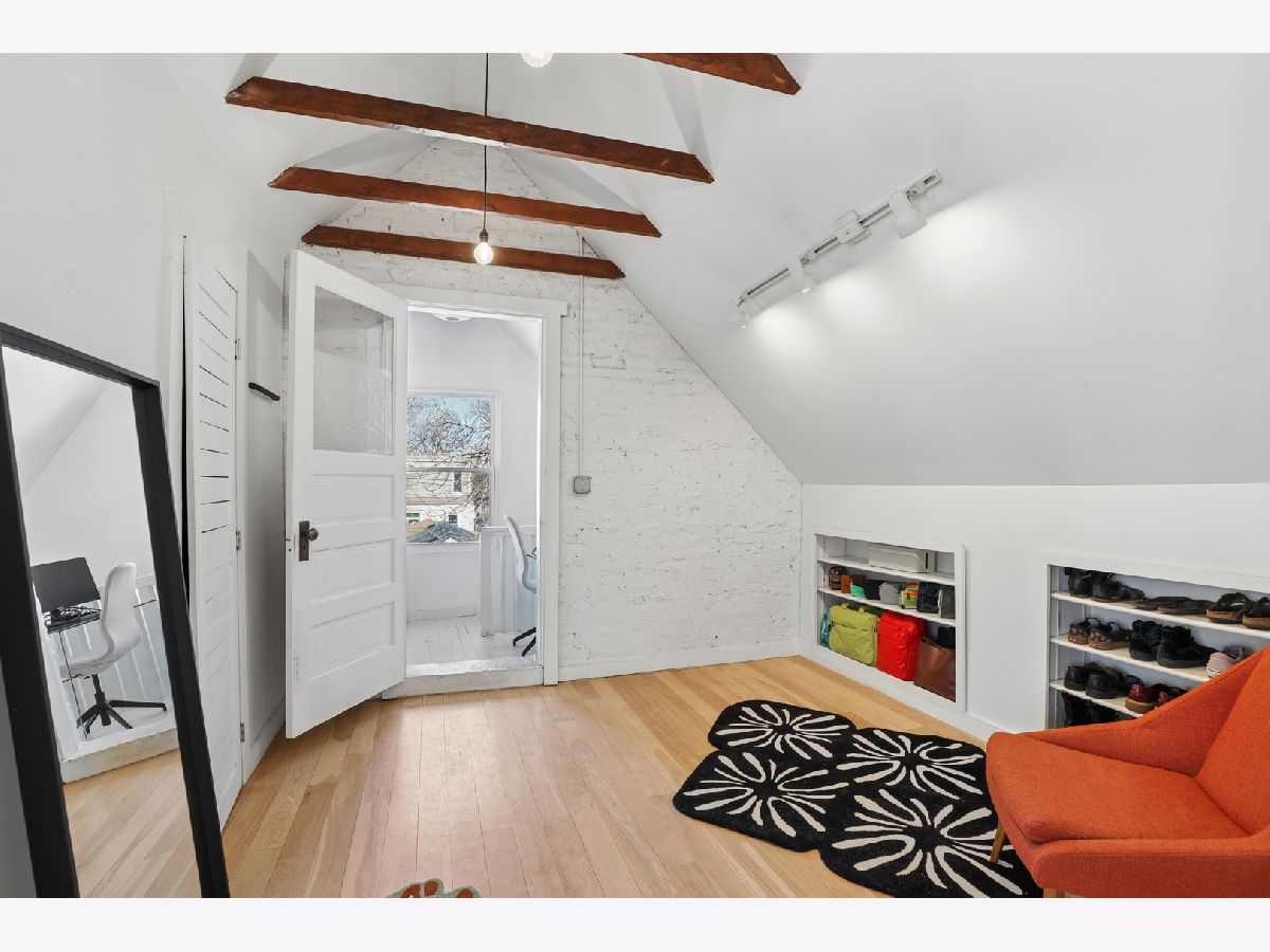 Charmingly renovated brick, single family home on desirable Beach Street in the heart of Humboldt Park. Lovingly and stylishly rehabbed over the course of the last eight years. Main floor is warm and inviting with refinished hardwood floors, a formal living room with remote controlled gas fireplace, and formal dining room. Kitchen features open concept shelving, new maplewood floors, butcher block countertops, and pantry. The two first floor bedrooms both fit a Queen sized bed and could also be a great nursery or work from home space and there's an updated full bathroom with subway tile and a deep bathtub. Upstairs is a lofted primary suite with exposed original wooden rafters, a sitting room, reading nook, second gas fireplace, full bathroom with clawfoot tub and tons of closet space. Space to grow in the full basement, and the landscaped backyard with a fire pit is an urban retreat. There's also a 2 car detached garage. Additional updates include gutters (2020), light fixtures, floors throughout, roof (2019), hot water heater (2023), new HVAC (2023), exterior iron fencing and laundry/mud room. All newer appliances. Basement is ready to finish with new plumbing for an extra half bathroom and have extra living space! Live on this quiet one way street, just blocks from Humboldt Park and popular shopping/ dining close by!