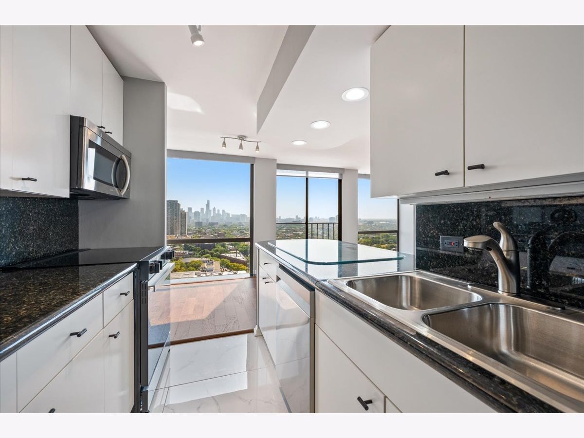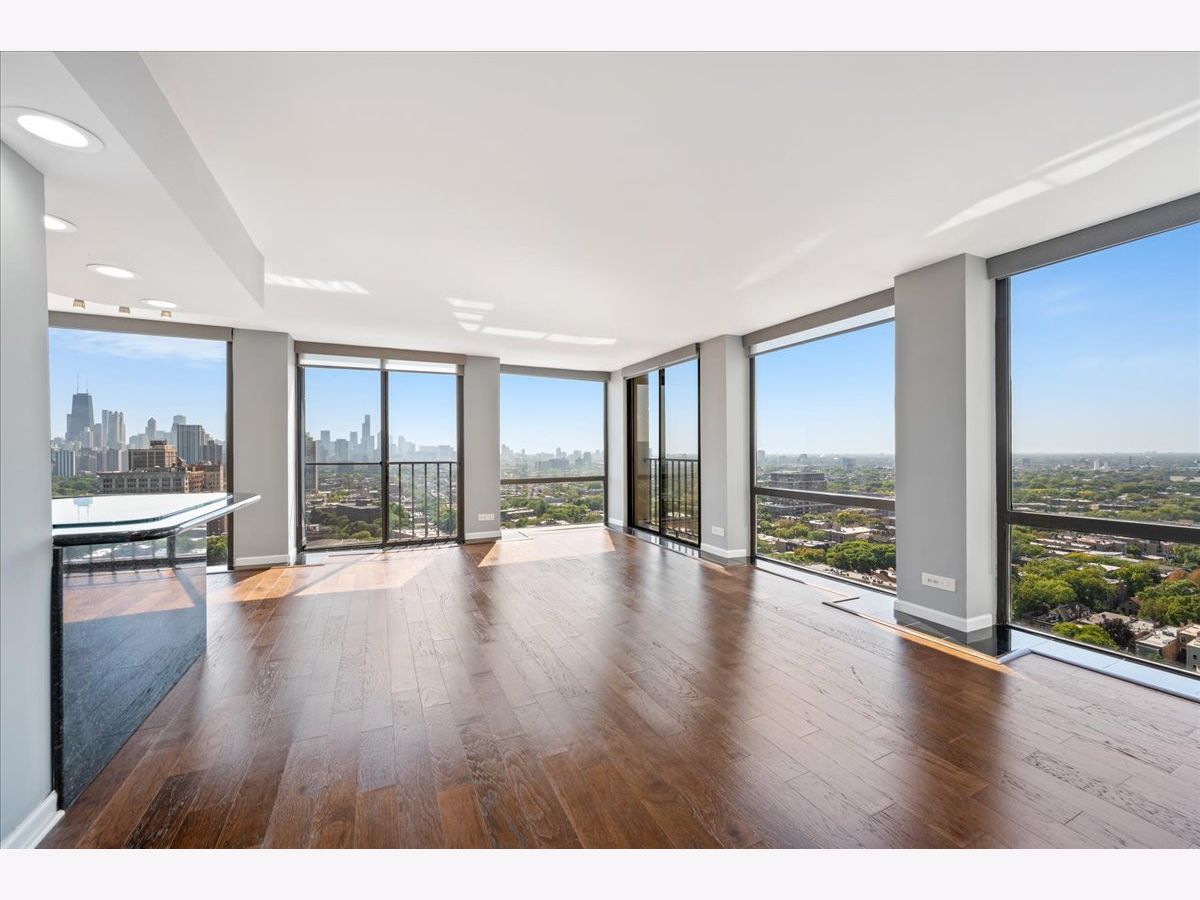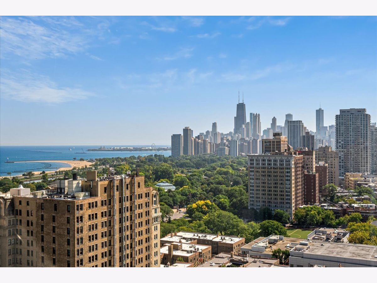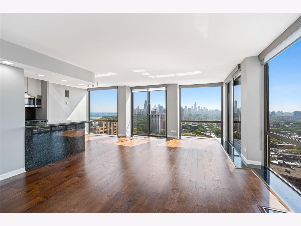 Experience breathtaking panoramic south, east, and west views of the Chicago skyline and Lincoln Park from this beautifully updated 2-bedroom, 2-bath residence at 345 Fullerton. Designed for both comfort and style, the home features hardwood and quartz floors, a white kitchen with new stainless steel appliances, stone countertops and island seating, plus refreshed bathrooms with marble and quartz finishes and new vanities. The primary suite offers a spacious walk-in closet, while the second bedroom-set off the living room with French doors-provides flexibility for a guest room, office, or den. Enjoy the full-service building with 24-hour security, fitness center, outdoor terrace with grills, and rental parking available. Step outside your front door to enjoy convenient bus access, the Lincoln Park Zoo, lakefront trails, green space, and all that city living has to offer.