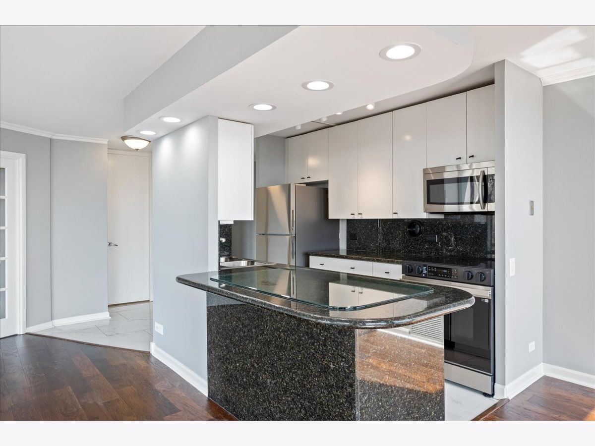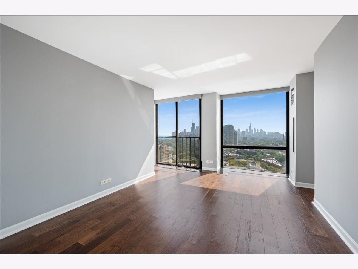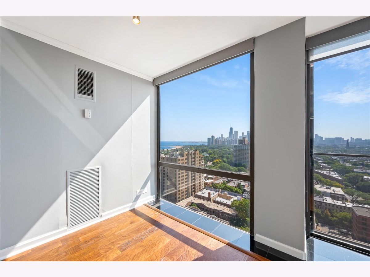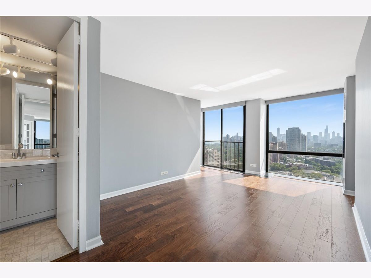Experience breathtaking panoramic south, east, and west views of the Chicago skyline and Lincoln Park from this beautifully updated 2-bedroom, 2-bath residence at 345 Fullerton. Designed for both comfort and style, the home features hardwood and quartz floors, a white kitchen with new stainless steel appliances, stone countertops and island seating, plus refreshed bathrooms with marble and quartz finishes and new vanities. The primary suite offers a spacious walk-in closet, while the second bedroom-set off the living room with French doors-provides flexibility for a guest room, office, or den. Enjoy the full-service building with 24-hour security, fitness center, outdoor terrace with grills, and rental parking available. Step outside your front door to enjoy convenient bus access, the Lincoln Park Zoo, lakefront trails, green space, and all that city living has to offer.
