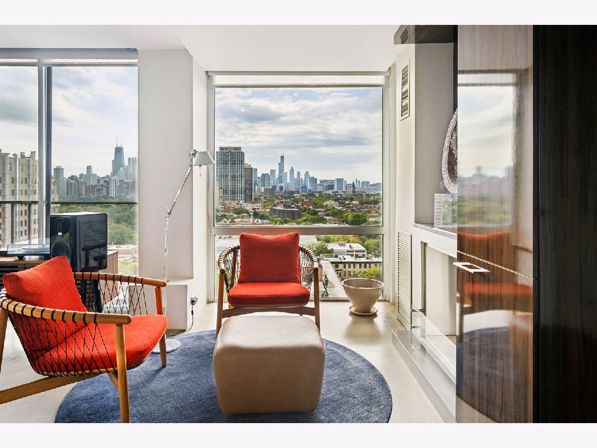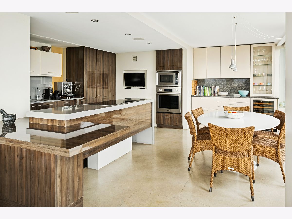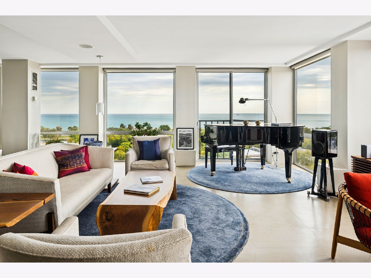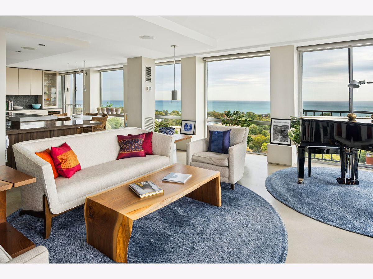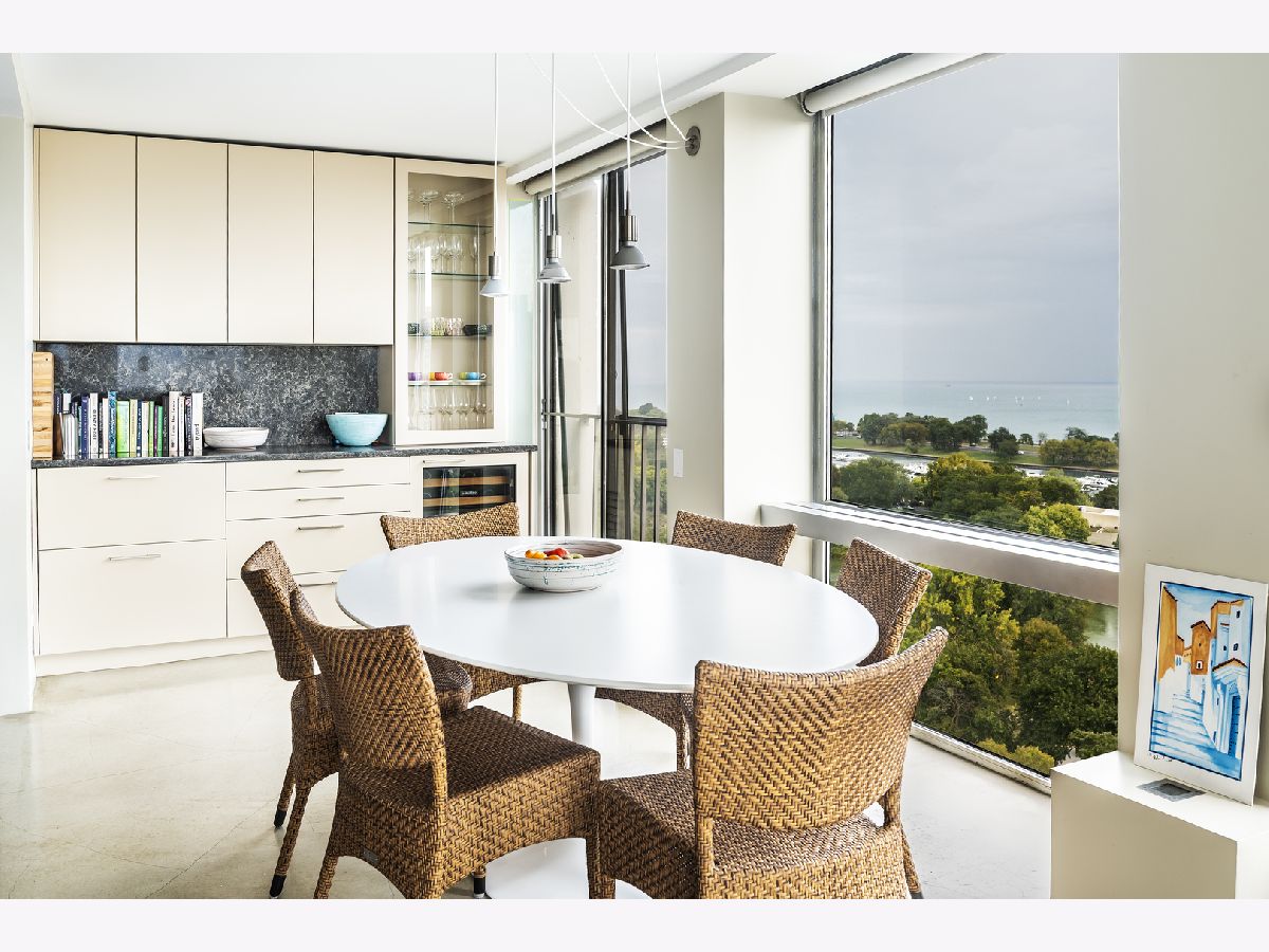 Three condos have been seamlessly combined to create a spectacular 3,350 sq. ft. four-bedroom residence showcasing world-class views of the lake, park, and skyline. This striking contemporary home features a clean, modern design with exceptional flow and generous, flexible living spaces-all framed by floor-to-ceiling windows capturing breathtaking panoramas. Polished concrete and hardwood floors, European-style baths, and designer lighting elevate the aesthetic throughout. The northeast corner living and dining area offers a fireplace, custom built-ins, electric shades throughout and stunning natural light. The chef's kitchen impresses with Leicht cabinetry, Thermador induction cooktop, Bosch dishwasher, Dacor ovens, a breakfast bar, and ample space for a dining table.The luxurious primary suite includes a custom walk-in closet and spa-like bath with wall-mounted Duravit sinks, airjet soaking tub, and steam shower. Additional highlights include three more bedrooms and baths, a family room, a den/office, and in-unit laundry. Valet and self-parking available. Ideally located within the highly sought-after Lincoln Elementary School District.