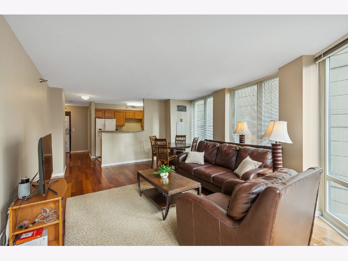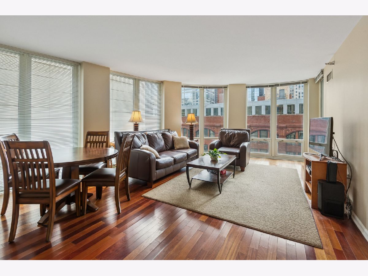 Welcome to Unit 1006 at the Sterling. An Exceptional 2 Bed, 2 Bath Condo in the Heart of River North, Offering an Ideal Blend Of Space, Light, and Full-Service Amenities. This Thoughtfully Designed Residence Features Engineered Hardwood Floors Throughout, Floor-To-Ceiling Windows that Flood the Home with Natural Light, and the Convenience of an In-Unit Washer/Dryer. The Spacious Kitchen Offers Ample Cabinet Storage, Generous Counter Space, and a Breakfast Bar Perfect for Everyday Living or Entertaining. Step Outside to a Large Private Balcony-Rare for the Area-Easily Accommodating a Grill and Outdoor Furniture. The Primary Suite is Generously Sized and Well-Appointed with a Walk-In Closet, Additional Linen Closet, and a Full-Length Vanity with Abundant Counter & Storage Space. With a Split Bedroom Floor Plan, the Second Bedroom is Ideal for Guests, Roommates or an in Home Office. Residents Enjoy Some of the Best Amenities in River North, Including a Fully Equipped Cardio Room and Separate Weight Room, a Massive Resort-Style Sundeck with Grills, Fire Pits, Cabanas, a Dog Run, and Ample Lounge Seating. The Building also Features a Large Outdoor Pool, Full-Size Tennis And Pickleball Courts, 24/7 Door Staff and Maintenance, and an On-Site Property Manager. Unmatched Convenience Is Offered With Direct Building Access To 7-Eleven, CVS, Subway, and a Dry Cleaner. An Outstanding Opportunity for Both First Time Homebuyers and Investors Alike, the Building Boasts Low HOAs, NO Rental Cap or Restrictions, and a Prime Location Just Steps From The Loop-Ensuring Consistent Rental Demand in one of Chicago's Most Desirable Neighborhoods.