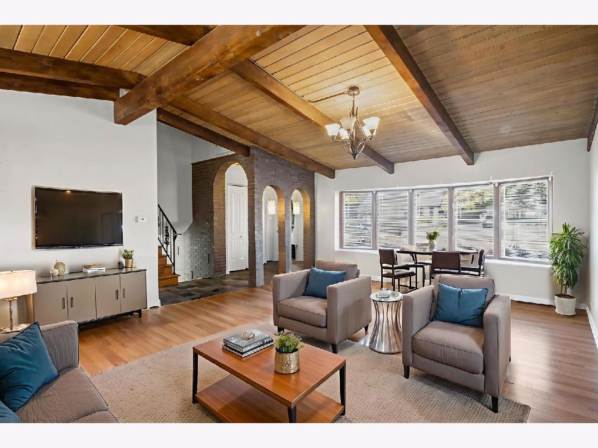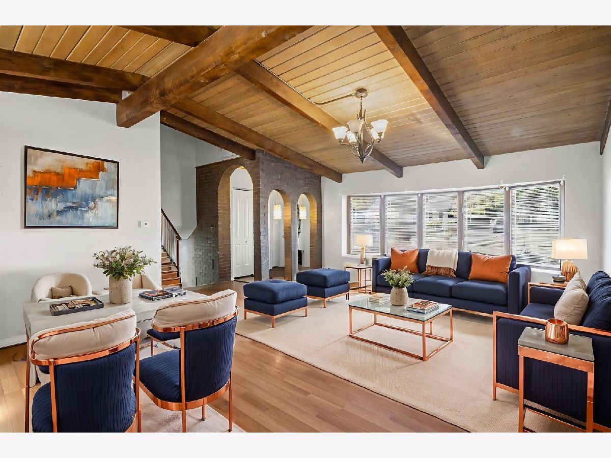 Meticulously maintained mid-century gem in the highly sought-after Northbrook neighborhood! This 3-bedroom, 2-bath single-family home showcases timeless mid-century modern touches throughout, including vaulted & wood beamed ceilings, rich hardwood floors, and striking brick arches in the foyer. The inviting open floor plan features a spacious island kitchen that flows seamlessly into a large family room-perfect for entertaining or relaxing. Upstairs, you'll find three generously sized bedrooms and a full bath. The fully finished basement provides additional flexible living space-ideal for a second family room, home office, or play area. Step outside to a large landscaped yard, complete with a garden and plenty of room for kids or pets to play. The sweeping driveway and rare 2.5-car garage add exceptional convenience and storage. Located just two blocks from the elementary school and within a top-rated Northbrook high school district, this home combines comfort, style, and location. Enjoy close proximity to parks, golf courses, shopping, dining, and all that Northbrook has to offer.
