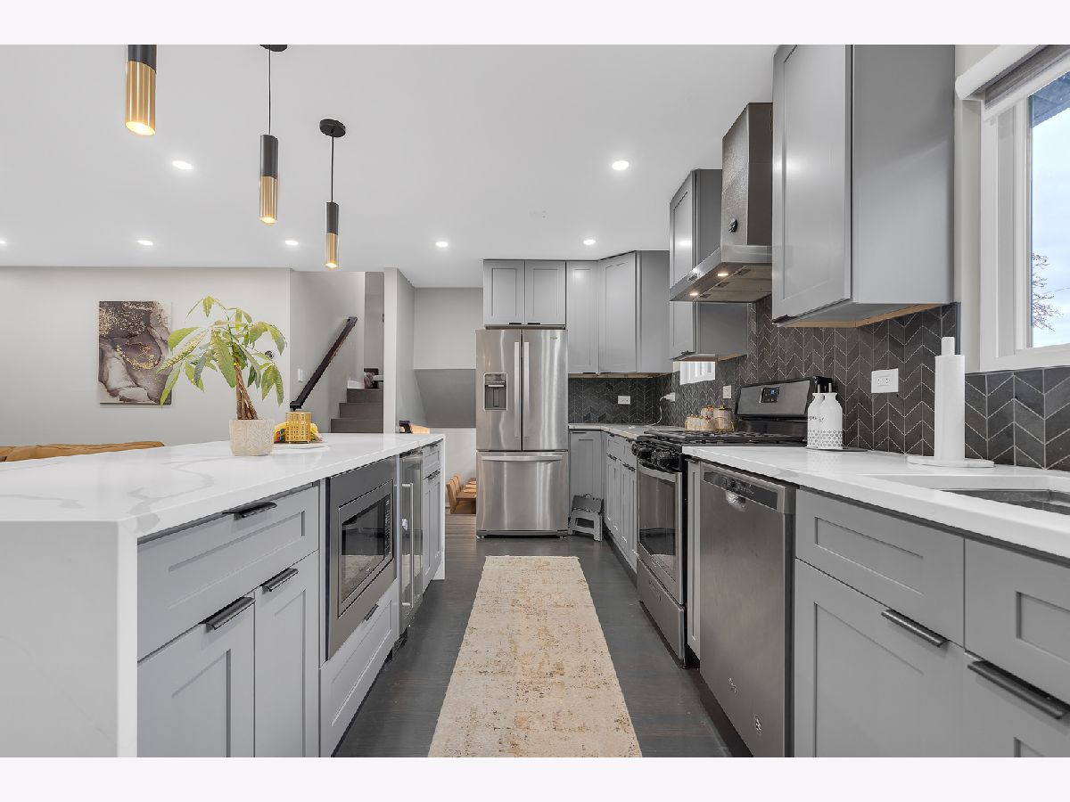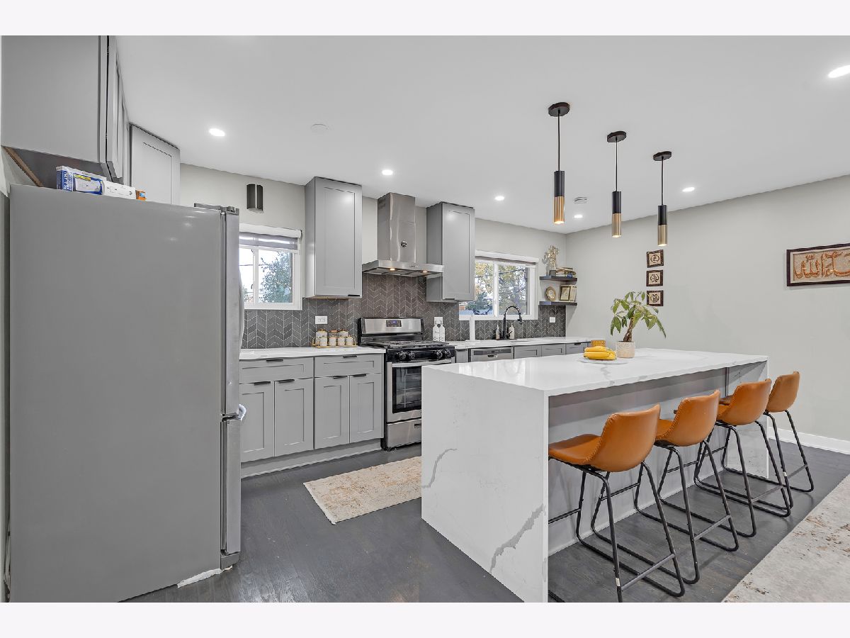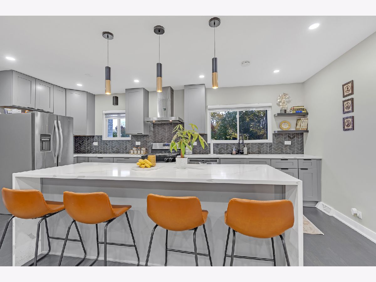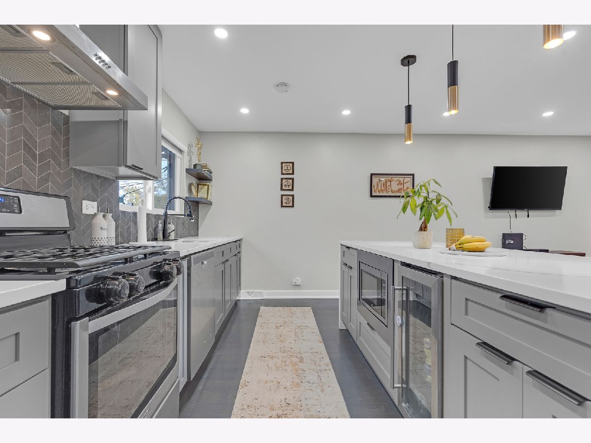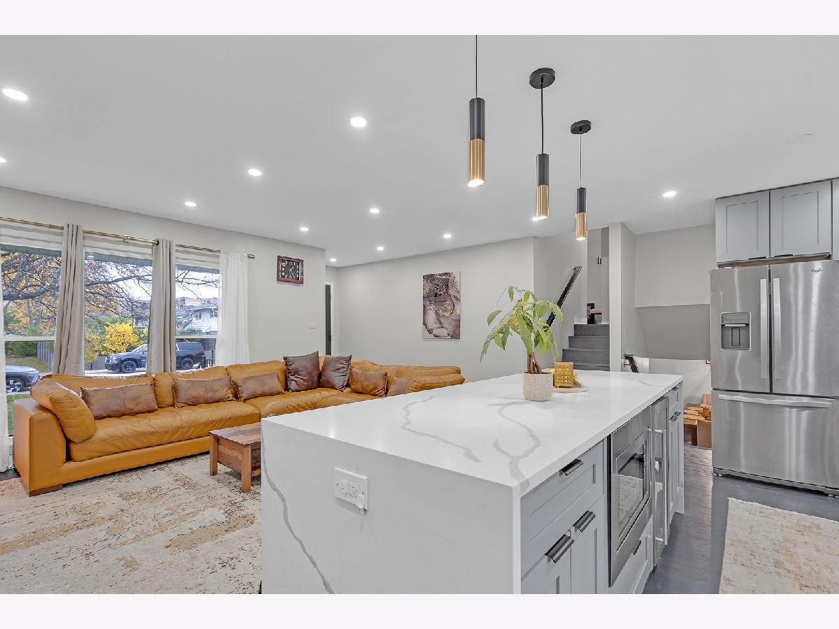 Welcome home to modern living at its finest! This beautifully updated residence offers a seamless blend of style and comfort, featuring a stunning new kitchen with a waterfall island, wine fridge, and stainless steel appliances. Enjoy an open, flowing layout with refinished hardwood floors and abundant natural light. The designer-tiled bathrooms, updated lighting, and finished lower level with a decorative fireplace add warmth and sophistication. Step outside to a large, private fenced yard with a new patio-perfect for entertaining. Recently painted inside and out, with manicured landscaping and an attached 2.5-car garage with built-in storage. Nestled in a beautiful Glenview neighborhood known for its tree-lined streets, parks, and convenient access to shops and restaurants-just move in and make it home!