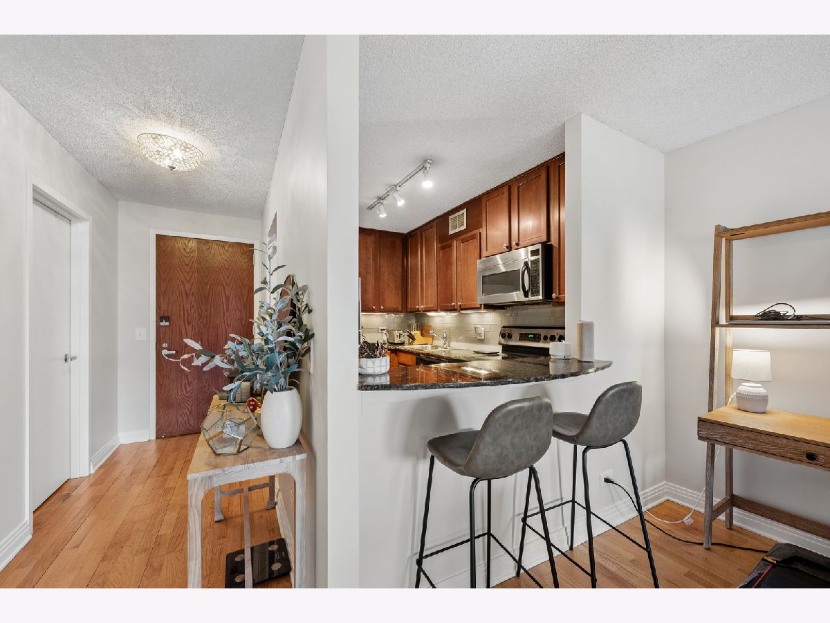 Set in a boutique elevator building in coveted East Lincoln Park, this ideally located one-bedroom home offers effortless access to the park and lakefront along with a highly functional floor plan. The kitchen features stainless steel appliances, granite countertops, a breakfast bar, and opens beautifully to the living and dining area, creating an inviting flow for both everyday living and easy entertaining. Hardwood floors, a spacious walk-in closet, and an in-unit front-loading washer/dryer enhance the home's comfort and appeal. The pet-friendly building offers same-floor storage, a bike room, and a shared rooftop deck with grills and lovely city views. Heat and air conditioning are included in the assessment. Heated garage parking is available for an additional $25k. All of this in a wonderful Lincoln Park location, just moments from neighborhood dining, shopping, public transportation, the lakefront, the zoo, and everything that makes this area so special.