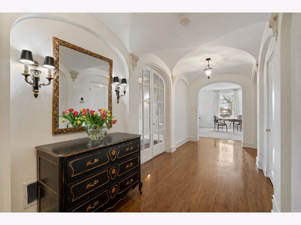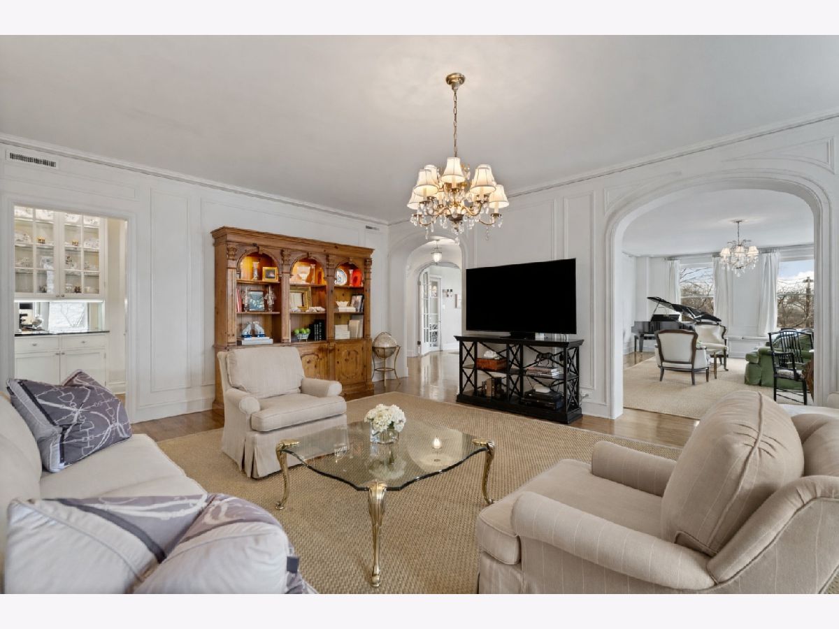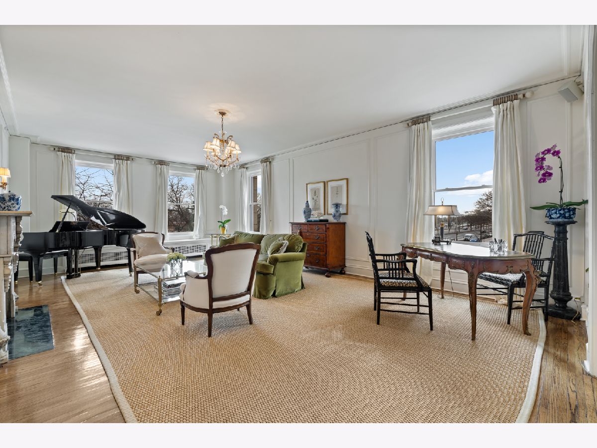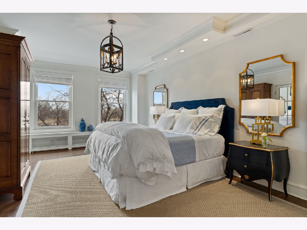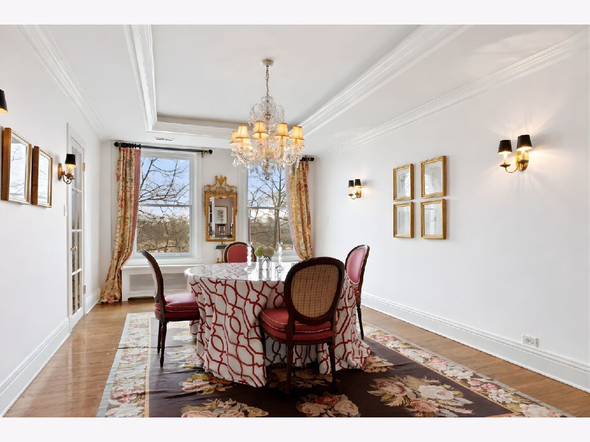 This impeccably maintained home exudes elegance and character with a sprawling 3500 sf floor plan and exquisite details at every turn of this meticulous restoration boasting lovely green treetop views in the SE corner -the most premiere tier in the building. With elevator access that services only two residences, you are welcomed home into your gracious foyer with breathtaking groin vault ceilings and extensive original moldings. The bright, expansive rooms have great flow for entertaining: a grand living room featuring a gas fireplace with gorgeous original marble surround and bookcases flanking the arched entryway to a sizeable family room, a regal formal dining room with arched french doors, crystal chandelier, wall sconces, and tray ceiling with lighting, and an enormous eat-in chef's kitchen with custom cabinetry, Sub Zero, Viking, and Miele appliances, thick quartz countertops on island, abundant storage, butler's pantry with prep sink and wine storage. The generously sized primary suite boasts east facing morning light and 3 organized closets. Den/guest room thoughtfully designed with built-in desk and trundle bed with full bath tucked away in rear of the home for privacy. Laundry with stackable washer/dryer. New windows installed in 2023, designer lighting, and custom window treatments throughout. Full-service 24 hour staff in a well-run, prestigious pre-war co-op building with elegant lobby, professional on-site management, fitness center, furnished children's play room, storage room, bike storage, fabulous roof deck with grills, dining tables, and sweeping views of the lake and city. Enjoy proximity to lakefront bike path and park, East Lakeview restaurants and shops, red line, and express buses downtown. Parking options nearby.