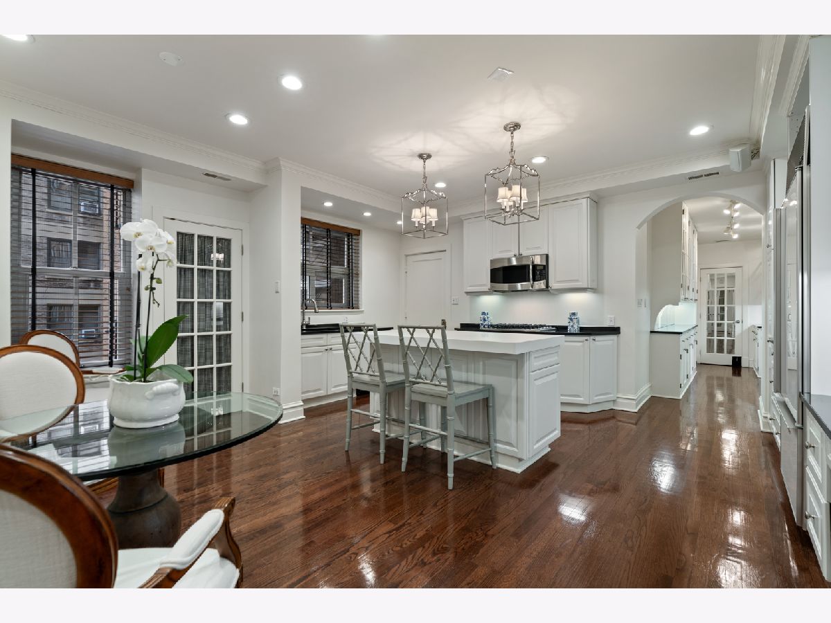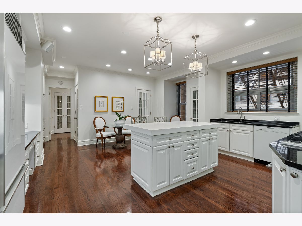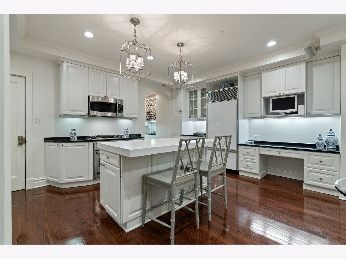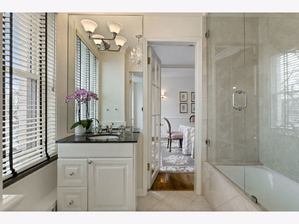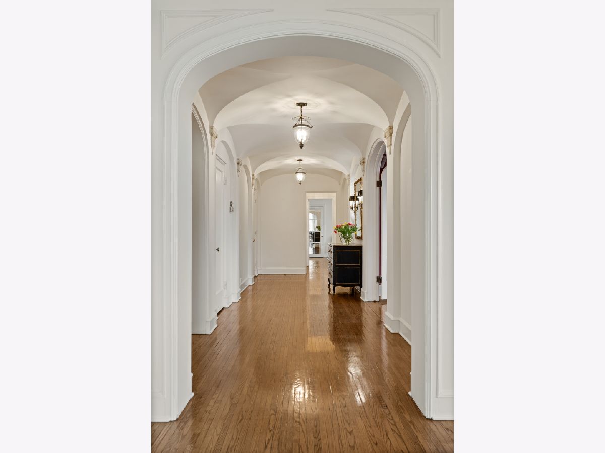 This impeccably maintained home exudes elegance and character with a sprawling 3500 sf floor plan and exquisite details at every turn of this meticulous restoration boasting lovely green treetop views in the SE corner -the most premiere tier in the building. With elevator access that services only two residences, you are welcomed home into your gracious foyer with breathtaking groin vault ceilings and extensive original moldings. The bright, expansive rooms have great flow for entertaining: a grand living room featuring a gas fireplace with gorgeous original marble surround and bookcases flanking the arched entryway to a sizeable family room, a regal formal dining room with arched french doors, crystal chandelier, wall sconces, and tray ceiling with lighting, and an enormous eat-in chef's kitchen with custom cabinetry, Sub Zero, Viking, and Miele appliances, thick quartz countertops on island, abundant storage, butler's pantry with prep sink and wine storage. The generously sized primary suite boasts east facing morning light and 3 organized closets. Den/guest room thoughtfully designed with built-in desk and trundle bed with full bath tucked away in rear of the home for privacy. Laundry with stackable washer/dryer. New windows installed in 2023, designer lighting, and custom window treatments throughout. Full-service 24 hour staff in a well-run, prestigious pre-war co-op building with elegant lobby, professional on-site management, fitness center, furnished children's play room, storage room, bike storage, fabulous roof deck with grills, dining tables, and sweeping views of the lake and city. Enjoy proximity to lakefront bike path and park, East Lakeview restaurants and shops, red line, and express buses downtown. Parking options nearby.
