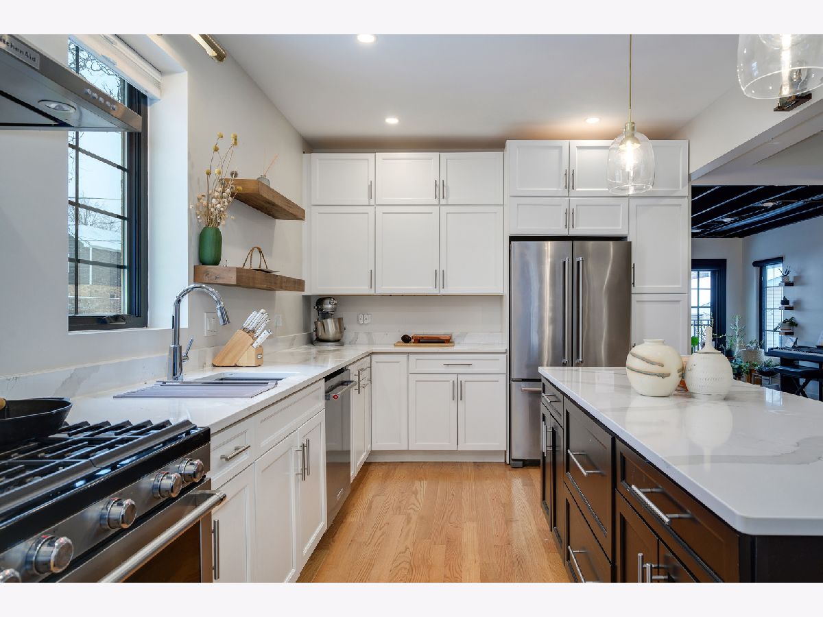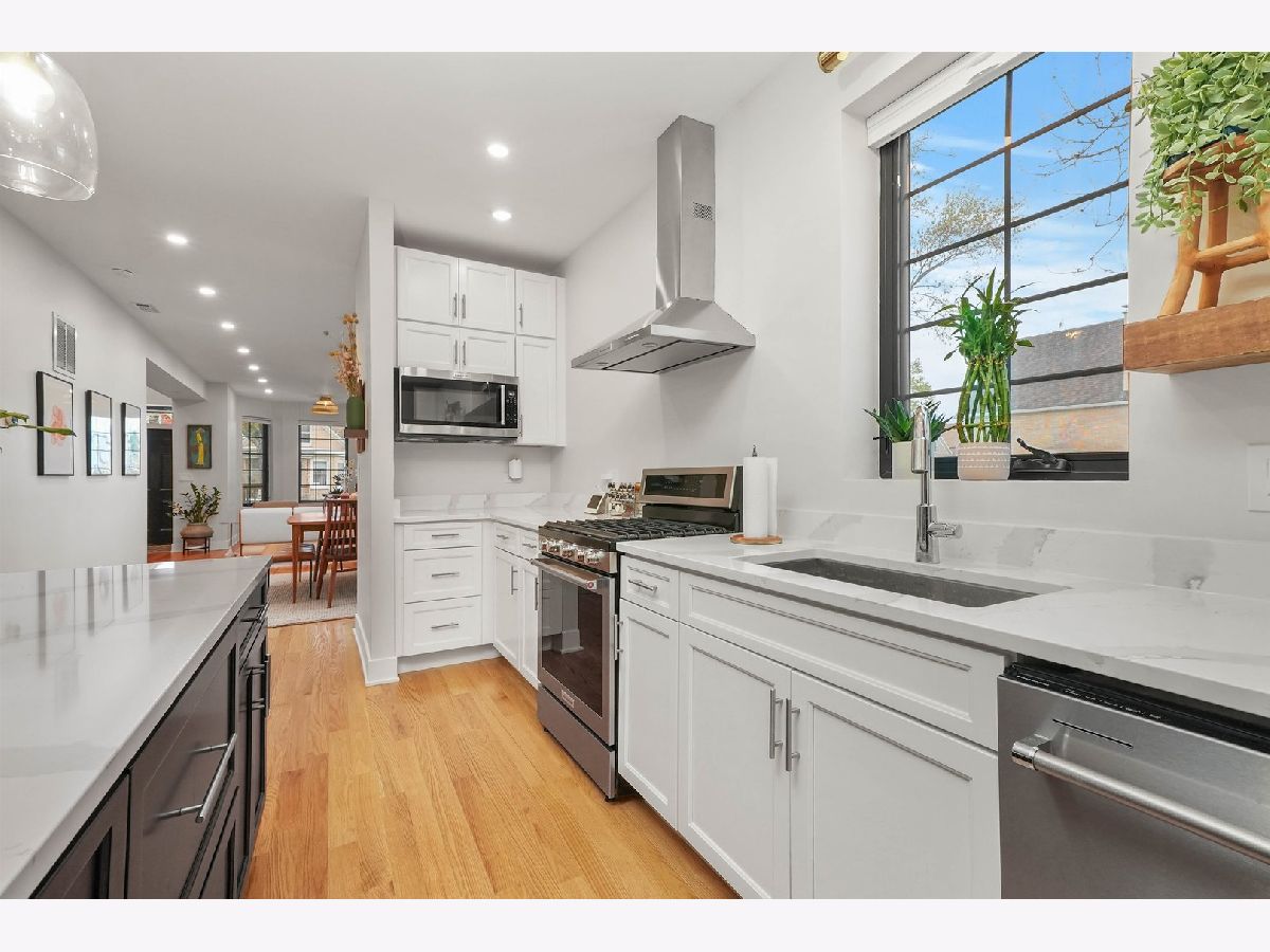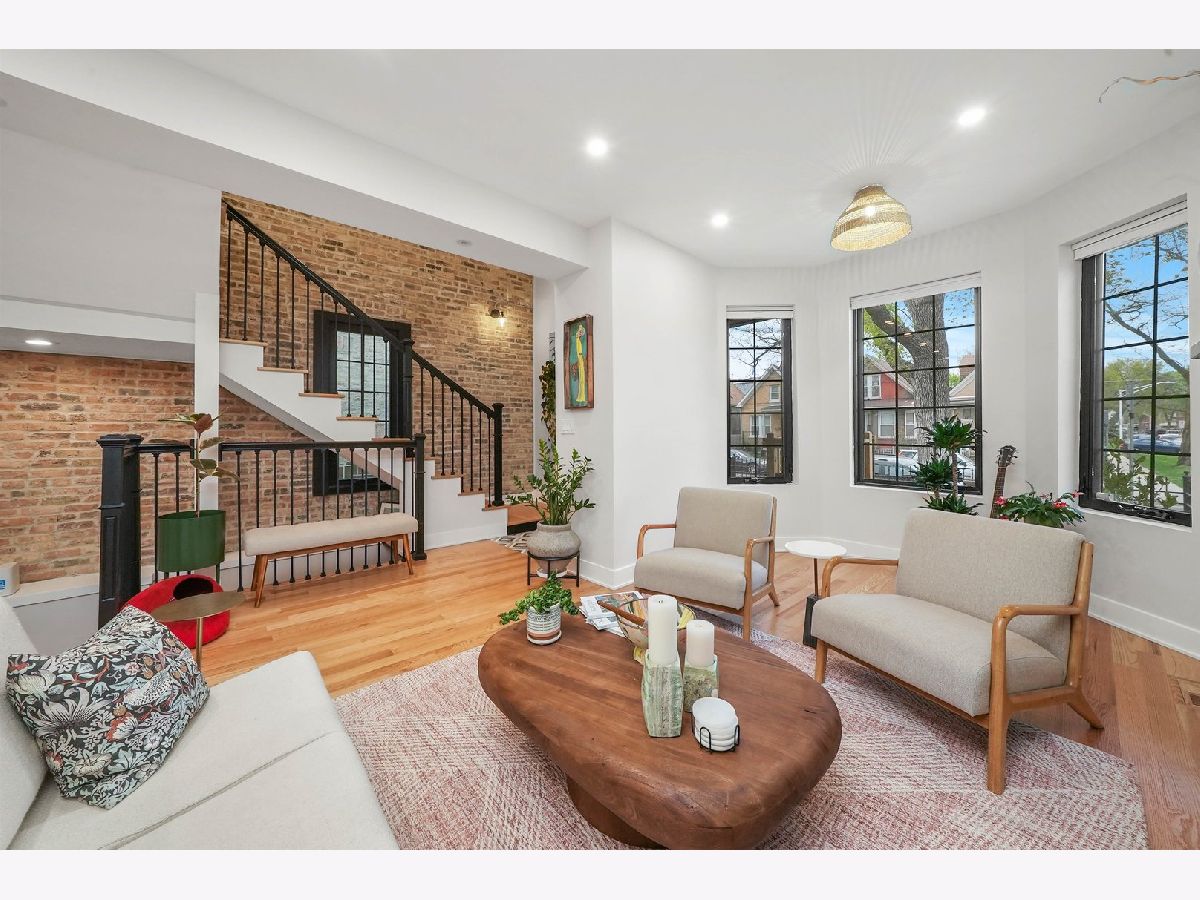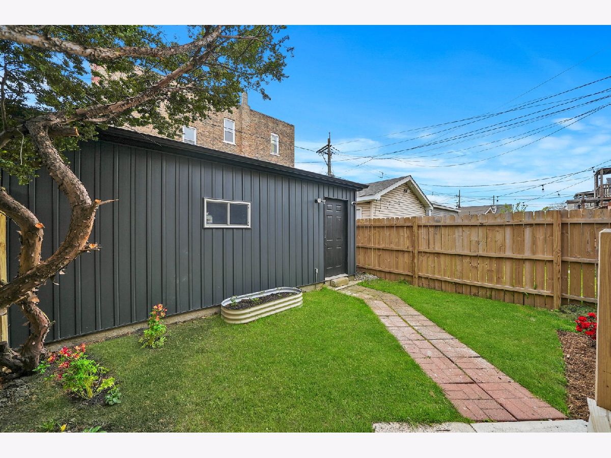 MULTIPLE OFFERS RECEIVED! A MOVE-IN ready SINGLE-FAMILY-HOME on a quiet, tree-lined CORNER in Humboldt Park, offering the space, layout, and updates today's buyers are searching for. This beautifully renovated residence features four bedrooms and four bathrooms and sits on a desirable corner lot. Tall ceilings, hardwood flooring throughout, and a cozy fireplace anchor the expansive living room. The dining area flows seamlessly into the updated kitchen, complete with quartz countertops, high-end stainless steel appliances, and shaker-style cabinetry. A converted sunroom provides flexible space for a second dining area or sitting room, while a Juliette balcony fills the home with natural light and opens toward the backyard. The main level also includes a well-sized guest bedroom with a closet and a full bathroom. The staircase leads to the primary suite, which offers generous proportions, space for a sitting area, and access to a private deck ideal for lounging. The primary bedroom is complemented by a custom built-in closet, adding both functionality and a polished finish. The ensuite bathroom delivers a spa-like feel with dual vanities, a standing shower, and a soaking tub. Just down the hall is a third bedroom and a full bath with a shower-tub combination. The fully finished basement has been cosmetically refreshed to provide additional living or recreational space. It includes a fourth bedroom with an adjacent full bathroom, a laundry room, and a dedicated wood workshop area, perfect for hobbies or additional storage. This home was fully renovated with updated plumbing, electrical, flooring, recessed lighting, central air, fixtures, windows, garage siding and roof, and a sump pump. Outside, enjoy ample space for grilling and entertaining, a small yard area, and a two-car garage. A truly special home offering space, comfort, and thoughtful updates throughout.