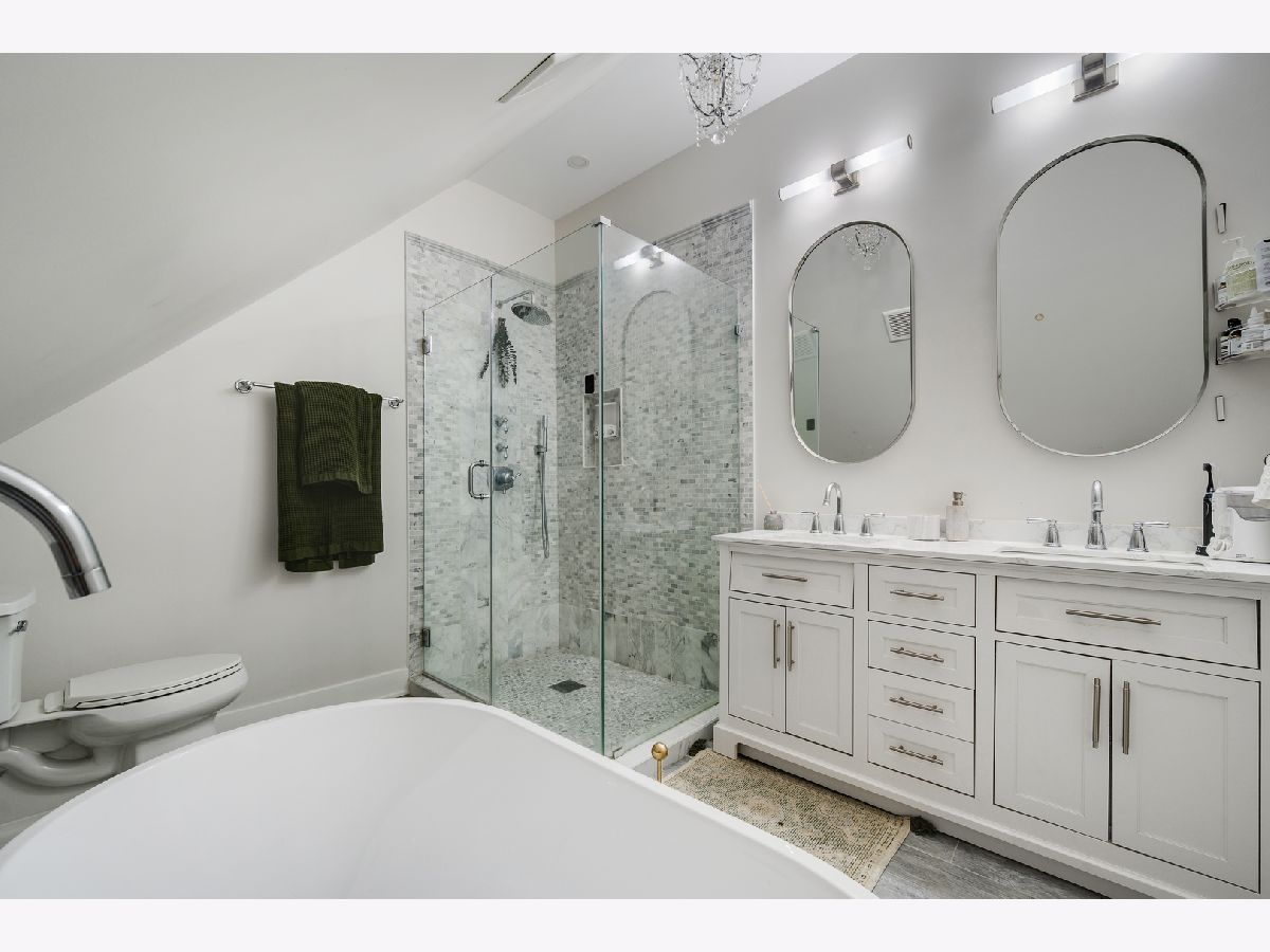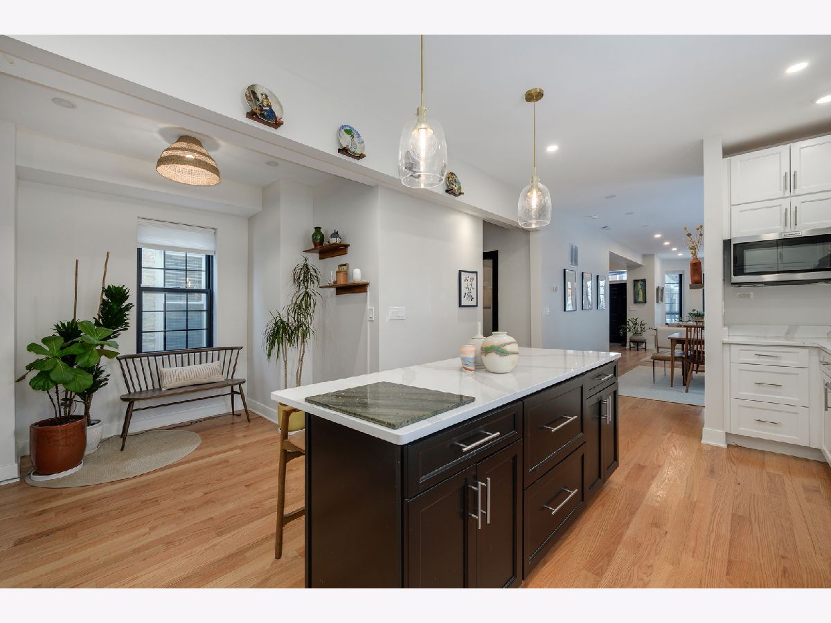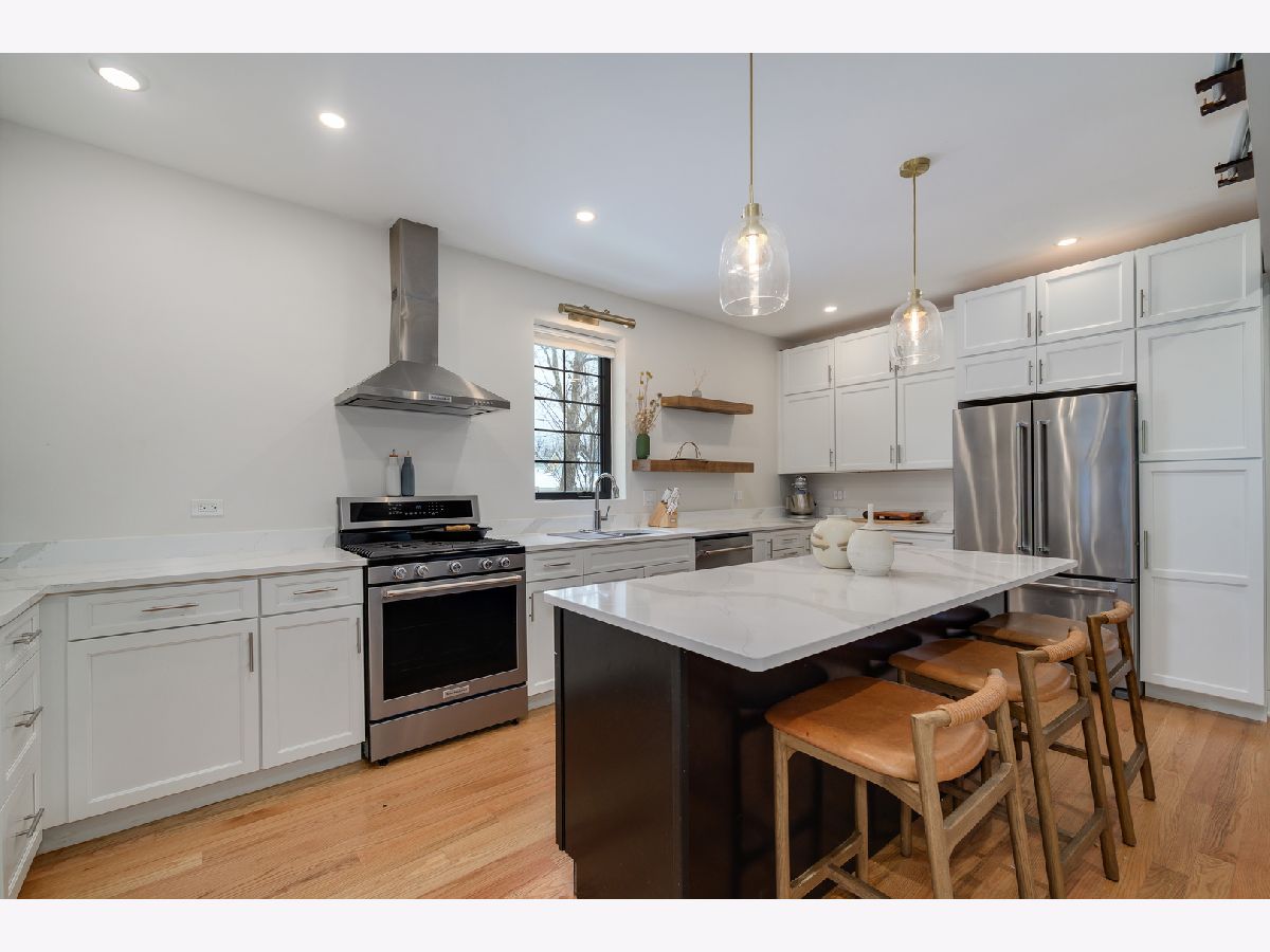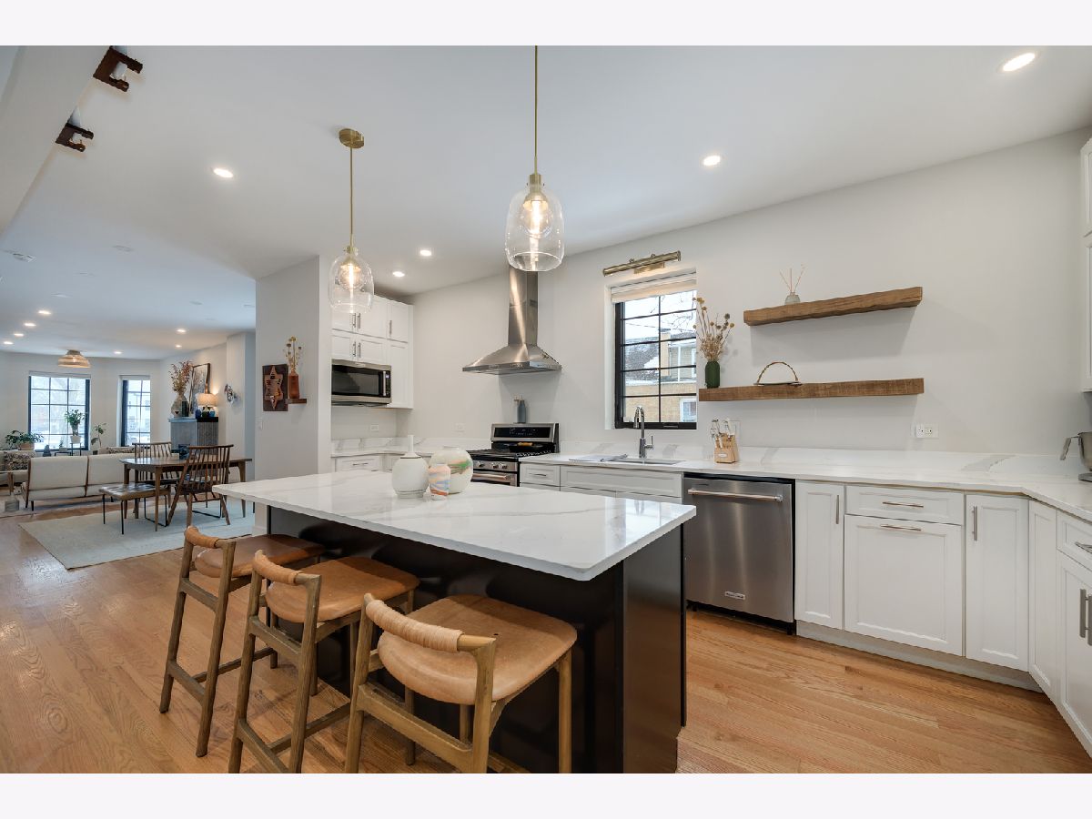 MULTIPLE OFFERS RECEIVED! A MOVE-IN ready SINGLE-FAMILY-HOME on a quiet, tree-lined CORNER in Humboldt Park, offering the space, layout, and updates today's buyers are searching for. This beautifully renovated residence features four bedrooms and four bathrooms and sits on a desirable corner lot. Tall ceilings, hardwood flooring throughout, and a cozy fireplace anchor the expansive living room. The dining area flows seamlessly into the updated kitchen, complete with quartz countertops, high-end stainless steel appliances, and shaker-style cabinetry. A converted sunroom provides flexible space for a second dining area or sitting room, while a Juliette balcony fills the home with natural light and opens toward the backyard. The main level also includes a well-sized guest bedroom with a closet and a full bathroom. The staircase leads to the primary suite, which offers generous proportions, space for a sitting area, and access to a private deck ideal for lounging. The primary bedroom is complemented by a custom built-in closet, adding both functionality and a polished finish. The ensuite bathroom delivers a spa-like feel with dual vanities, a standing shower, and a soaking tub. Just down the hall is a third bedroom and a full bath with a shower-tub combination. The fully finished basement has been cosmetically refreshed to provide additional living or recreational space. It includes a fourth bedroom with an adjacent full bathroom, a laundry room, and a dedicated wood workshop area, perfect for hobbies or additional storage. This home was fully renovated with updated plumbing, electrical, flooring, recessed lighting, central air, fixtures, windows, garage siding and roof, and a sump pump. Outside, enjoy ample space for grilling and entertaining, a small yard area, and a two-car garage. A truly special home offering space, comfort, and thoughtful updates throughout.