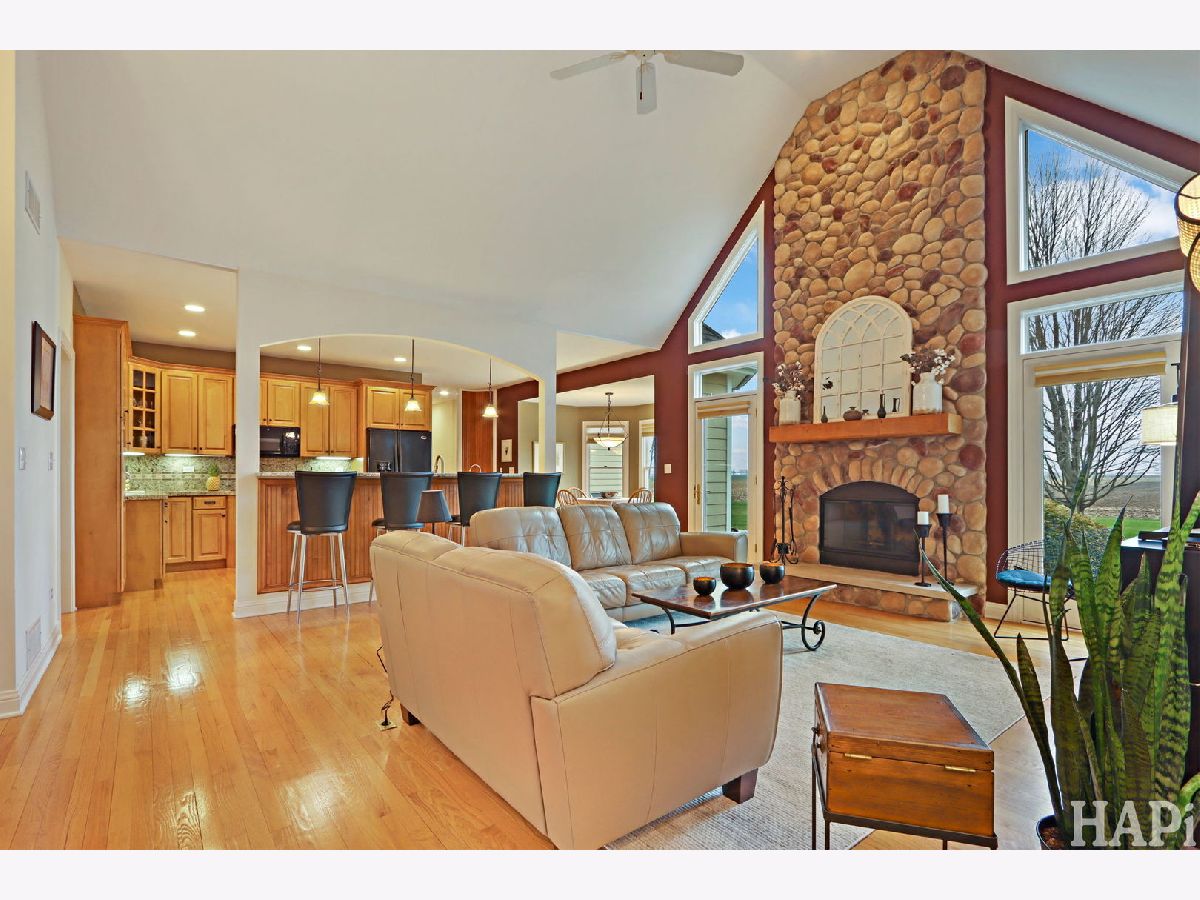 Spring Grove Estates: Open Floor Plan 3 Bedroom 2-1/2 Bath RANCH with Split Bedrooms floor plan with Vaulted ceiling living room and tray Ceilings in Master suite. This light filled home shows a contemporary design complemented by an open concept layout, with 2272 sq ft of living space plus a 400+ sq ft Finished Bonus room on the second level for whatever your need. Sitting on a premium 1.2 Acre tree lined lot. The Master Bedroom Suite with Jacuzzi tub and seperate shower stall and walkin closet. Kitchen has solid maple cabinetry and granite surfaces and a 4 stool snack bar. There is also a bright and sunny Breakfast Room with a beautiful view of the yard and patio. A cozy Fieldstone Fireplace located in the living room also with a beautiful yard view. The seperate dining room is conveniently set off to the right of the Kitchen. You will enjoy the openess just sitting in the room and peering out into the yard and open fields. The lovely spacious 1.2 acre lot is sitting on a corner. The cross street is a dead end and services only 2 homes.The driveway is set off to the side of the home not hampering the view of the front and Yes you have a front porch to relax and read a book or just gaze at the beautifully landscaped neighborhood. Also the patio is the perfect place ro relax and enjoy grilling on the Weber. Also you have a full open basement with 9 ft ceilings and Roughed in plumbing for a bath, set up for a lovely rec room. Architectural Shingle Roof replaced 2021 and the 2 stage furnace replaced 2022. The siding is durable cement board; not vinyl or aluminum. ***Seller is offering a one year HOME WARRANTY.*** PLUS: Hardwood floors in the main living area and 3 car garage. Heating/Cooling programable Wi-Fi controlled thermostat
