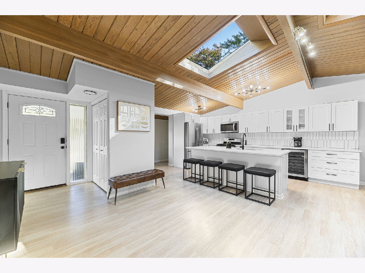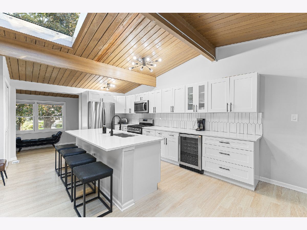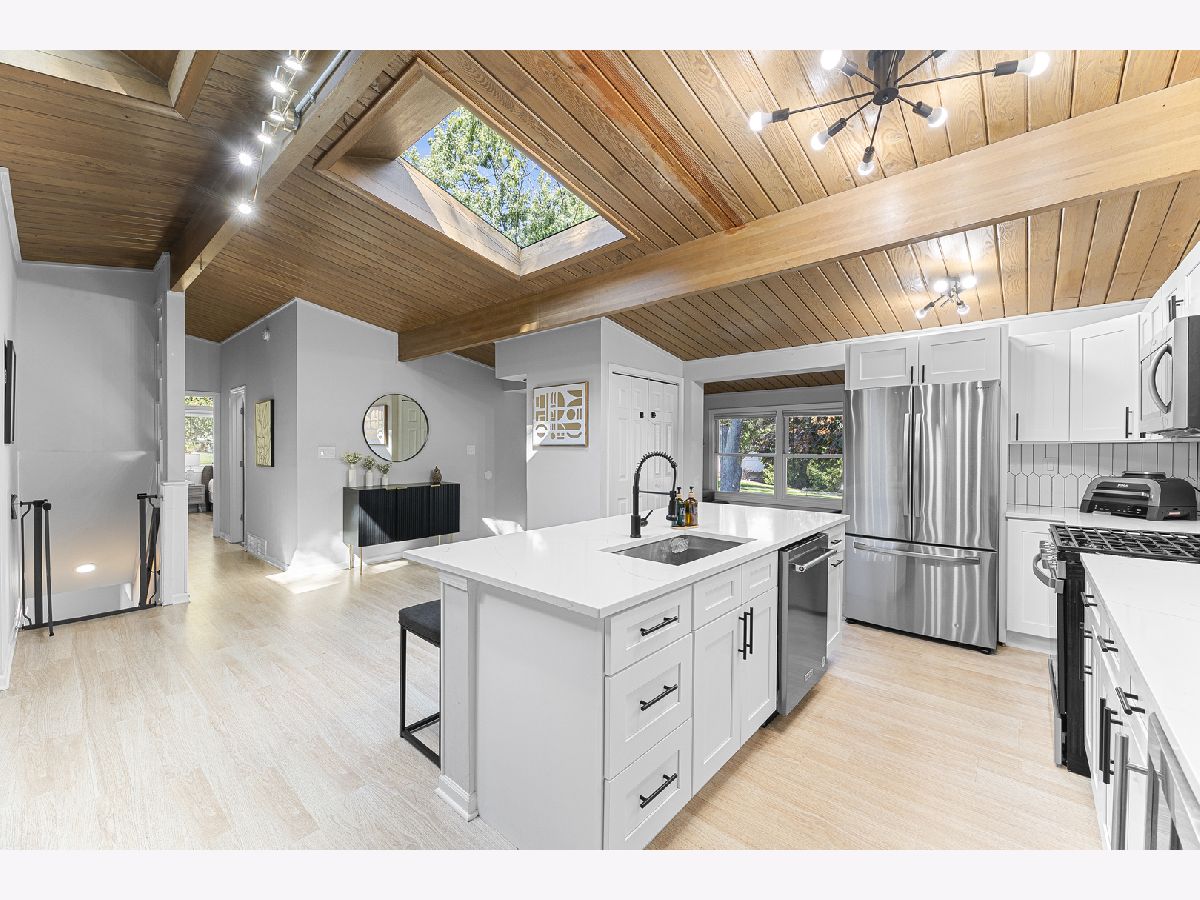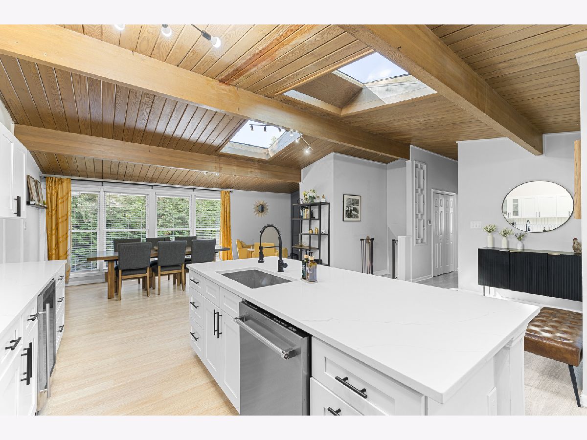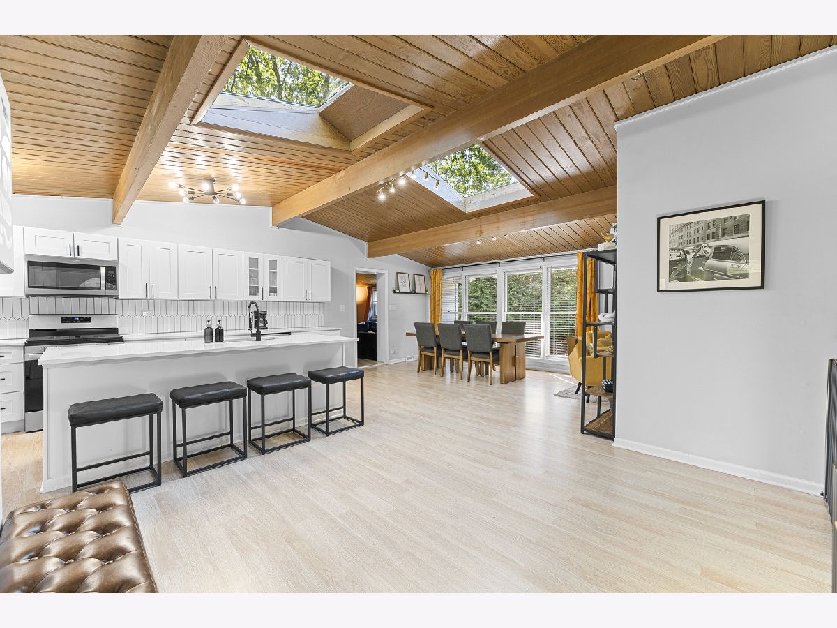 Wonderful Mid-Century Open Concept Ranch in a Great Walk to Everything Location. Features include Dramatic Vaulted Wood Ceilings, Skylights, Clerestory Windows and a Beautifully Renovated Spacious Open Kitchen with a Huge Island, Wine Refrigerator and Quartz Countertops, which Opens to the Large Living/Dining Room Combo. This Lovely Home is Move-in Ready and has a Full Finished Basement with a 4th and possibly 5th Bedroom, and a Full Bath. So Much Updating has been Done in 2022 including Kitchen, Bathrooms, Roof, Plumbing, Electrical, Basement Windows, High Efficiency Furnace and A/C. This Home is Ideally Located a Short Walk to Beautiful Parks and Forest Preserves, the Lake, the Metra train, Amazing Shops, Restaurants and Nightlife, and Miles of Walking and Bike Trails. A Wonderful Place To Call Home!