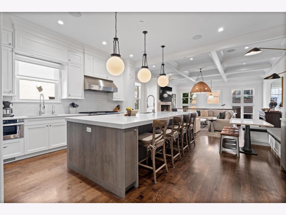 Situated on one of the most desirable blocks in the Southport Corridor, 3509 N Janssen is a sophisticated residence that combines timeless design with exceptional craftsmanship. Flooded with natural light, this five-bedroom, four-and-a-half-bath home showcases custom millwork, rich detailing, and premium finishes throughout. At its center is a thoughtfully designed chef's kitchen, anchored by a substantial island and a built-in banquette for everyday dining. Ample cabinetry, a coffee and bar station with Sub-Zero wine storage and beverage drawers, and professional-grade appliances-make the space both functional and refined. The primary suite offers a serene retreat with a spacious walk-in closet and spa-inspired bath featuring a Victoria & Albert freestanding soaking tub, oversized steam shower with rain head, heated floors, and dual custom vanities. Two additional bedrooms and a full laundry room complete the second floor. The penthouse level provides flexible living with a large family room (or office), wet bar, and access to front and rear roof decks. The lower level includes two bedrooms, a generous recreation room with wet bar, a second laundry room, and a mudroom with custom storage. Additional highlights include an oversized gas / wood-burning fireplace, radiant heated basement floors, and multiple outdoor spaces designed for entertaining-a built in bbq on the main level patio and a garage rooftop deck with a pergola. Located in the heart of the Southport Corridor, the home offers unmatched access to boutique shopping, acclaimed restaurants, neighborhood parks, and the Southport Brown Line. 3509 N Janssen delivers the ideal balance of luxury, comfort, and location.