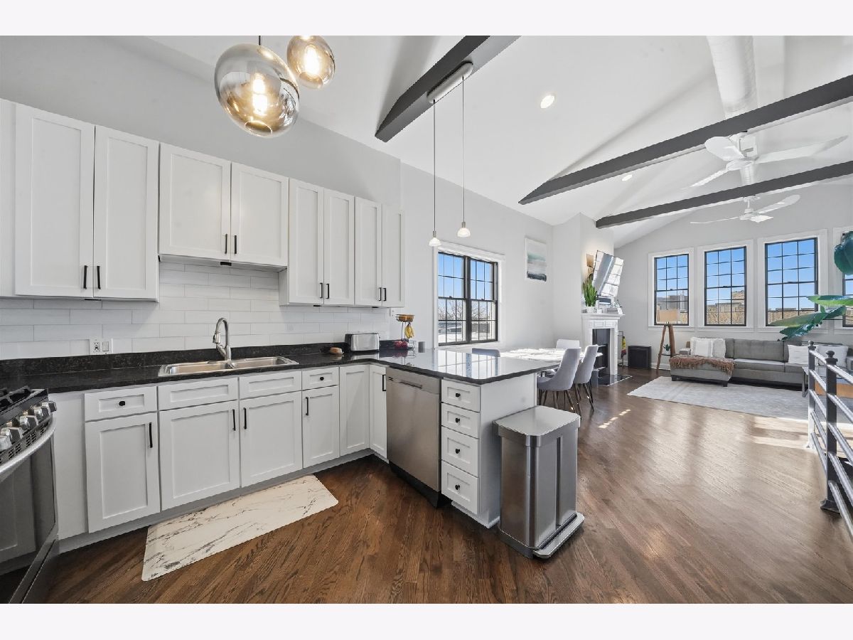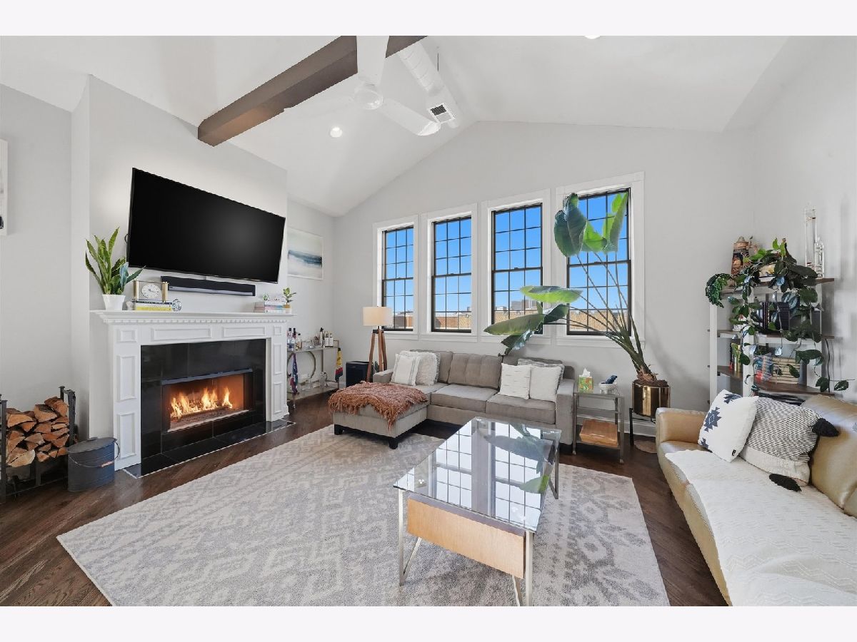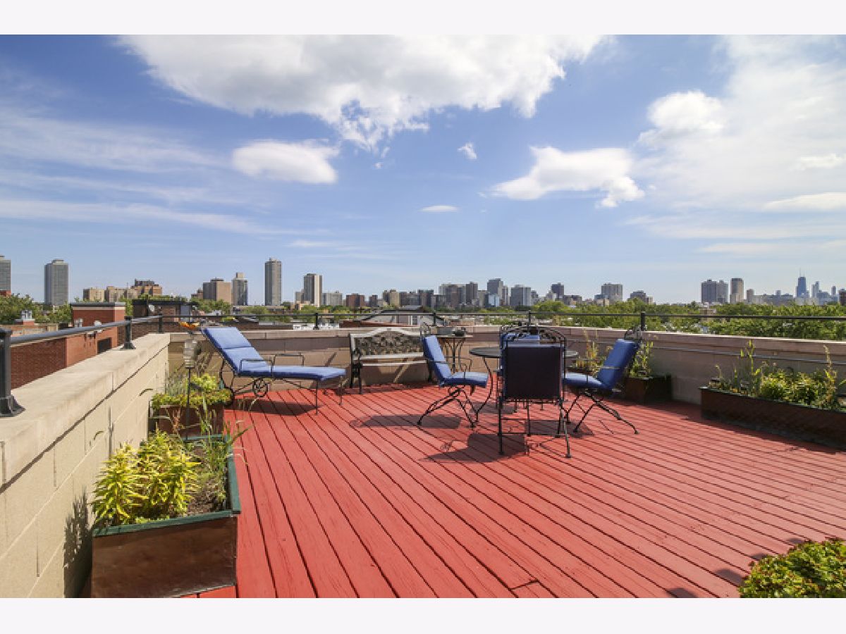 Discover true penthouse living in exciting Wrigleyville. This updated, sundrenched, 1,500-sqft 2 bed 2 bath penthouse with 650-sqft private rooftop deck is perfect for entertaining and delivers unmatched skyline and Wrigley Field views. Dual private entrances, a generous floorplan, and high ceilings provide exceptional interior space and include a rare, cozy wood-burning fireplace with gas starter, larger bedrooms, a master bathroom with Whirlpool tub and updated fixtures. A back interior, full switchback stairwell takes you to your private rooftop deck that is TV ready and comes with new sun sail/awning and ample entertaining space. Climate-controlled garage parking space included. Less than a block from Addison red line, Wrigley Field, and less than 1 mile from Southport corridor.