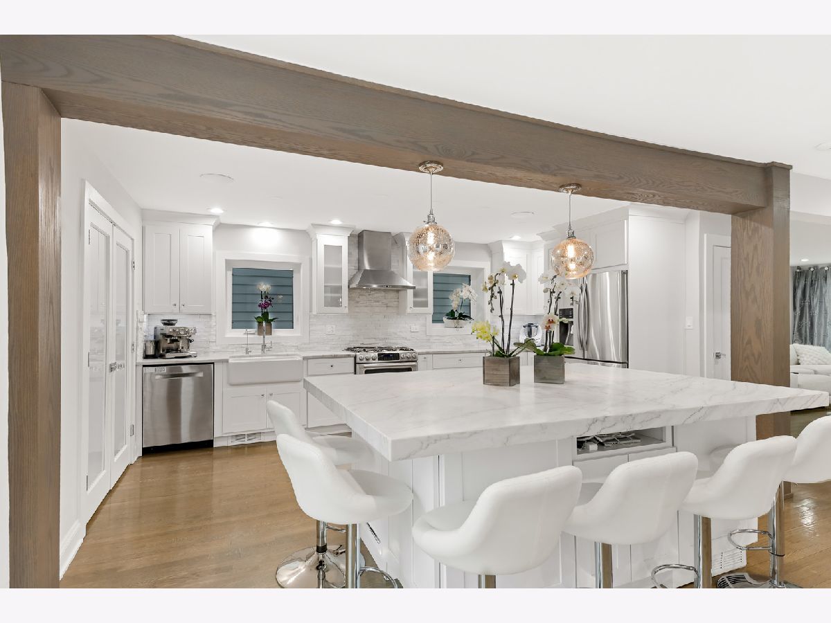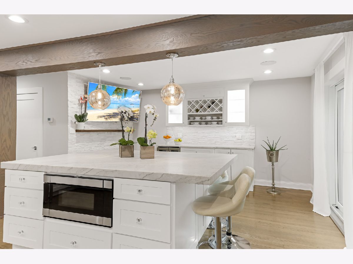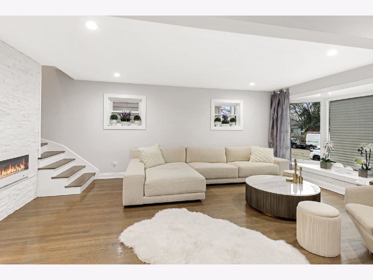 Welcome to this beautifully updated home where modern upgrades meet comfort and versatility in a highly convenient location. Step inside to discover a thoughtfully redesigned interior featuring three spacious bedrooms, including a stunning primary suite complete with a cozy wood-burning fireplace, a walk-in closet and a balcony. The inviting living room is filled with natural light from a charming bay window and enhanced by a sleek electric fireplace, creating the perfect space to relax or entertain. At the heart of the home is a gorgeous, oversized eat-in kitchen island with premium quartzite countertops, ideal for hosting, cooking, and everyday living. A custom-built office provides the perfect work-from-home setup, while the entrance adds both functionality and style. The fully finished basement with a separate entrance adds incredible flexibility-perfect for extended family, guests, or a private retreat. It features two additional bedrooms, a full bathroom, and a spacious recreation room. Located just minutes from the natural beauty of Schiller Woods, this home also offers easy access to major expressways and shopping at the nearby HIP Shopping District.