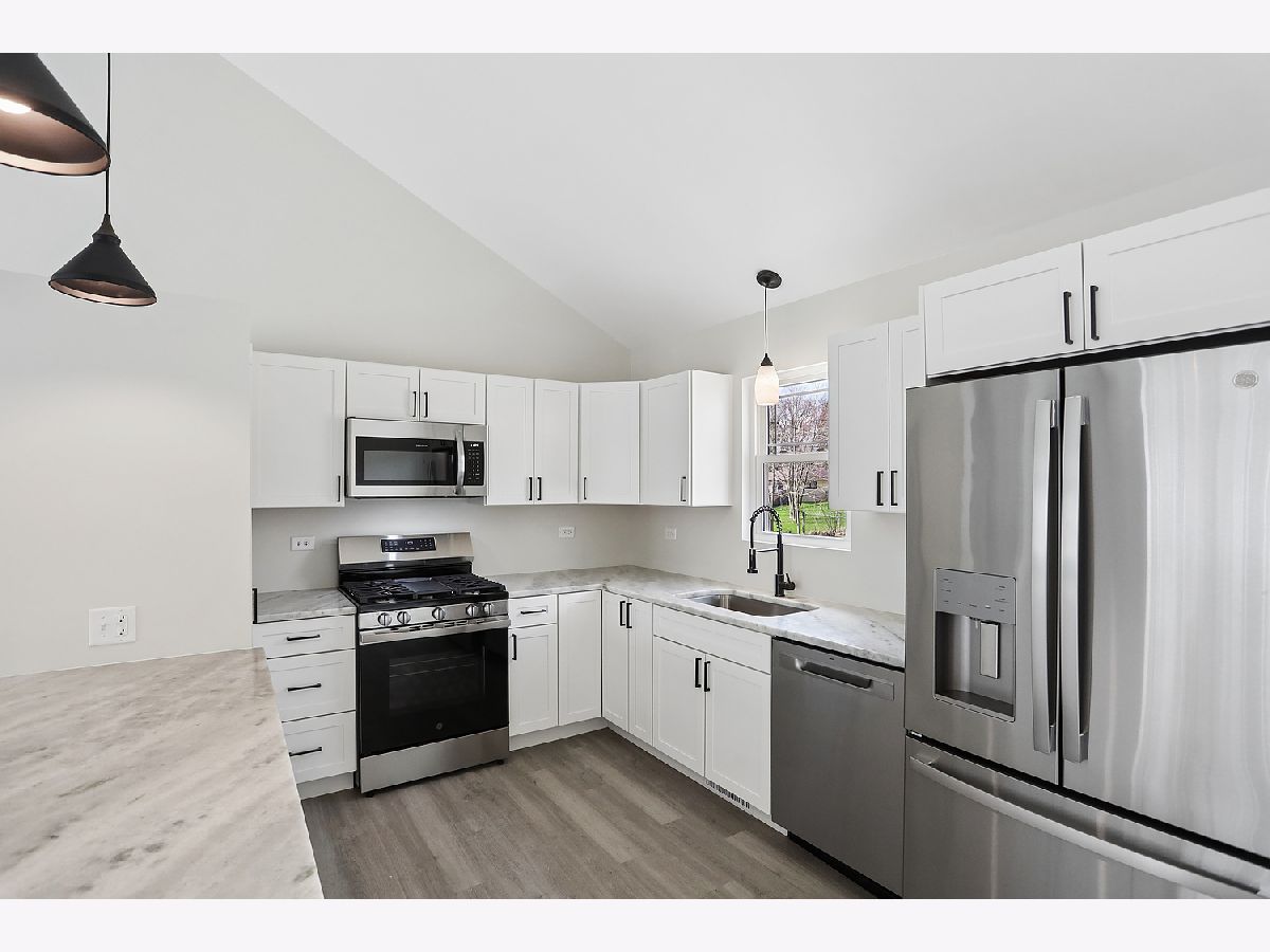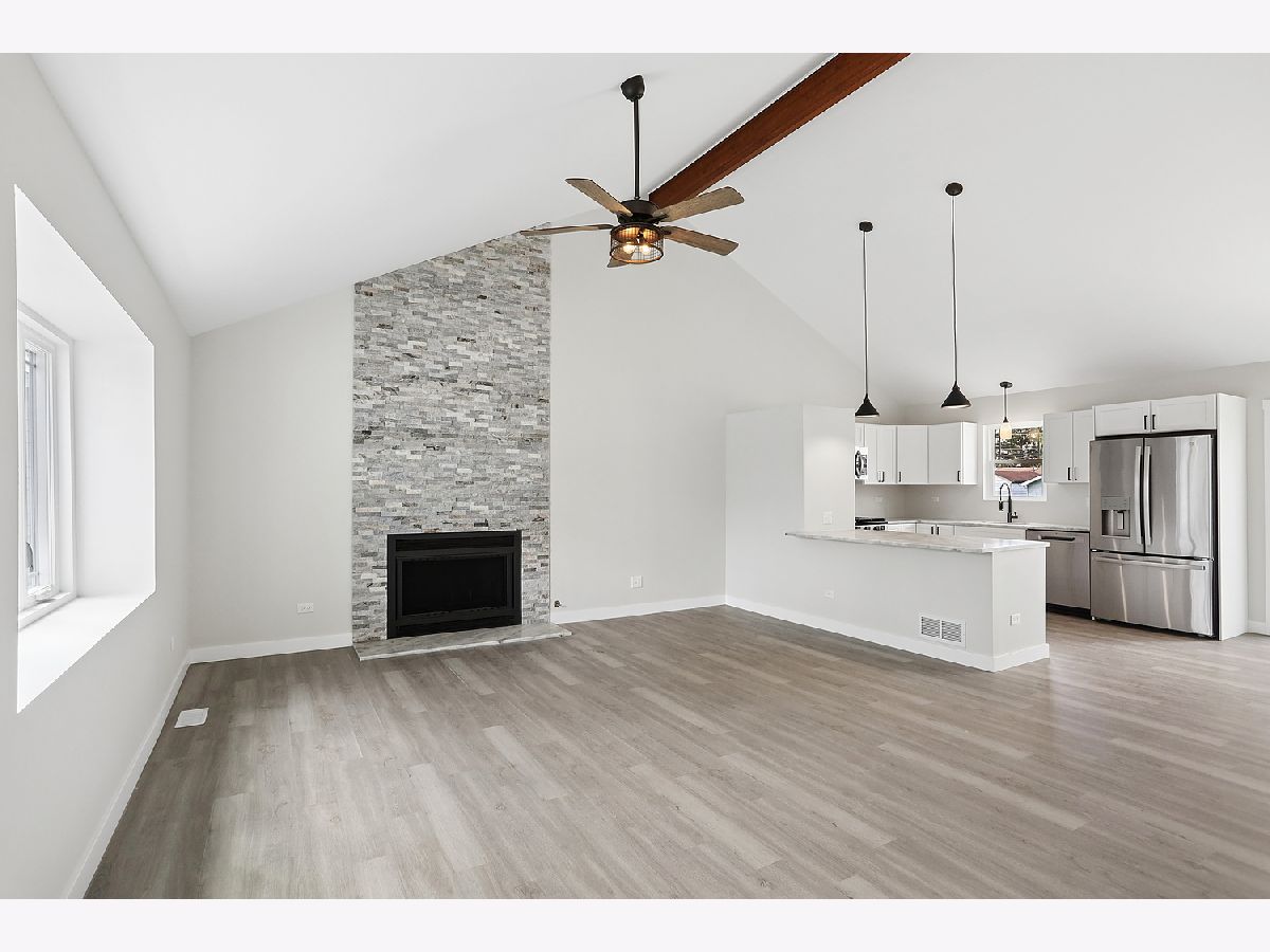 BETTER THAN NEW CONSTRUCTION! This 3 (possibly 4) bedroom open concept RANCH with 3 FULL BATHROOMS on the Will County side of Steger has been professionally updated throughout! Over 2,000 sq ft of finished living space (including the finished basement) & no expense was spared! Featuring an OPEN CONCEPT living room/kitchen/dining area with 3 bedrooms & 2 NEW full baths on the main level, PLUS a large Rec Room & bonus room that could be used as a 4th BR or home office w/3rd full bath in the finished basement, there's plenty of space for all! Soaring vaulted ceilings, modern fixtures, beautiful custom tile showers, BRAND NEW WINDOWS & luxury vinyl plank flooring throughout. New GORGEOUS floor to ceiling stone fireplace with granite hearth. Fully updated kitchen with GRANITE counters, bar top seating, BRAND NEW CRAFTSMAN cabinets & STAINLESS appliance package. Spacious main floor primary suite w/ TWO CLOSETS, & updated ensuite bathroom with custom tile shower! All new Craftsman white panel doors & trim throughout. Host game nights or movie nights in the finished basement with BONUS room & FULL BASEMENT BATH; perfect set up for guests! Washer/dryer included; but sold as-is; never used them. This one has all the bells & whistles, even a new overhead garage door & double-tiered deck. Don't wait long!