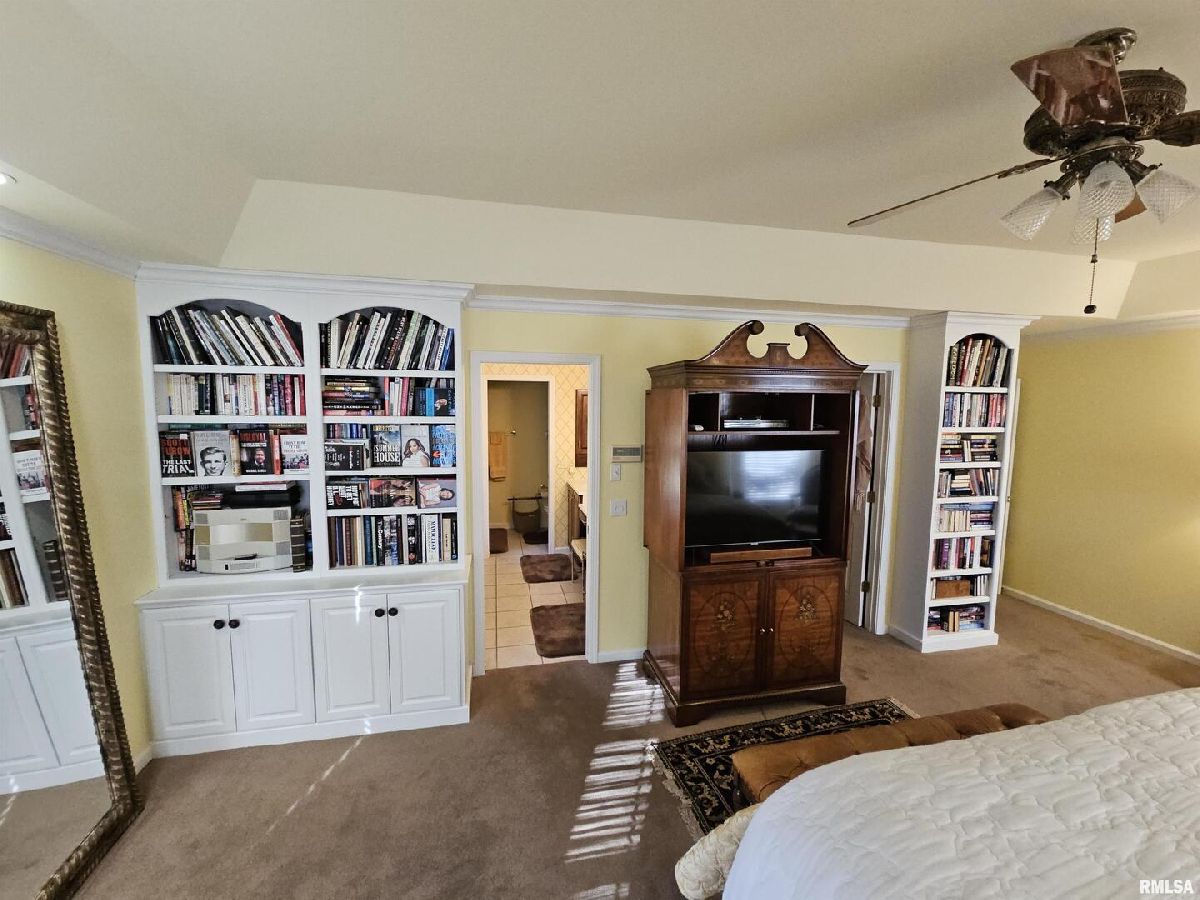 All brick walk-out ranch with an incredible lake view on a private, wooded lot! This beautiful 4-bedroom home showcases rich hardwood floors and elegant French doors that fill the home with natural light and provide seamless access to outdoor living spaces. The main level offers a welcoming layout with a cozy library, perfect for working from home or quiet reading, and a bright sunroom where you can relax and take in the peaceful lake and tree-lined views. Downstairs, the finished walk-out basement provides a spacious family room and a convenient kitchenette-ideal for entertaining, guests, or multi-generational living. Outside, enjoy mature trees, serene surroundings, and a full irrigation system to keep the landscaping lush with minimal effort. This all-brick walk-out ranch combines comfort, style, and a picturesque setting-truly a must-see property.