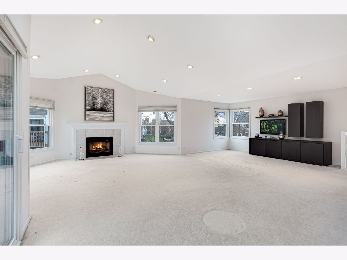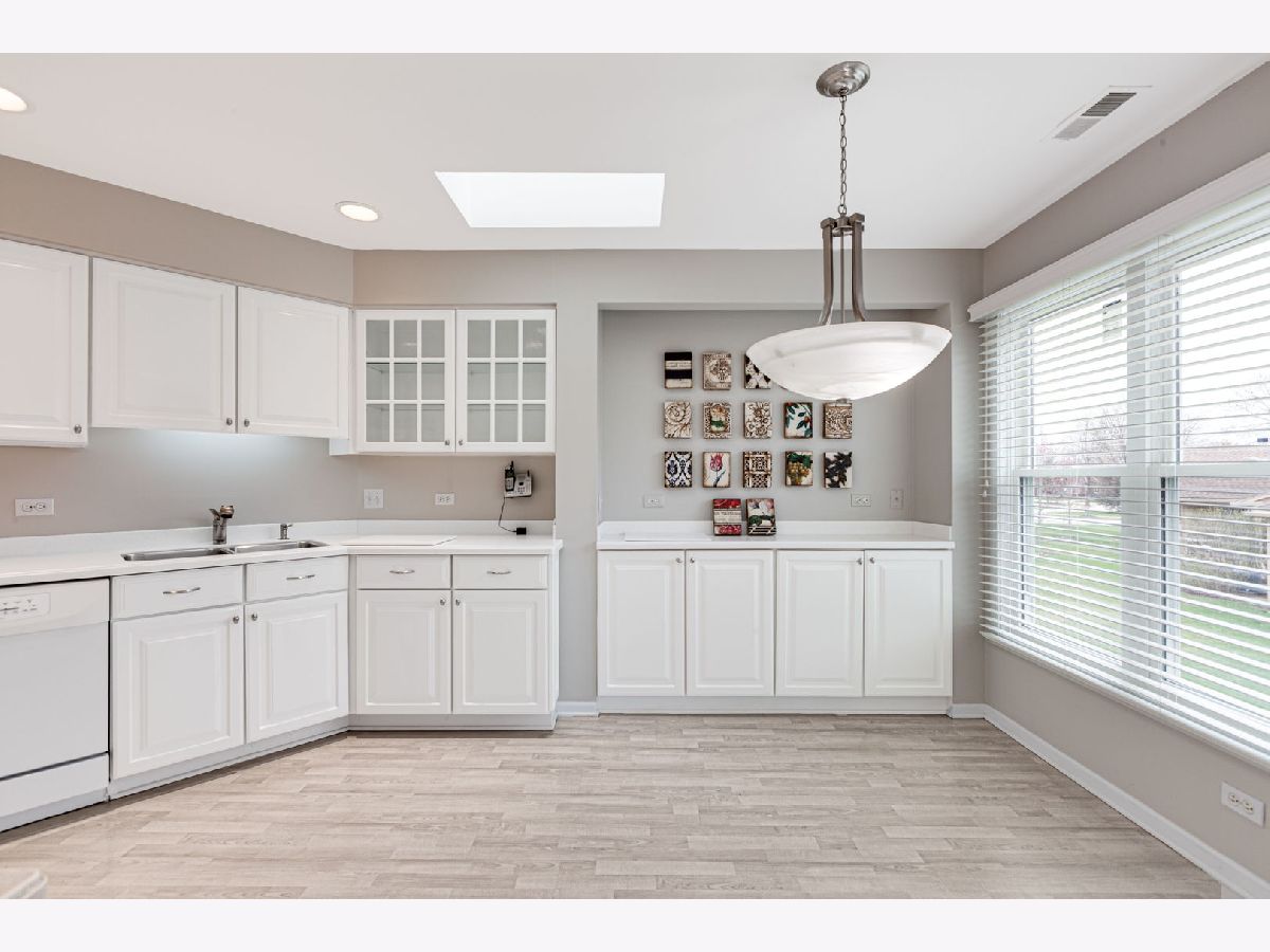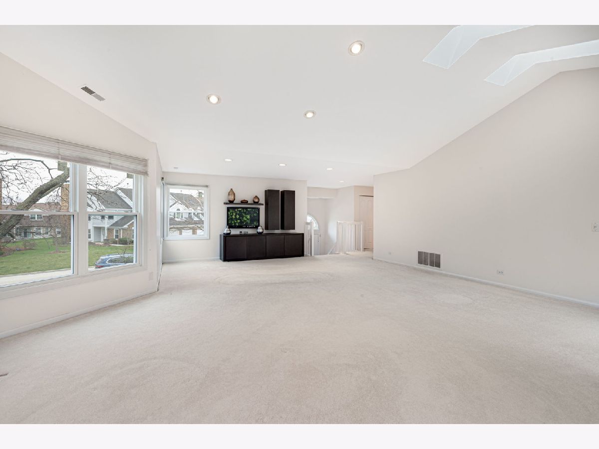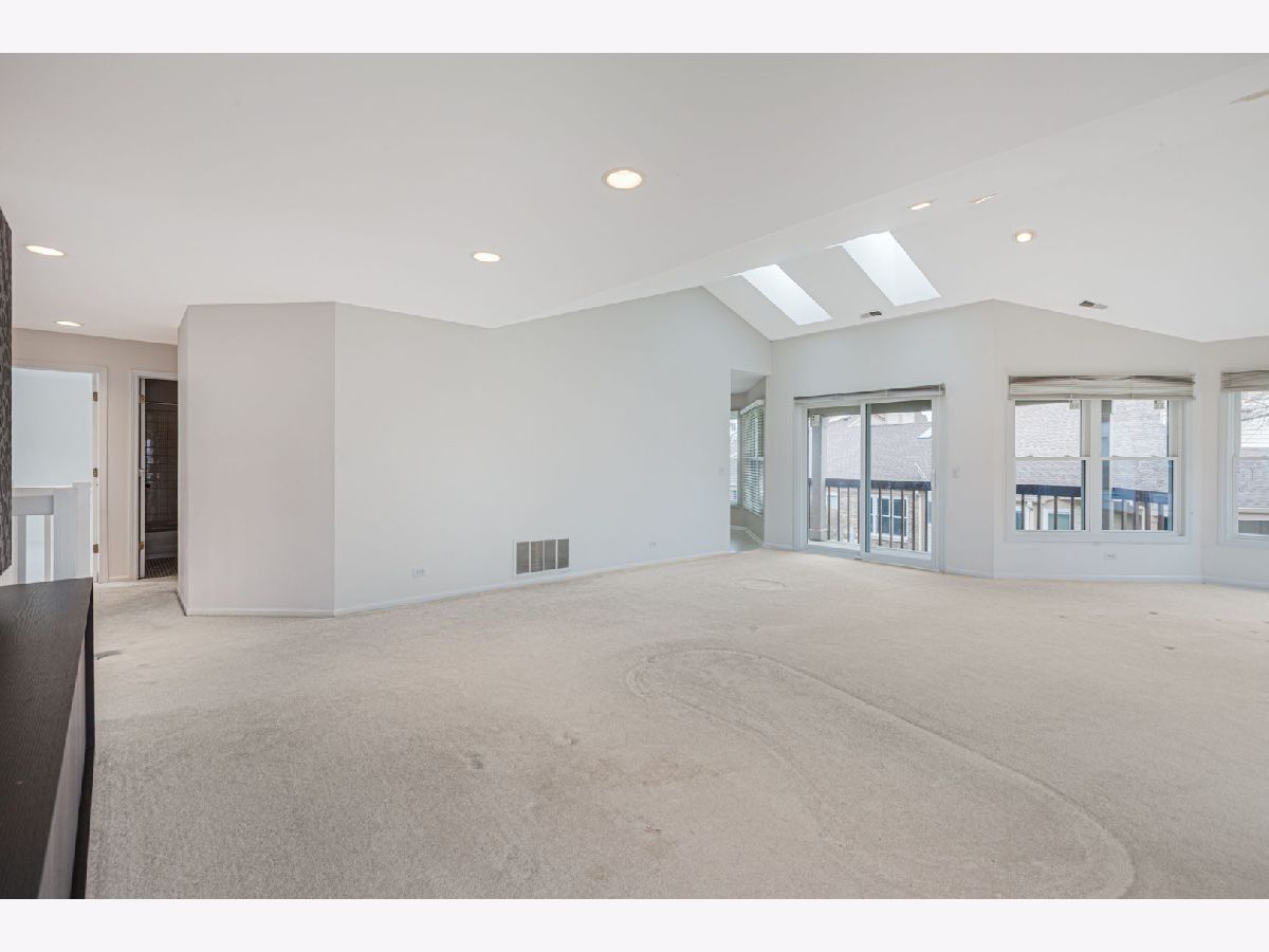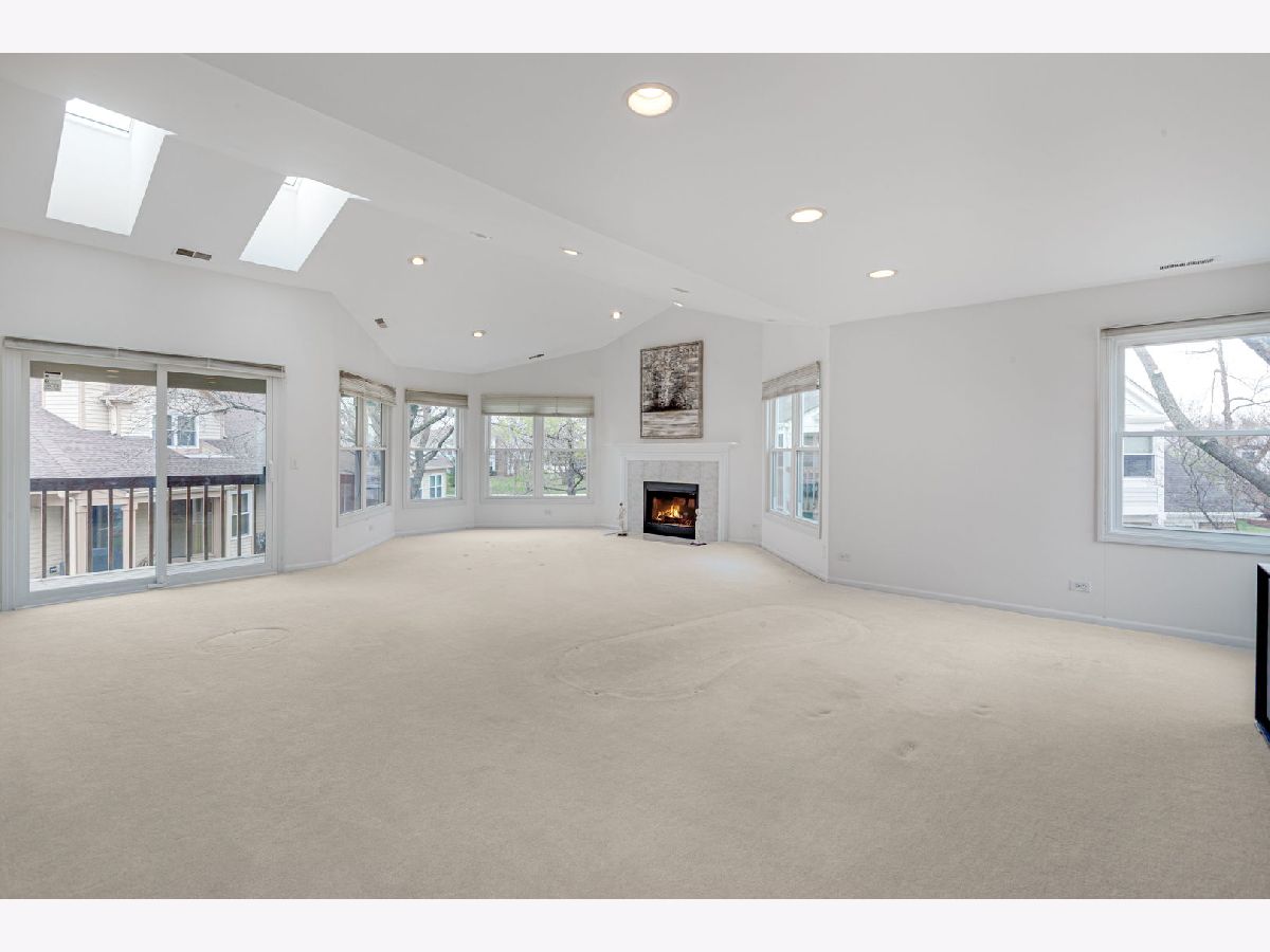 Large size Corner Townhome unit in the wonderful community of Woodlands of Fiore with it's own outdoor pool and a club house. As you step into the sun-filled foyer, you'll be greeted by natural light that flows throughout. Head upstairs to find the spacious dining room, living room combo. The living room is a bright and sunny retreat with sky lights and large newer windows, vaulted ceiling, recessed lighting, gas fireplace, and access to a large balcony, perfect for morning coffee, family and friend gathering or just relaxing. The eat-in kitchen offers ample white cabinet space and 2 skylights. Down the hall, you'll find a convenient laundry room and a bedroom with vaulted ceiling and a walk -in closet, which has access to a full bathroom that can also be reached from the hallway. The primary bedroom includes an en-suite bathroom with dual sinks, and nice size walk-in closet. This home is ideally located in an award-winning school district (Stevenson High-school), while shopping and the train make it a perfect choice for those seeking convenience and comfort.
