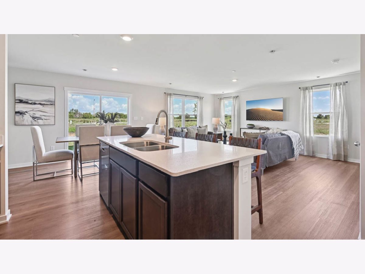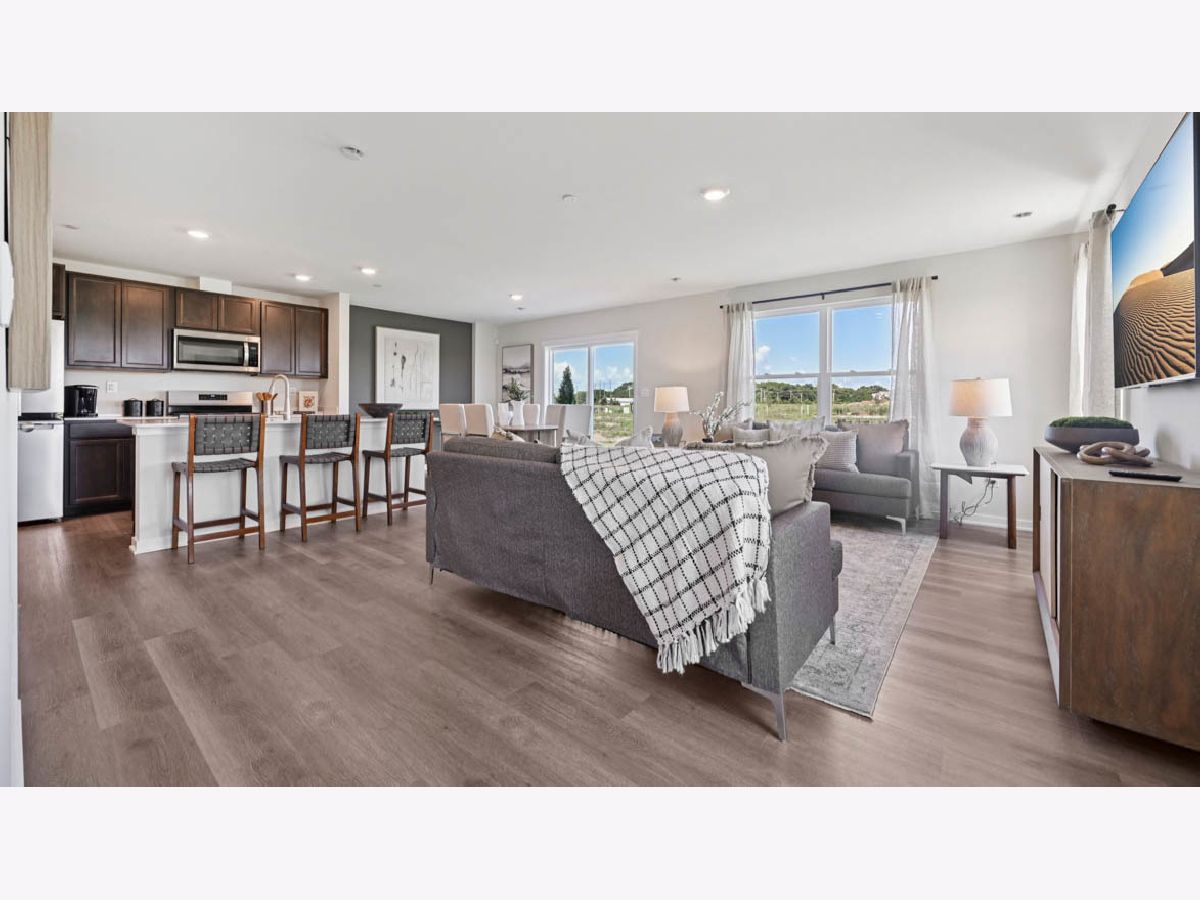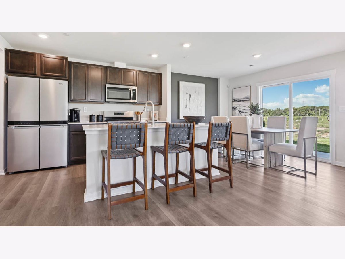 Discover yourself at 3537 Richardson Circle, Yorkville, IL, a beautiful new home in our Grande Reserve community. This townhome will be ready for a SPRING move-in! Homesite includes a fully sodded yard that is maintained throughout the year as well as snow removal in the winter. This Portsmouth townhome plan offers over 1,845 square feet of living space with 4 bedrooms, 2.5 baths, a mudroom and a 2-car garage. As soon as you step inside, you'll be greeted by our open concept living area, featuring luxury vinyl plank throughout the main living areas. The expansive kitchen overlooks the dining and great room areas, making it the ideal space to entertain. Additionally, your kitchen features designer 36-inch cabinetry, a spacious island with quartz countertops, and pantry. Enjoy your large primary bedroom with a walk-in closet and connecting en suite bathroom. The rest of the upper level features a laundry room, secondary bedrooms with a full second bath, and linen closet. Impressive innovative ERV furnace system and a tankless water heater round out the amazing features this home has to offer! All Chicago homes include our America's Smart Home Technology, featuring a smart video doorbell, smart Honeywell thermostat, smart door lock, Deako smart light switches and more. Exterior and interior photos are of similar home and model home. Actual home built may vary.