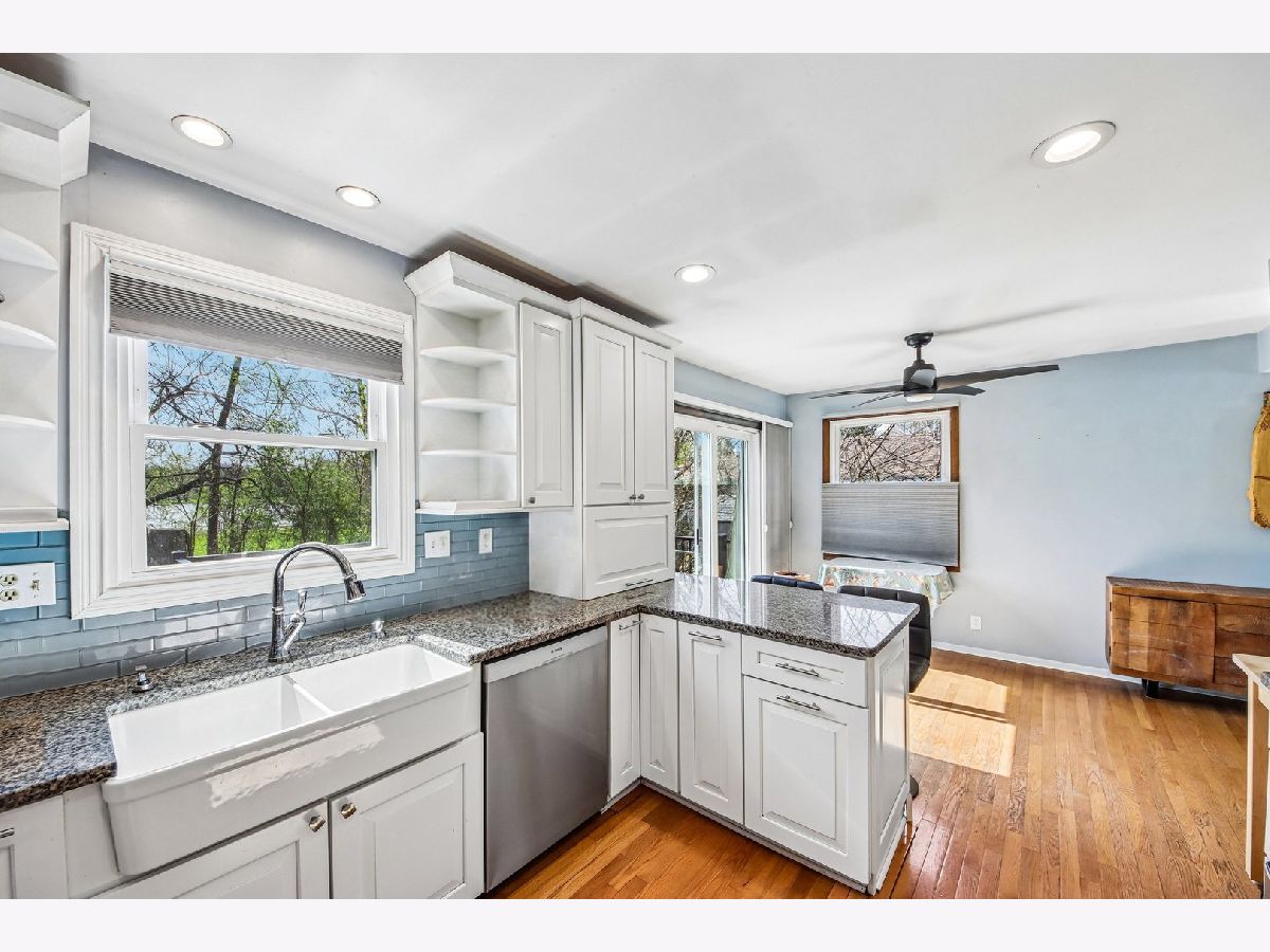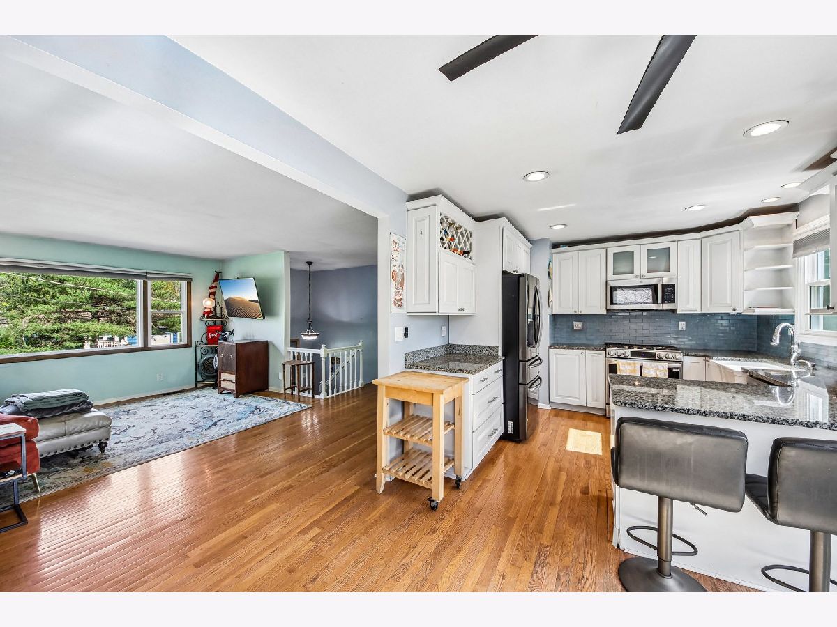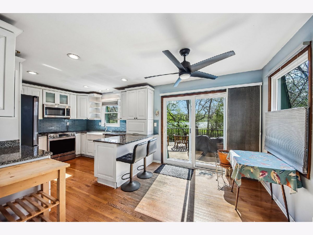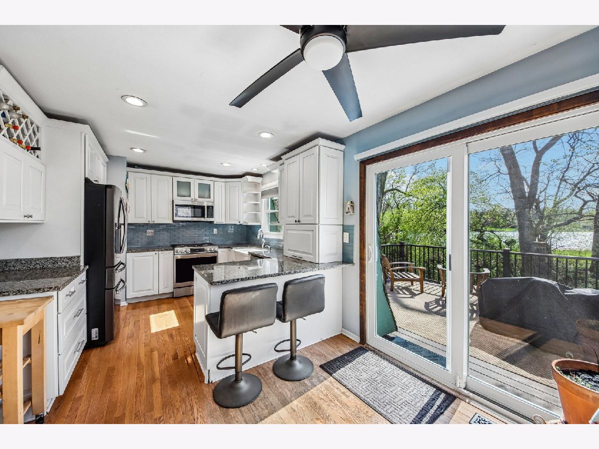 Come check out this stunning 3-bedroom, 3 full bathroom staycation-worthy lake view property! Nestled on a gorgeous wooded lot backing to stocked Goose Lake, this home offers direct views and access to Horner Park, complete with a fishing pier, perfect for relaxing or entertaining year-round. Step inside to a beautifully remodeled interior straight out of Magnolia Farms, highlighted by a show-stopping brand new kitchen. Features include custom white cabinetry with pull-outs, spice rack, mixer stand, soft-close drawers, appliance garage, lazy Susan, and pantry. Enjoy a farmhouse sink, subway tile backsplash, granite countertops, and high-end stainless steel appliances, including a range with double oven (new oven, dishwasher, and microwave in 2023). Under-cabinet lighting and hardwood flooring complete the space. This home is loaded with updates and smart features, including Bali honeycomb shades, Nest thermostat, Wi-Fi garage door opener, and numerous major improvements: new furnace and A/C (2024), new sump pump (2026), hot water heater, washing machine, and new bedroom flooring (2024). Additional upgrades include gutter guards (2022), new PVC deck (2025), professional tree care for all cottonwoods (2024), new basement windows and sliding doors (2020), and new front door and garage entry door (2021). Offering 3 full bathrooms, including a remodeled private primary suite bath with smart light switch, plus an updated lower-level bath. Cozy up by the gorgeous stone wood-burning fireplace or enjoy the expansive rear deck overlooking serene lake views. The garage includes a dedicated storage room for added convenience. A rare opportunity to own a move-in ready home in an unbeatable setting, don't hesitate or you'll miss out!