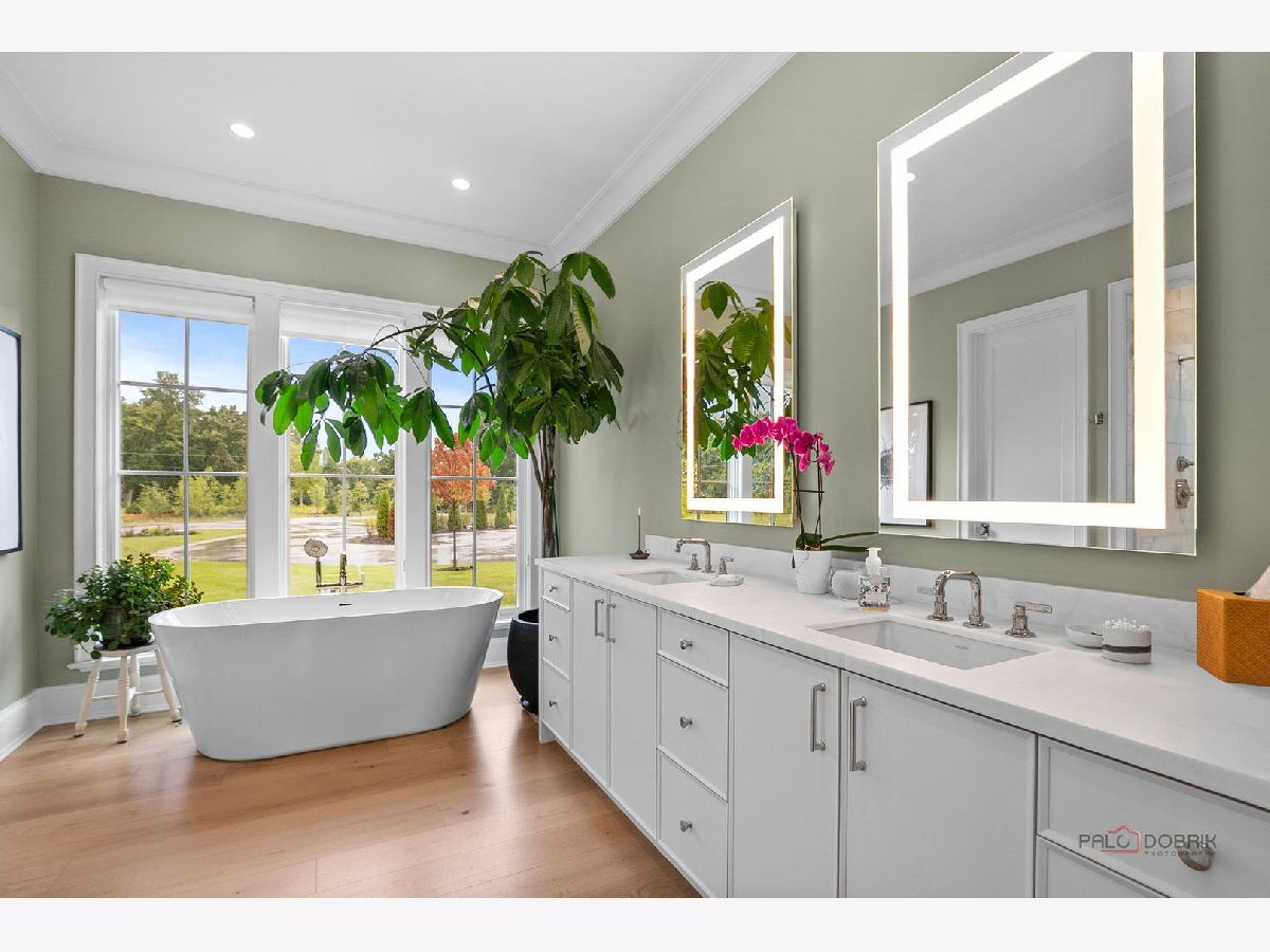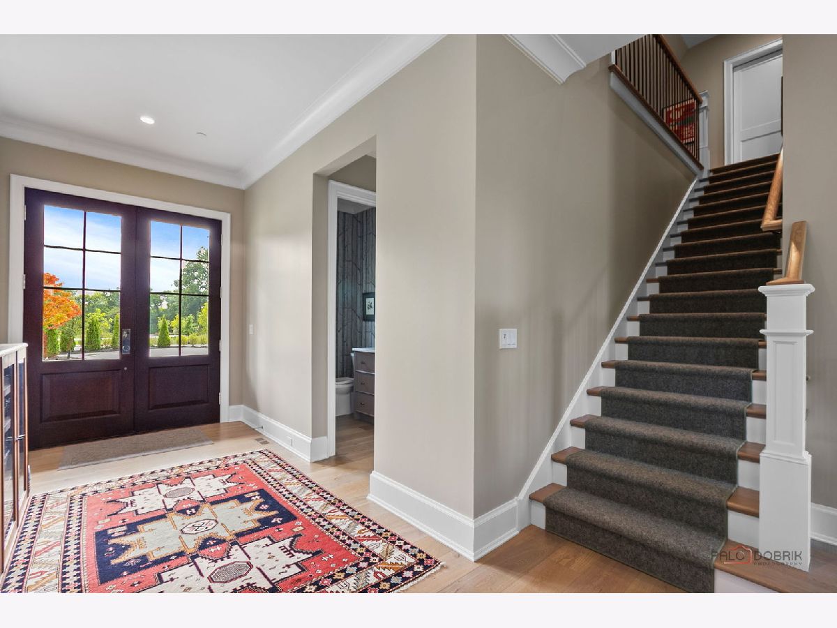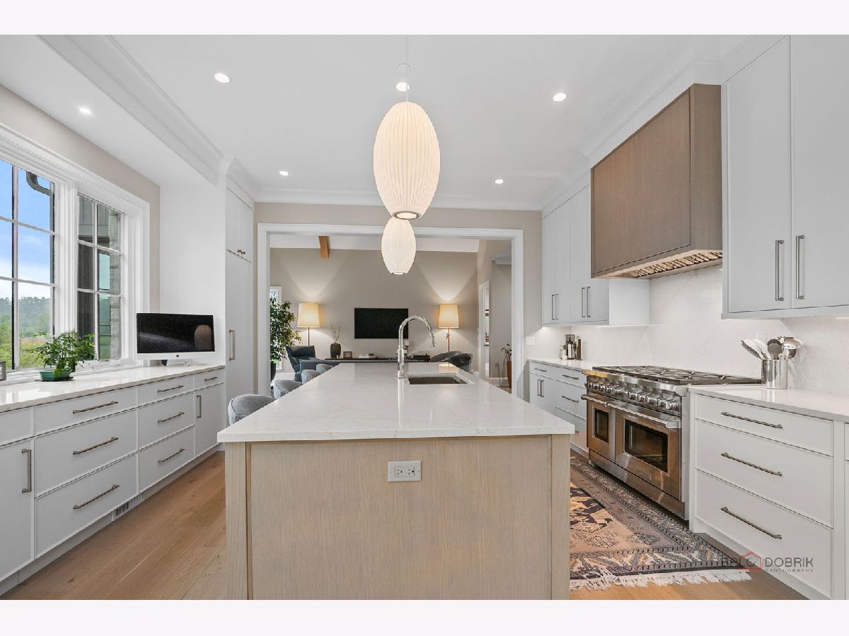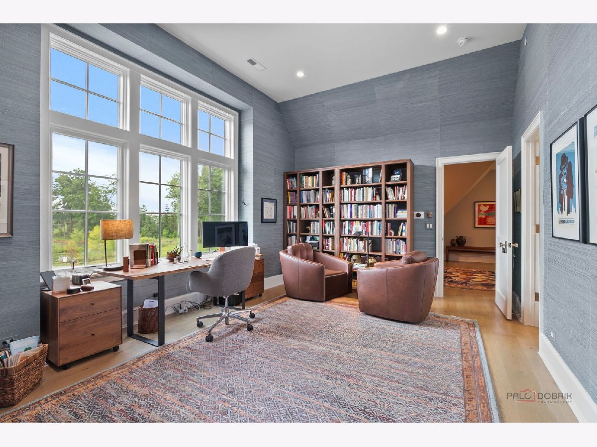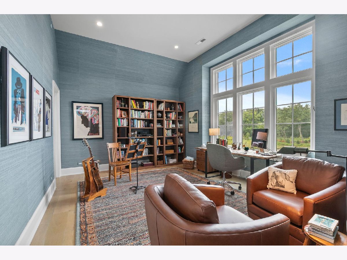 Enjoy elevated living in this professionally designed, move-in ready home located in The Preserve at Westleigh. With unobstructed views of Lake Forest Open Lands in a cul-de-sac setting, this custom-built residence blends luxury construction with high-end interior design by Tom Ferguson Interiors of Chicago. The owners enhanced the entire home with thoughtful upgrades, including custom window treatments and floating built-in cabinetry in the library, creating a polished and welcoming environment. As you enter the home, you are greeted by a vaulted family room with fireplace and beautiful views of the Open Lands. This room flows effortlessly into a spacious chef's kitchen and dining area with picture windows and access to the backyard-ideal for both everyday comfort and entertaining. The first-floor primary suite offers privacy and tranquility, complete with a large walk-in closet and spa-like bath. A separate library with views of the front yard, powder room, and practical mudroom/laundry room add to the home's functional layout. Upstairs, two en-suite bedrooms and a spacious loft provide flexible space, with a large carpeted attic space that offers great potential for storage or future customization. The full, unfinished basement includes plumbing for a full bath and offers a generous space for adding additional living areas. The owner has drawings available to finish the basement, including rec room, bedroom, full bath and storage. A custom patio just off the kitchen is set to be finished by summer, offering views of the 17-acre Carruthers Nature Preserve -- Lake Forest's newest accessible spot for birding and fishing, complete with scenic walking trails. All just minutes from Lake Forest's shopping, schools, train station, and parks, this home is an exceptional opportunity to enjoy beautiful new construction in a serene setting.