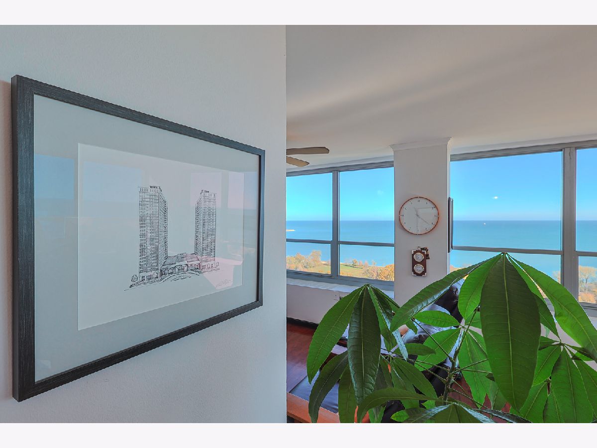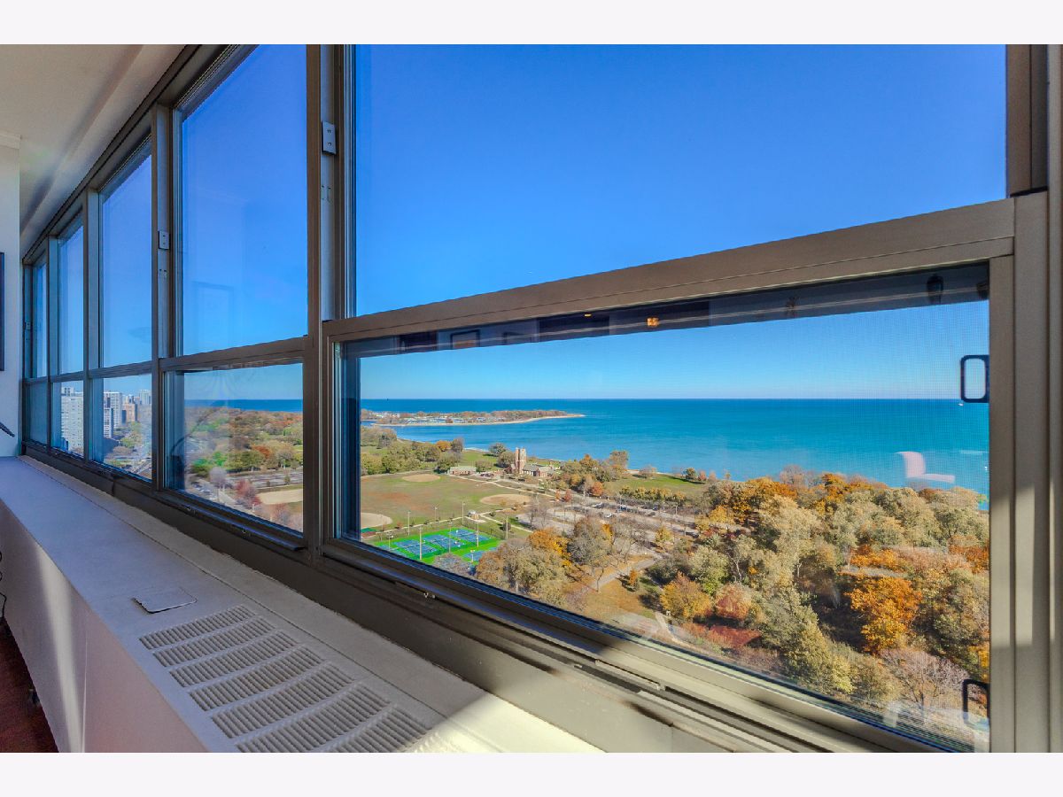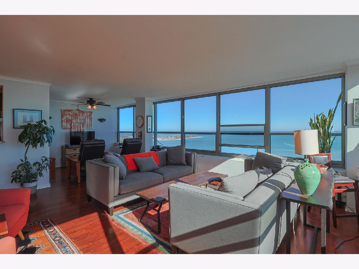 Breathtaking Lake and Park Views from Every Room! Prepare to be captivated by the sweeping views that stretch all the way to Navy Pier. You truly have to see it to believe it! This stunning condo features real hardwood floors throughout the living and dining areas, two spacious bedrooms, and two beautifully updated full bathrooms. The expansive primary suite offers a serene retreat with its en-suite bath and massive walk-in closet. The remodeled, open-concept kitchen boasts stone countertops, a marble backsplash, and stainless steel appliances, perfect for both cooking and entertaining. Located in one of the most sought-after buildings on Lake Shore Drive. This building offers the best of city living with 24-hour door staff, valet parking, a fitness center, bike room and one of the finest rooftop decks in Chicago showcasing panoramic skyline and lake views. Enjoy easy access to public transit, and rental parking is available through the building's garage.