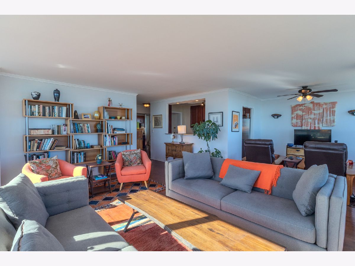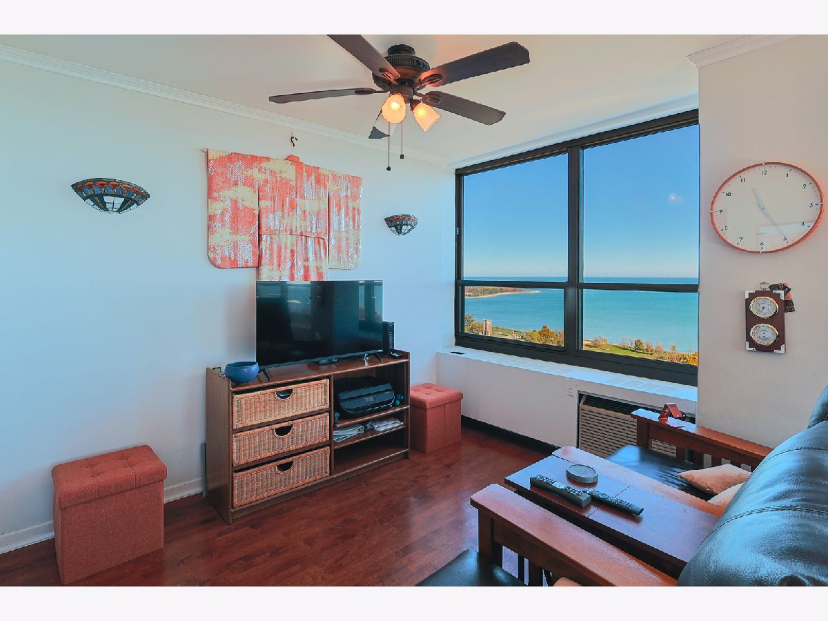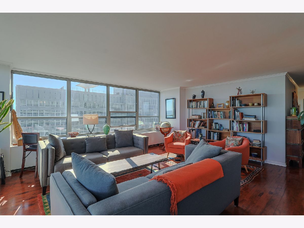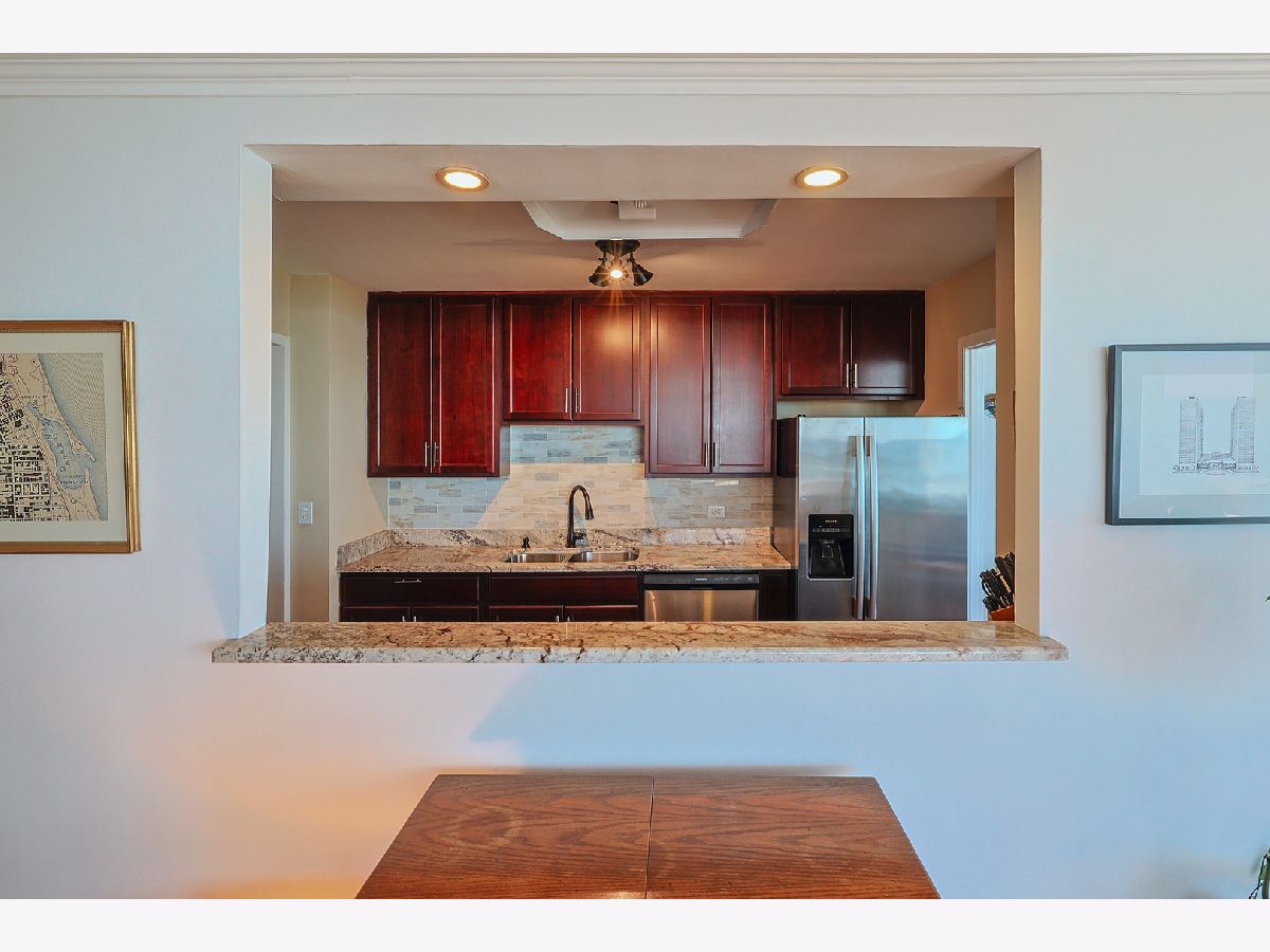 Breathtaking Lake and Park Views from Every Room! Prepare to be captivated by the sweeping views that stretch all the way to Navy Pier. You truly have to see it to believe it! This stunning condo features real hardwood floors throughout the living and dining areas, two spacious bedrooms, and two beautifully updated full bathrooms. The expansive primary suite offers a serene retreat with its en-suite bath and massive walk-in closet. The remodeled, open-concept kitchen boasts stone countertops, a marble backsplash, and stainless steel appliances, perfect for both cooking and entertaining. Located in one of the most sought-after buildings on Lake Shore Drive. This building offers the best of city living with 24-hour door staff, valet parking, a fitness center, bike room and one of the finest rooftop decks in Chicago showcasing panoramic skyline and lake views. Enjoy easy access to public transit, and rental parking is available through the building's garage.
