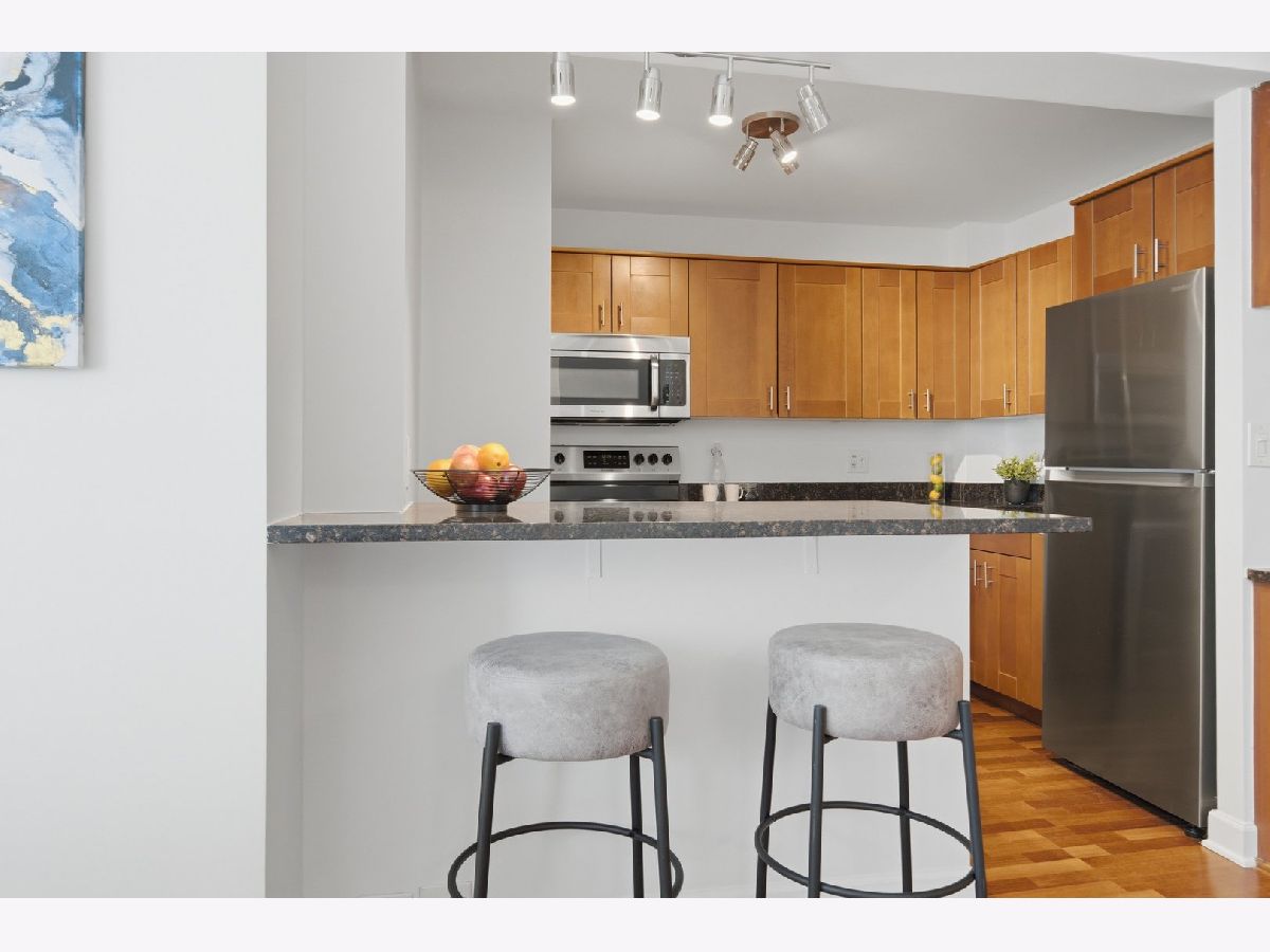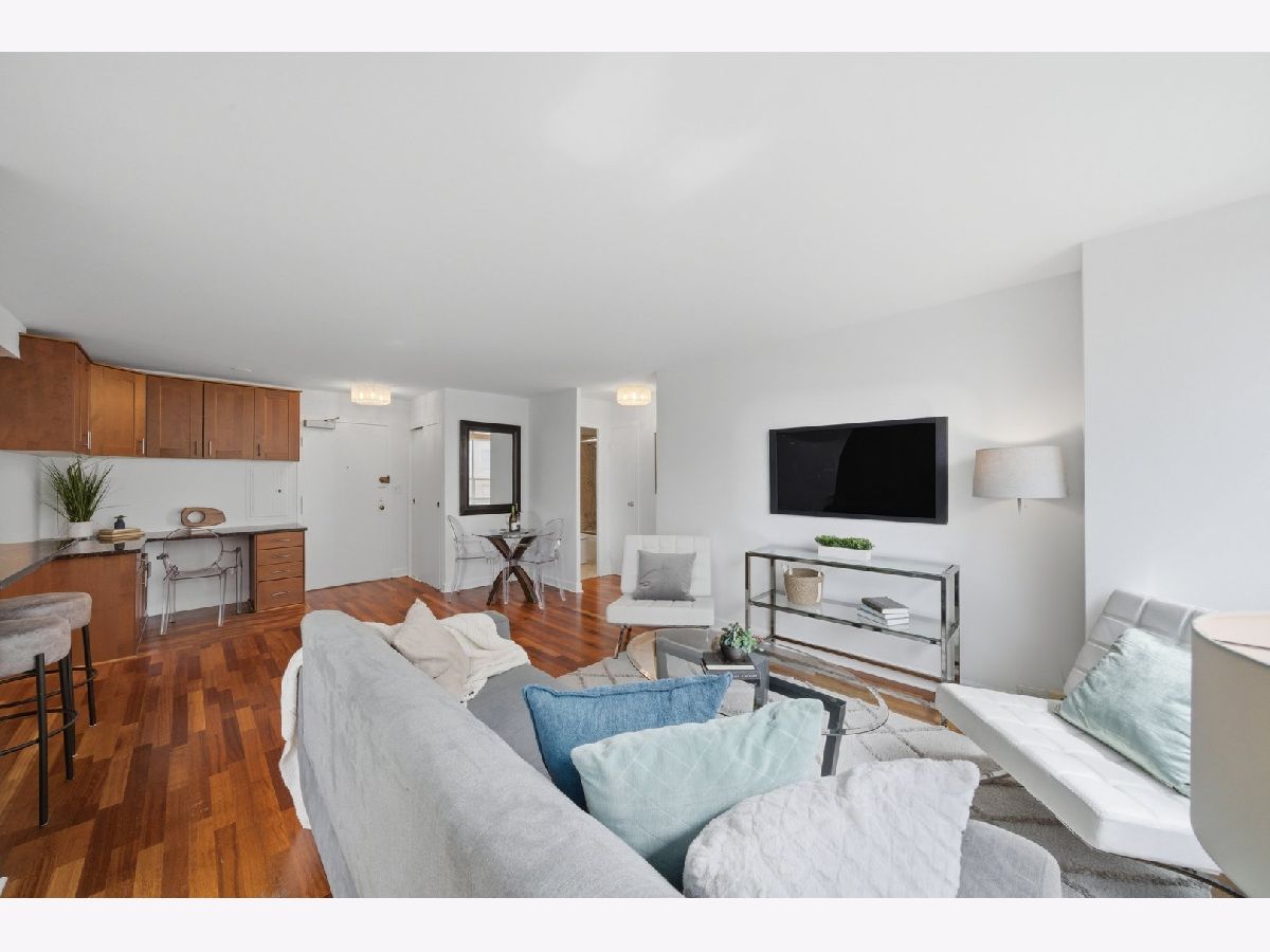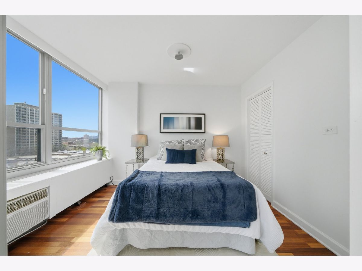 Welcome to Residence 904 at 3550 N. Lake Shore Drive. Situated in one of East Lake View's premier full-service buildings, this sophisticated 2-bedroom, 1-bath residence offers a rare combination of refined design, functional layout, and views of Lake Michigan and Belmont Harbor. A thoughtfully designed split floor plan enhances both privacy and flow, while the expansive living and dining areas are framed by stunning natural light and picturesque waterfront vistas-ideal for both everyday living and elegant entertaining. The chef-inspired kitchen is appointed with sleek granite countertops, newer stainless steel appliances, and an oversized breakfast bar that seamlessly connects to the main living space, creating a warm yet modern gathering point. A standout addition is the custom-designed home office, featuring built-in cabinetry and an L-shaped granite workspace-perfectly suited for today's elevated work-from-home lifestyle. The generously proportioned primary suite offers a tranquil retreat, complete with a walk-in closet and can easily accommodate a king-size bed with a sitting area. The second bedroom, enclosed by chic French pocket doors, provides versatility as a guest suite, den, or additional workspace. The spa-like bathroom is finished with natural stone flooring, full-height tile and multiple shower sprays, evoking a sense of understated luxury. Rich cherry wood flooring extends throughout the main living areas, adding warmth and cohesion. Residents at 3550 N. Lake Shore Drive enjoy a full suite of upscale amenities, including 24-hour door staff, panoramic rooftop decks, 2 laundry rooms, a fully equipped fitness center, party room, commissary, secure package receiving room, and on-site management and maintenance-delivering a seamless, service-oriented living experience. Valet parking is available for $160 a month and EV charging options at an additional $55 a month, which adds an extra layer of convenience, while premier access to the lakefront, nearby parks, dining, and entertainment-including Wrigley Field-places the very best of Chicago just moments away. Your monthly assessments include heat, water, and expanded cable, offering both comfort and value...your only utility bill is electric. Please note that No in-unit washer/dryer allowed and you must own for 18 months before renting, however, there's no rental cap. 3550 N. LSD is a Non-Smoking and No Dog Building. This is a rare opportunity to experience elevated lakefront living in one of Chicago's most desirable neighborhoods. Welcome home!