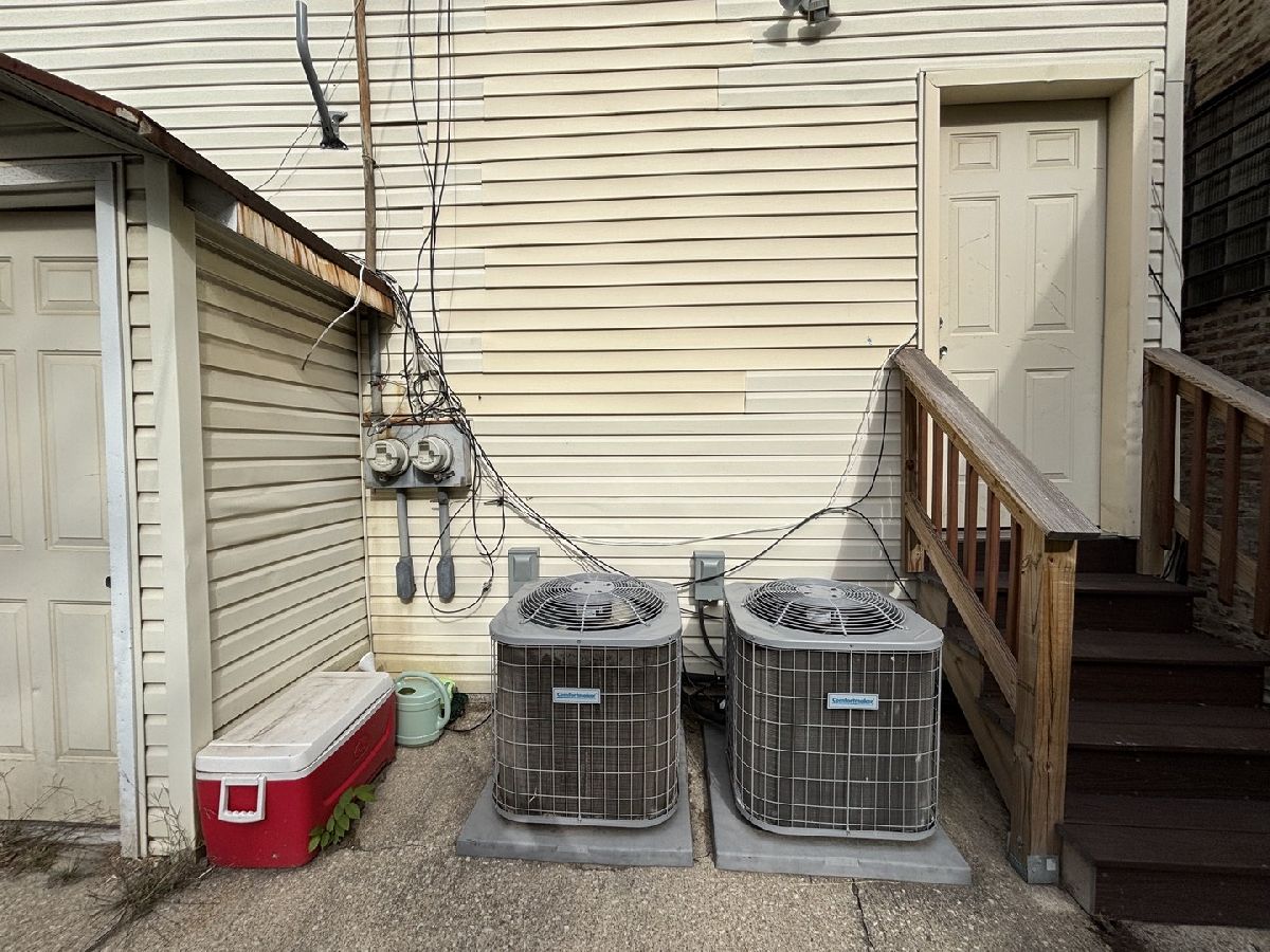 Brick 2 flat solid building with unfinished basement ready for a new owner. Both units in a very good conditions with hardwood floors, ceramic tiles in bathroom and separate furnaces. Central A/C for both units. 2nd floor unit vacant with an extra room on the back of the kitchen. Fenced and locked yard. Laundry hookups in the basement and ready to build a laundry room. Very convenient location, close to city public transportation. Bus station in front of the house.