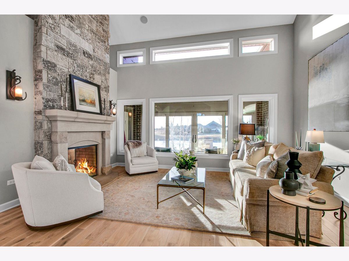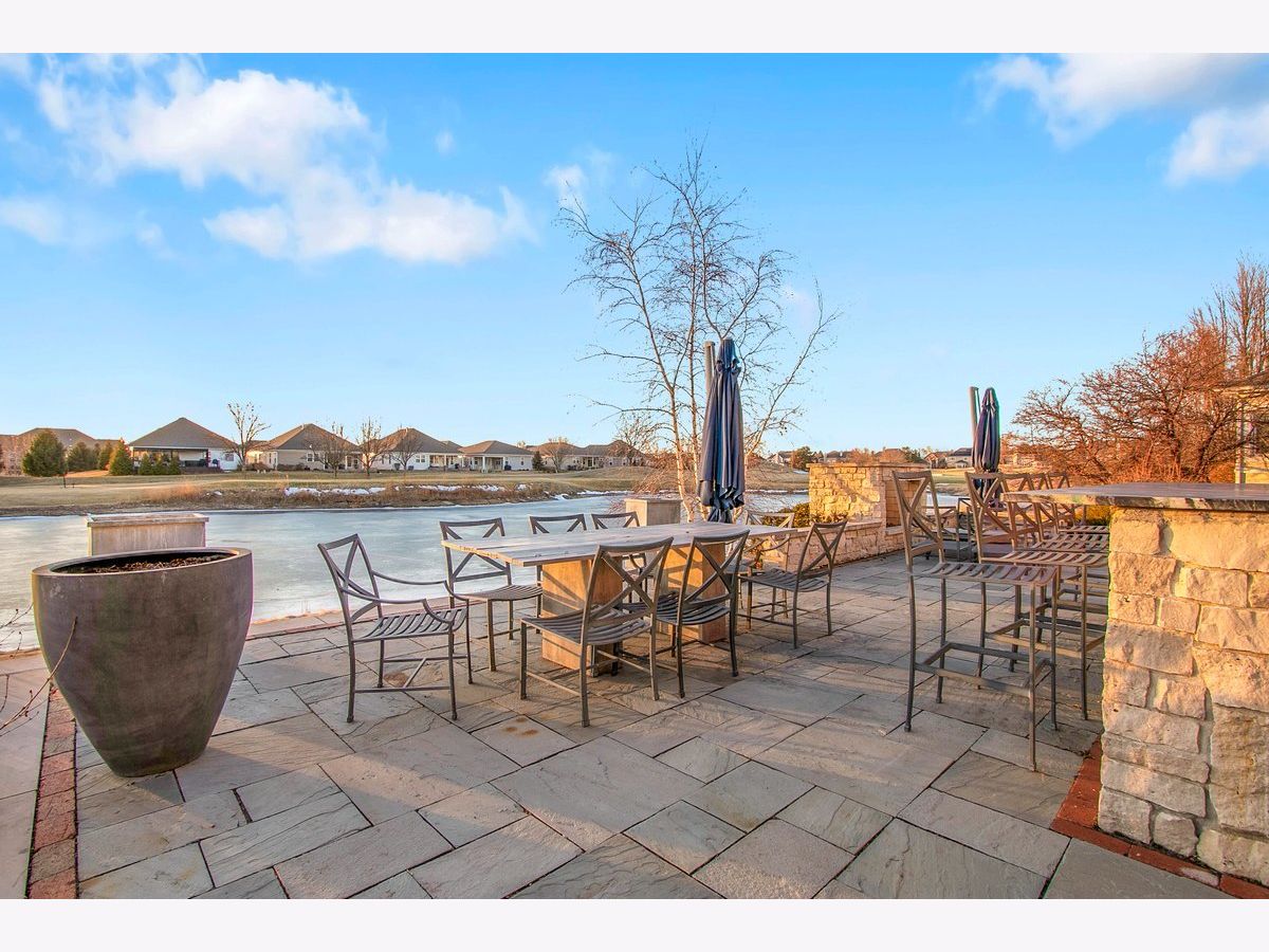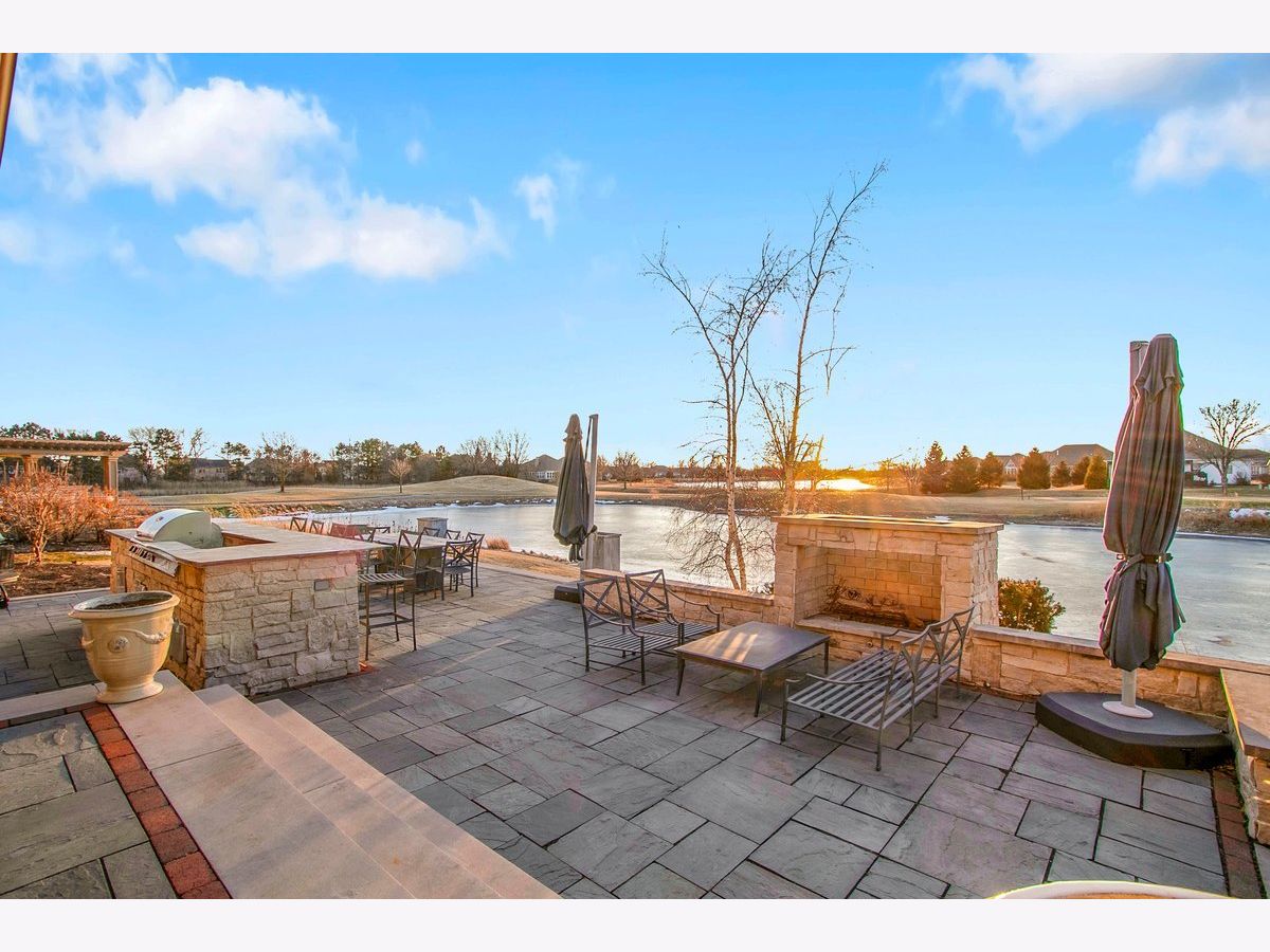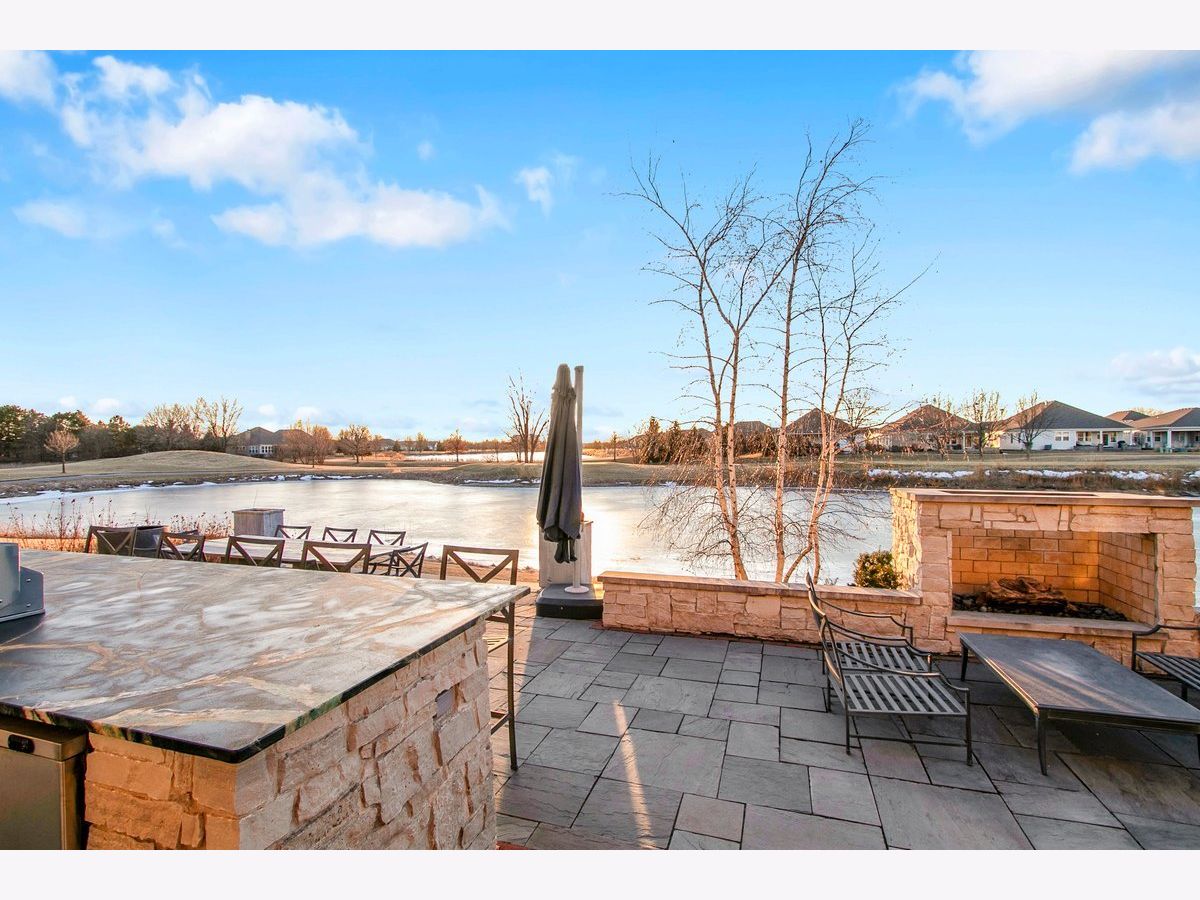 Located in the prestigious White Eagle Club of Naperville, this exceptional all stone and brick, 5-bedroom, 6-bath luxury estate built in 2008 offers over 6,800 square feet of beautifully finished living space, perfectly positioned to capture breathtaking sunset views over serene ponds and the golf course. From the moment you enter, soaring 12-foot ceilings and refined architectural detail set the tone for sophisticated living. New light hardwood adorns the first floor. The first-floor primary suite is a private sanctuary featuring a stunning spa-inspired bath and expansive custom walk-in closet with 14 foot ceilings. The second level offers three spacious bedrooms - two with private en-suite baths and one with direct bath access - all with generous walk-in closets. A second office or 5th bedroom and dedicated media room complete the upper level, offering incredible flexibility for today's lifestyle. At the heart of the home is the extraordinary, fully updated chef's kitchen designed for both grand entertaining and everyday comfort. It flows seamlessly into a warm hearth room anchored by a custom double-sided gas fireplace. A dramatic wall of windows showcases the stunning views and fills the home with natural light. The kitchen is impeccably appointed with a high-end Viking range and Sub-Zero appliances, including a wine refrigerator, beverage refrigerator, full-size dishwasher, and a separate dishwasher specifically designed for wine stems and fine glassware. Step outside to your private resort-style retreat featuring a soapstone topped outdoor kitchen, fireplace, and expansive stone patio - all set against tranquil ponds and the rolling golf course. The main level also offers a formal dining room, elegant living room, exquisite private office, 3-season sunroom, oversized mudroom/house manager's area, and a thoughtfully designed laundry room complete with a built-in dog shower. Car enthusiasts will appreciate the oversized 4-car garage with extra-tall doors to accommodate larger vehicles, along with an EV charger. The English basement is truly remarkable and must be experienced. Featuring tall ceilings, custom lighting, a stunning Carrera marble bar and secondary kitchen, expansive family room with double-sided fireplace, dining area, workout room, yoga room, and abundant storage - it is the ultimate extension of the home's luxurious living space. Lawn care and snow removal are included so your weekends are yours to enjoy. As a resident of White Eagle Club, enjoy access to a premier lifestyle community offering a pool, tennis courts, clubhouse amenities, monitored and patrolled security, and highly acclaimed award-winning District 204 schools.