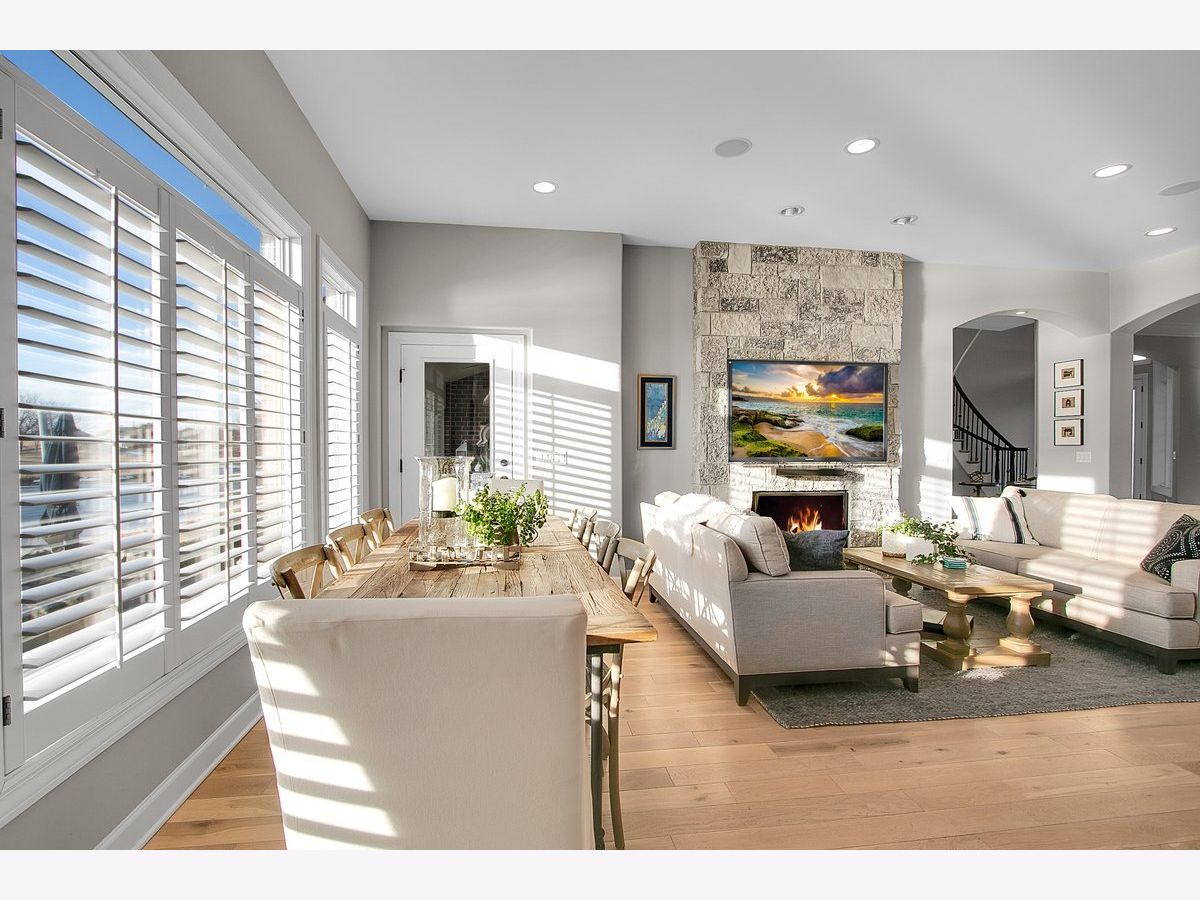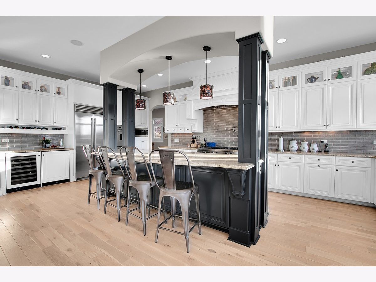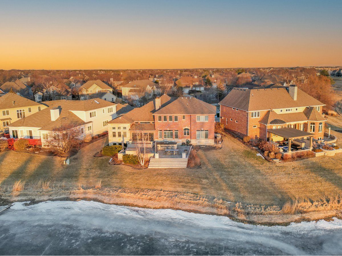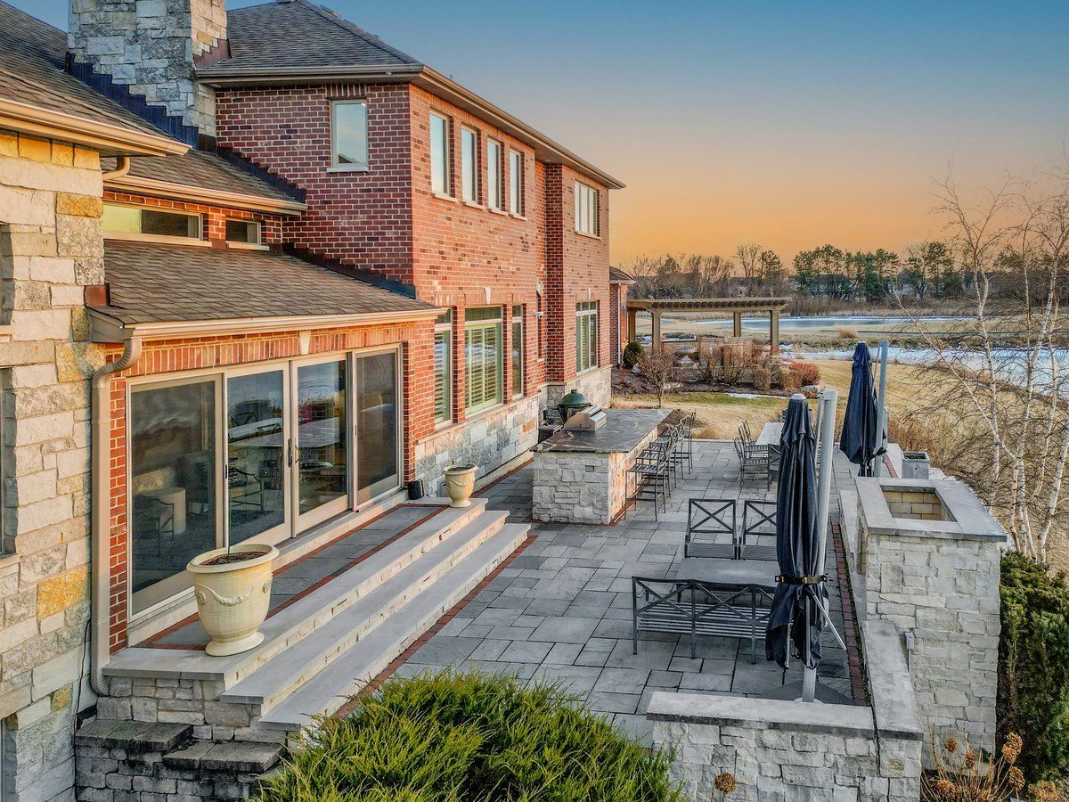 Located in the prestigious White Eagle Club of Naperville, this exceptional all stone and brick, 5-bedroom, 6-bath luxury estate built in 2008 offers over 6,800 square feet of beautifully finished living space, perfectly positioned to capture breathtaking sunset views over serene ponds and the golf course. From the moment you enter, soaring 12-foot ceilings and refined architectural detail set the tone for sophisticated living. New light hardwood adorns the first floor. The first-floor primary suite is a private sanctuary featuring a stunning spa-inspired bath and expansive custom walk-in closet with 14 foot ceilings. The second level offers three spacious bedrooms - two with private en-suite baths and one with direct bath access - all with generous walk-in closets. A second office or 5th bedroom and dedicated media room complete the upper level, offering incredible flexibility for today's lifestyle. At the heart of the home is the extraordinary, fully updated chef's kitchen designed for both grand entertaining and everyday comfort. It flows seamlessly into a warm hearth room anchored by a custom double-sided gas fireplace. A dramatic wall of windows showcases the stunning views and fills the home with natural light. The kitchen is impeccably appointed with a high-end Viking range and Sub-Zero appliances, including a wine refrigerator, beverage refrigerator, full-size dishwasher, and a separate dishwasher specifically designed for wine stems and fine glassware. Step outside to your private resort-style retreat featuring a soapstone topped outdoor kitchen, fireplace, and expansive stone patio - all set against tranquil ponds and the rolling golf course. The main level also offers a formal dining room, elegant living room, exquisite private office, 3-season sunroom, oversized mudroom/house manager's area, and a thoughtfully designed laundry room complete with a built-in dog shower. Car enthusiasts will appreciate the oversized 4-car garage with extra-tall doors to accommodate larger vehicles, along with an EV charger. The English basement is truly remarkable and must be experienced. Featuring tall ceilings, custom lighting, a stunning Carrera marble bar and secondary kitchen, expansive family room with double-sided fireplace, dining area, workout room, yoga room, and abundant storage - it is the ultimate extension of the home's luxurious living space. Lawn care and snow removal are included so your weekends are yours to enjoy. As a resident of White Eagle Club, enjoy access to a premier lifestyle community offering a pool, tennis courts, clubhouse amenities, monitored and patrolled security, and highly acclaimed award-winning District 204 schools.