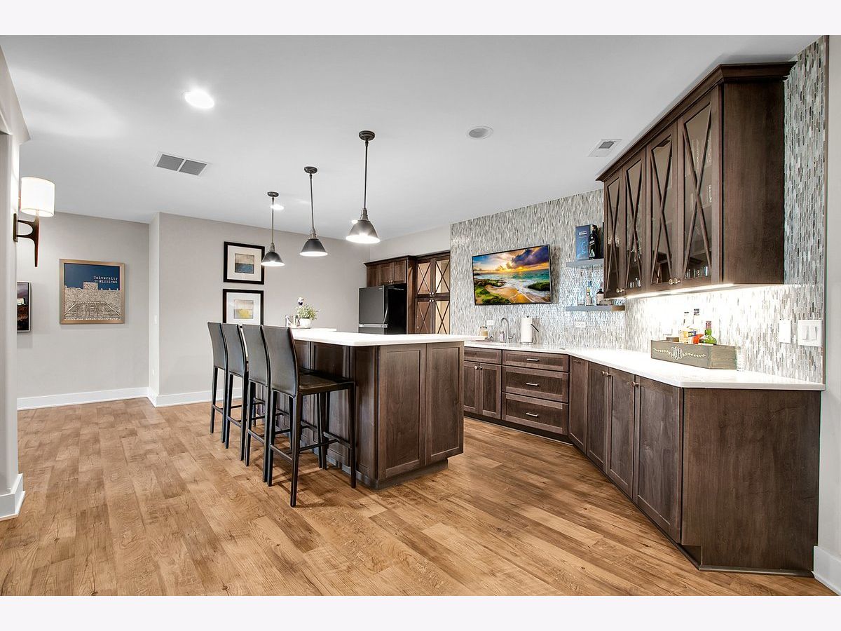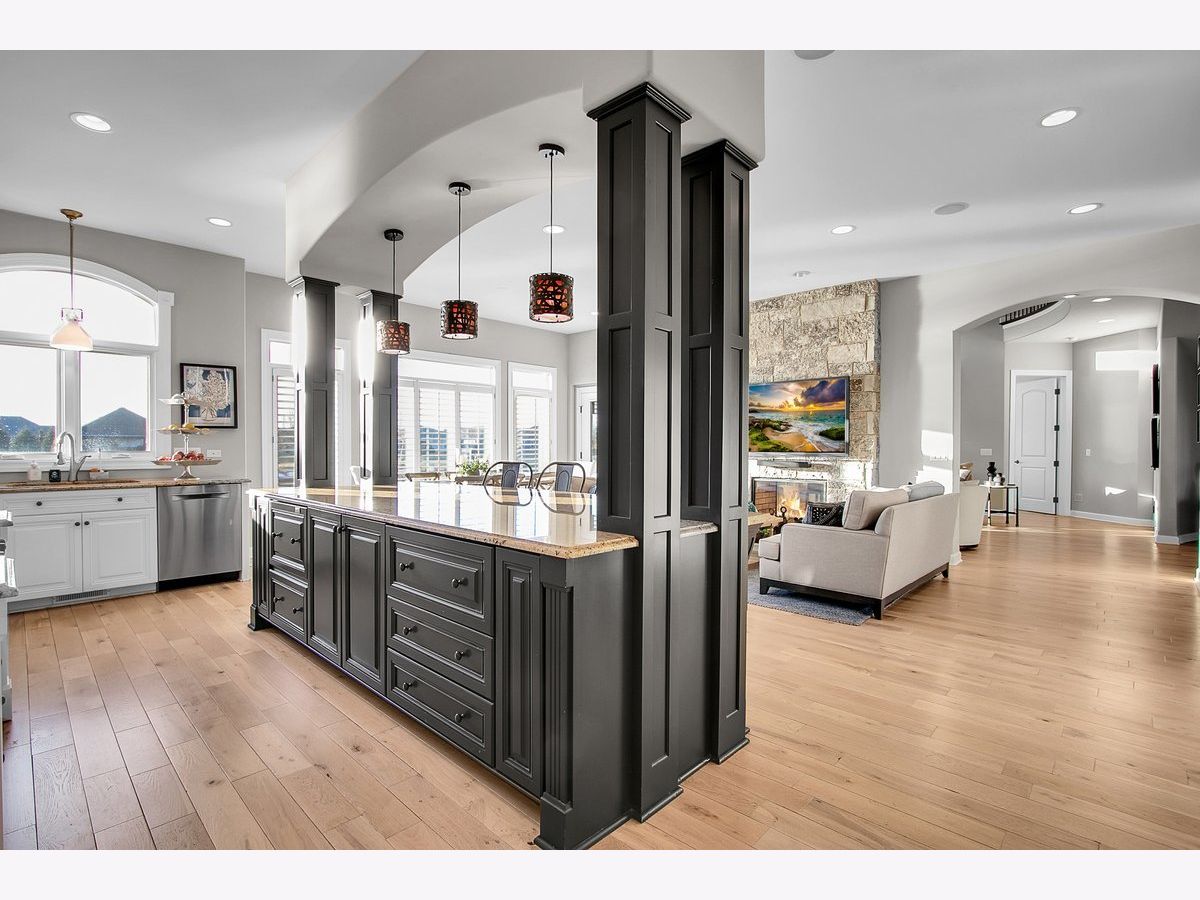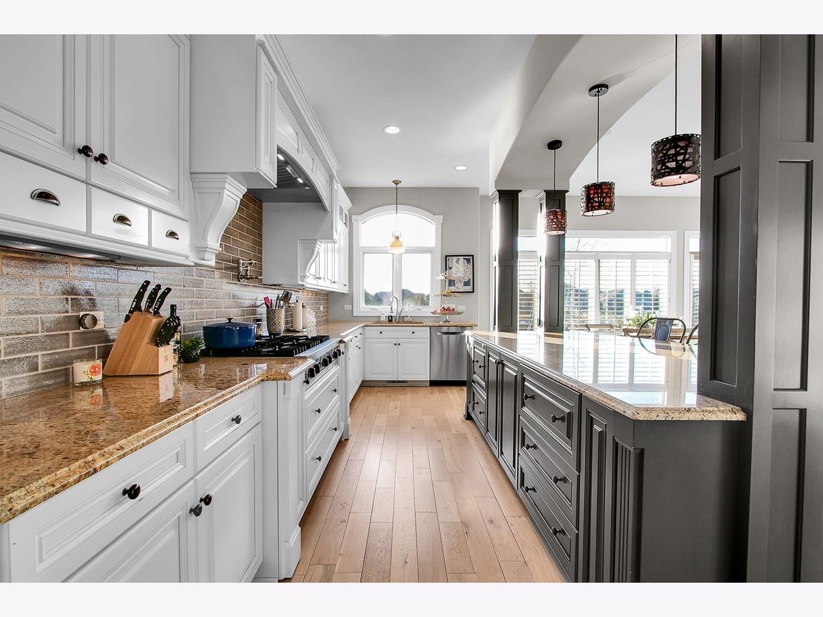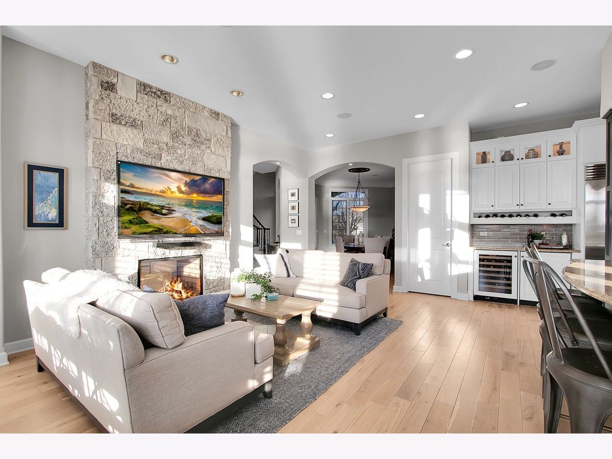 Located in the prestigious White Eagle Club of Naperville, this exceptional all stone and brick, 5-bedroom, 6-bath luxury estate built in 2008 offers over 6,800 square feet of beautifully finished living space, perfectly positioned to capture breathtaking sunset views over serene ponds and the golf course. From the moment you enter, soaring 12-foot ceilings and refined architectural detail set the tone for sophisticated living. New light hardwood adorns the first floor. The first-floor primary suite is a private sanctuary featuring a stunning spa-inspired bath and expansive custom walk-in closet with 14 foot ceilings. The second level offers three spacious bedrooms - two with private en-suite baths and one with direct bath access - all with generous walk-in closets. A second office or 5th bedroom and dedicated media room complete the upper level, offering incredible flexibility for today's lifestyle. At the heart of the home is the extraordinary, fully updated chef's kitchen designed for both grand entertaining and everyday comfort. It flows seamlessly into a warm hearth room anchored by a custom double-sided gas fireplace. A dramatic wall of windows showcases the stunning views and fills the home with natural light. The kitchen is impeccably appointed with a high-end Viking range and Sub-Zero appliances, including a wine refrigerator, beverage refrigerator, full-size dishwasher, and a separate dishwasher specifically designed for wine stems and fine glassware. Step outside to your private resort-style retreat featuring a soapstone topped outdoor kitchen, fireplace, and expansive stone patio - all set against tranquil ponds and the rolling golf course. The main level also offers a formal dining room, elegant living room, exquisite private office, 3-season sunroom, oversized mudroom/house manager's area, and a thoughtfully designed laundry room complete with a built-in dog shower. Car enthusiasts will appreciate the oversized 4-car garage with extra-tall doors to accommodate larger vehicles, along with an EV charger. The English basement is truly remarkable and must be experienced. Featuring tall ceilings, custom lighting, a stunning Carrera marble bar and secondary kitchen, expansive family room with double-sided fireplace, dining area, workout room, yoga room, and abundant storage - it is the ultimate extension of the home's luxurious living space. Lawn care and snow removal are included so your weekends are yours to enjoy. As a resident of White Eagle Club, enjoy access to a premier lifestyle community offering a pool, tennis courts, clubhouse amenities, monitored and patrolled security, and highly acclaimed award-winning District 204 schools.