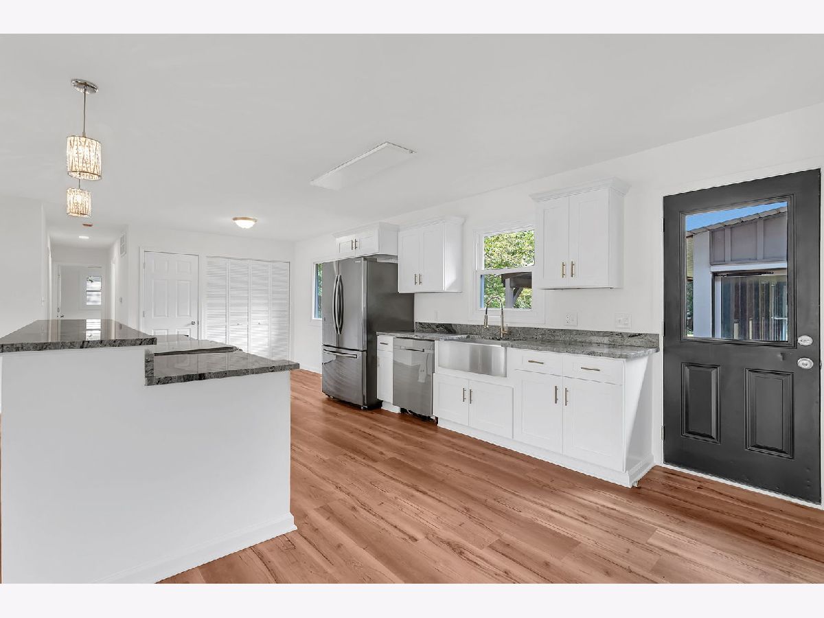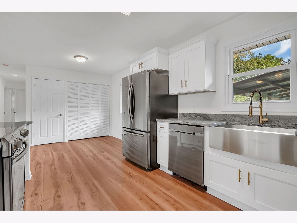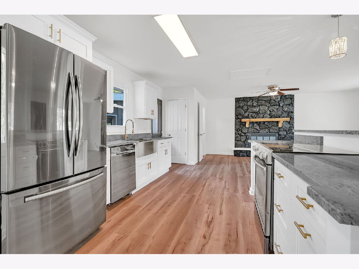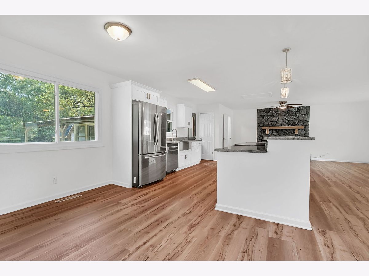 This beautifully updated 3-bedroom, 1.5-bath home has been fully renovated in 2025 and is truly move-in ready. The open floor plan features a stunning kitchen with a large island offering bar seating, a farmhouse sink, brand-new soft-close cabinetry, and modern fixtures throughout. All major appliances, including stove, refrigerator, dishwasher, washer, and dryer, are included. The living room is anchored by a charming fireplace, creating a warm and inviting atmosphere. Both bathrooms have been fully remodeled with contemporary finishes. Enjoy additional living space with a versatile three-seasons room/sunroom off the garage and relax outdoors on the covered deck. The property also includes a storage shed and sits on a spacious half-acre lot, perfect for entertaining or outdoor activities.