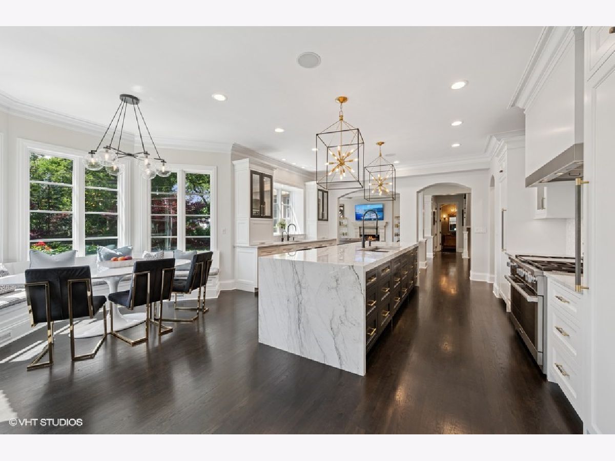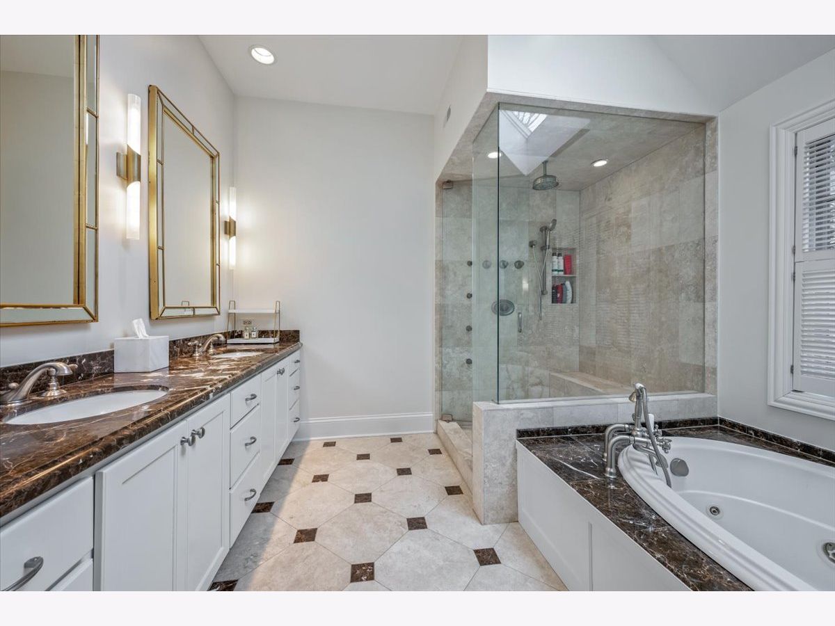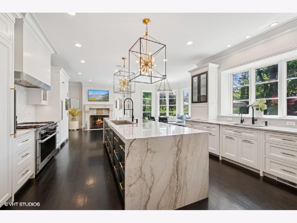 Incredible Coveted Home with 5 bedrooms, 5.2 bathrooms, 3 garages on 1/3 acre property boasts Winnetka address and Kenilworth School District. Built in 2004, this beautiful brick home feels like new construction with a complete first floor renovation in 2019 and upgrades throughout the home. As you enter the sun filled foyer, you are greeted with an open floor plan and 9'.5" ceilings. Flanking the foyer is the spacious dining room with gracious bay windows and a separate den with built-in bookshelves, fireplace and gorgeous wood beamed ceiling. The formal living room boasts floor to ceiling windows, limestone fireplace and opens into the fabulous kitchen. The kitchen is completely new from 2019 and is a chef's dream. A twelve-foot oversized island with a quartzite waterfall finish hosts custom cabinetry, generous workstation sink, custom cabinetry and island seating space. The incredible Miele appliances include a Six Burner Cooktop, 48" Dual Fuel Range with Steam Hook Up, Speed Oven, Warming Drawer, Convection Oven with Steam Hook Up and Griddle. The Miele Master Cool Built-In 30" Refrigerator and Miele Master Cool 30" Built-In Freezer make storing food a dream come true, especially when you utilize the walk-in pantry. There are two dishwashers and two sinks in the kitchen, both oversized with accessories, disposal, and an insta hot/cold filtered water dispenser. Last but not least, the built in Miele Combo steam oven adds to easy, healthy and efficient cooking. The eat-in kitchen area with custom, built-in banquet seating is nestled between the sunny bay windows. Anchoring the kitchen is the limestone fireplace making this room truly the heart of the home. From the kitchen patio doors, step out onto an outdoor entertaining space that is perfect for entertaining or relaxing in the great outdoors. The built-in bluestone bar area along with a wood burning fireplace, outdoor television, built-in gas grill, seven person all-season resort spa are included on the 1/3 of an acre outdoor playground. Moving back inside, the second floor primary suite has vaulted ceilings, separate closets and a primary bathroom with double sinks, oversized shower and Jacuzzi tub where you can gaze at the moon through the skylight. There are three additional bedrooms on the second floor, all en-suite. The laundry room is conveniently located on the second floor with folding area and built-in cabinets and sink. The lower level has an incredible recreation area with kitchenette, granite countertops, island for seating, cabinetry, a double sink, Fisher Paykel Double Dishwasher Drawers, a mini refrigerator, microwave, and a built-in wine closet. Enjoy the theatre space, exercise room, gracious 5th bedroom, full bathroom and storage galore! There are two separate garage areas: a two car garage and an additional one car garage all attached to the home equaling a 3 car attached garage with EV vehicle charger. The exterior front of the house welcomes you with an over sized circular brick driveway, with professional landscaping and lighting on the entire property. Newer roof, new hot water tanks, new thermostats and central vacuum system make this home move in ready! The home is conveniently located near schools, train, and a block and a half from Lake Michigan. This home is meticulously maintained in a prime location.