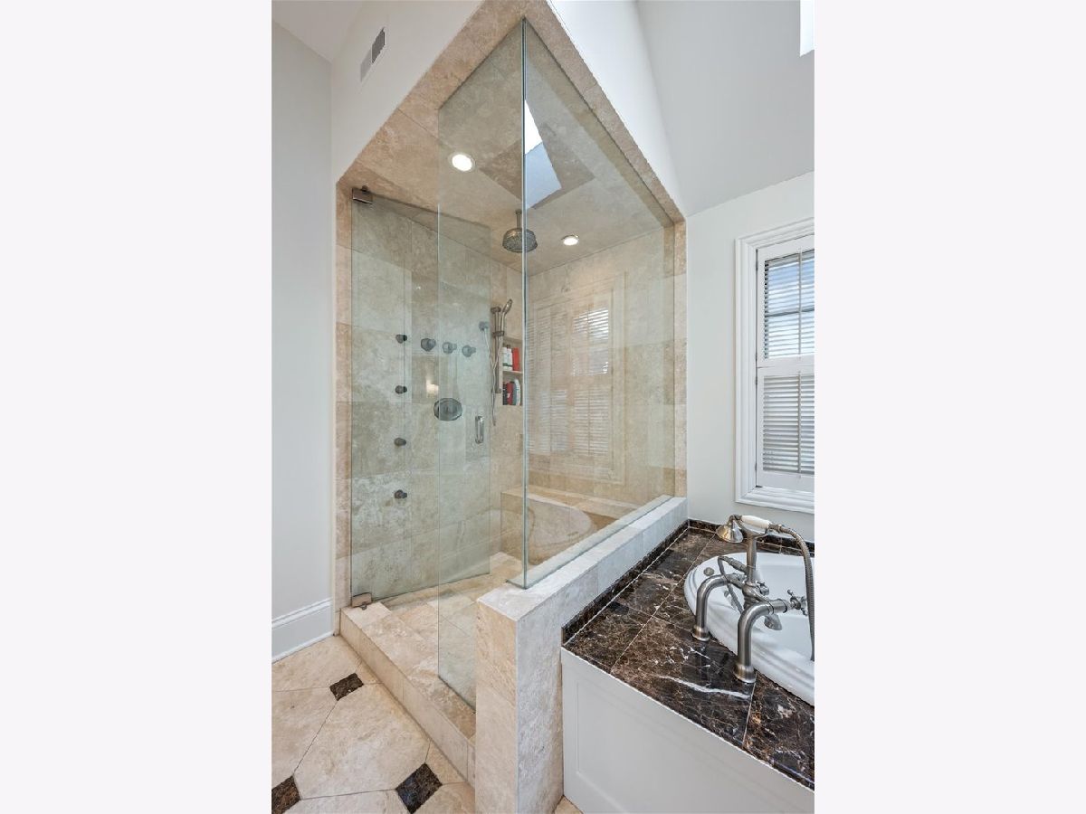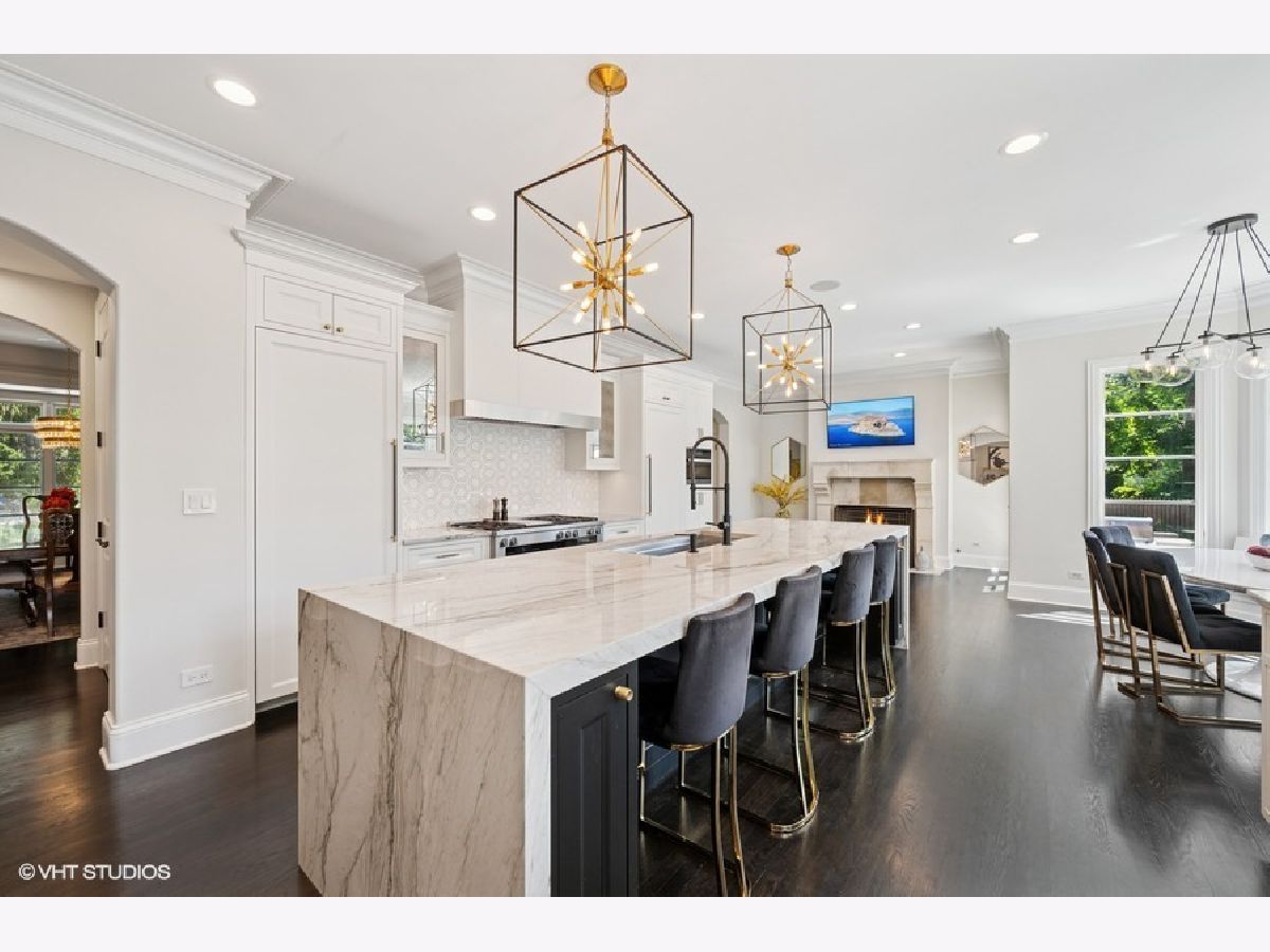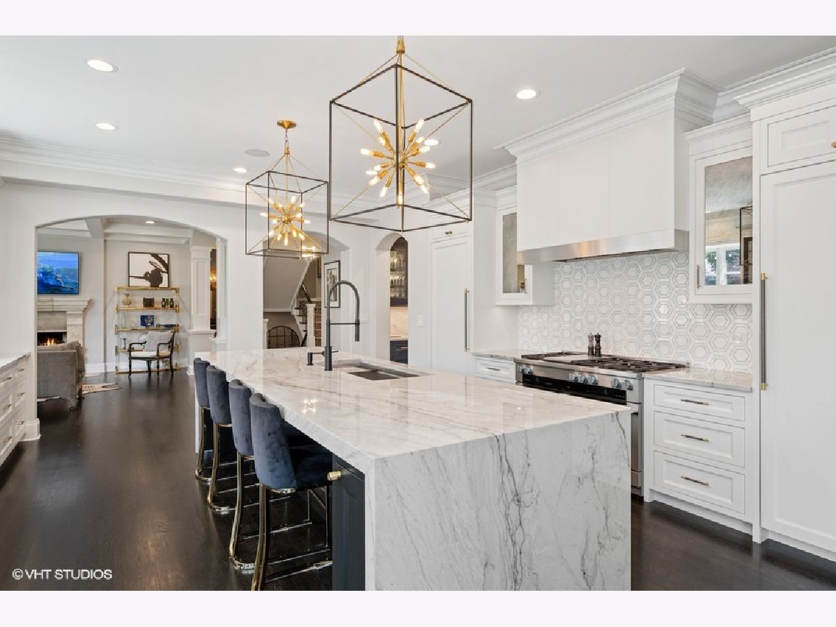 Incredible Coveted Home with 5 bedrooms, 5.2 bathrooms, 3 garages on 1/3 acre property boasts Winnetka address and Kenilworth School District. Built in 2004, this beautiful brick home feels like new construction with a complete first floor renovation in 2019 and upgrades throughout the home. As you enter the sun filled foyer, you are greeted with an open floor plan and 9'.5" ceilings. Flanking the foyer is the spacious dining room with gracious bay windows and a separate den with built-in bookshelves, fireplace and gorgeous wood beamed ceiling. The formal living room boasts floor to ceiling windows, limestone fireplace and opens into the fabulous kitchen. The kitchen is completely new from 2019 and is a chef's dream. A twelve-foot oversized island with a quartzite waterfall finish hosts custom cabinetry, generous workstation sink, custom cabinetry and island seating space. The incredible Miele appliances include a Six Burner Cooktop, 48" Dual Fuel Range with Steam Hook Up, Speed Oven, Warming Drawer, Convection Oven with Steam Hook Up and Griddle. The Miele Master Cool Built-In 30" Refrigerator and Miele Master Cool 30" Built-In Freezer make storing food a dream come true, especially when you utilize the walk-in pantry. There are two dishwashers and two sinks in the kitchen, both oversized with accessories, disposal, and an insta hot/cold filtered water dispenser. Last but not least, the built in Miele Combo steam oven adds to easy, healthy and efficient cooking. The eat-in kitchen area with custom, built-in banquet seating is nestled between the sunny bay windows. Anchoring the kitchen is the limestone fireplace making this room truly the heart of the home. From the kitchen patio doors, step out onto an outdoor entertaining space that is perfect for entertaining or relaxing in the great outdoors. The built-in bluestone bar area along with a wood burning fireplace, outdoor television, built-in gas grill, seven person all-season resort spa are included on the 1/3 of an acre outdoor playground. Moving back inside, the second floor primary suite has vaulted ceilings, separate closets and a primary bathroom with double sinks, oversized shower and Jacuzzi tub where you can gaze at the moon through the skylight. There are three additional bedrooms on the second floor, all en-suite. The laundry room is conveniently located on the second floor with folding area and built-in cabinets and sink. The lower level has an incredible recreation area with kitchenette, granite countertops, island for seating, cabinetry, a double sink, Fisher Paykel Double Dishwasher Drawers, a mini refrigerator, microwave, and a built-in wine closet. Enjoy the theatre space, exercise room, gracious 5th bedroom, full bathroom and storage galore! There are two separate garage areas: a two car garage and an additional one car garage all attached to the home equaling a 3 car attached garage with EV vehicle charger. The exterior front of the house welcomes you with an over sized circular brick driveway, with professional landscaping and lighting on the entire property. Newer roof, new hot water tanks, new thermostats and central vacuum system make this home move in ready! The home is conveniently located near schools, train, and a block and a half from Lake Michigan. This home is meticulously maintained in a prime location.