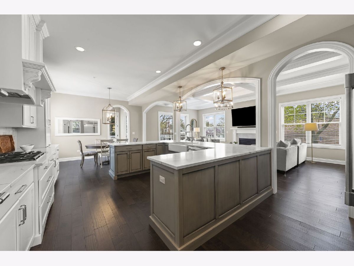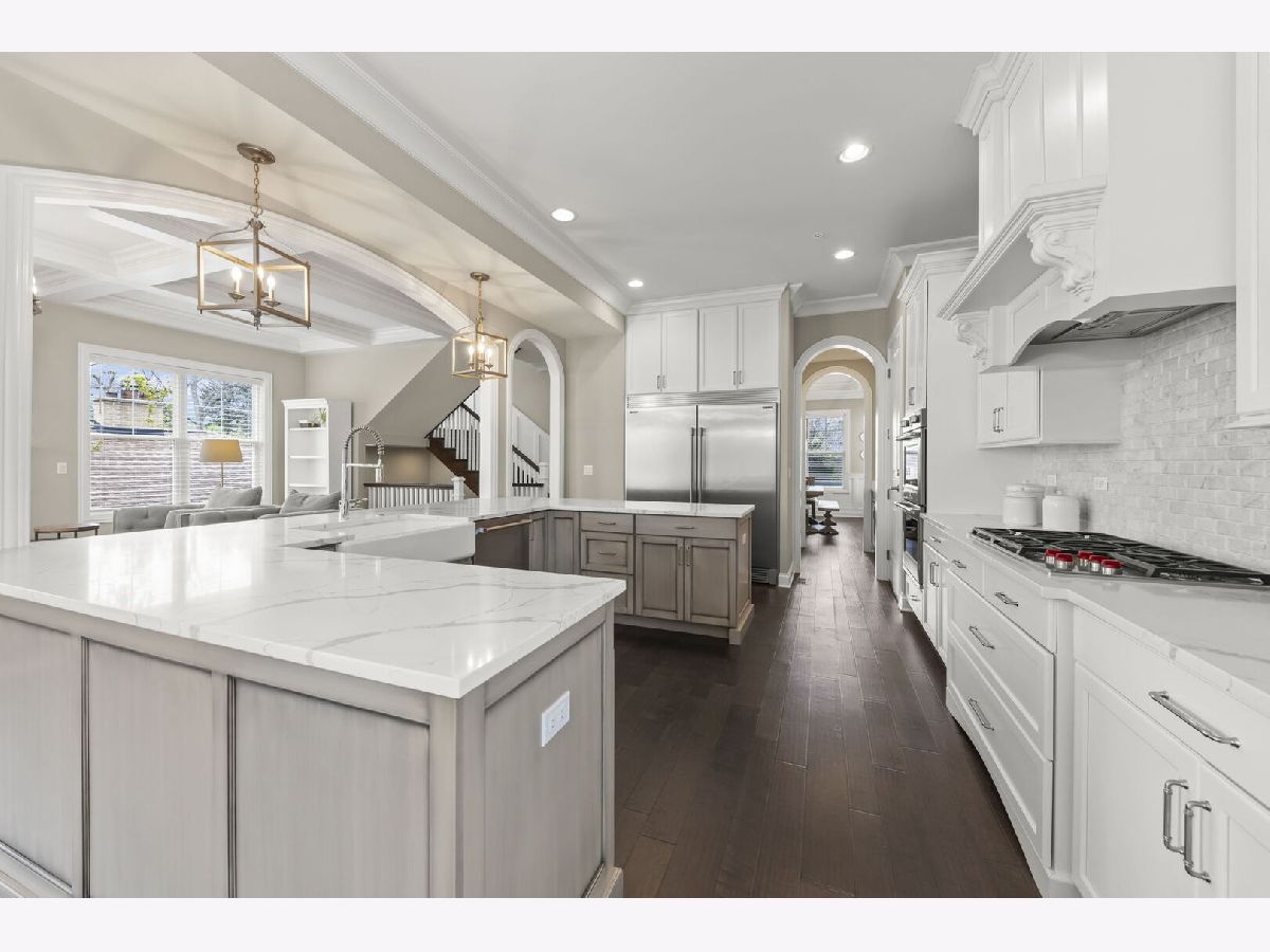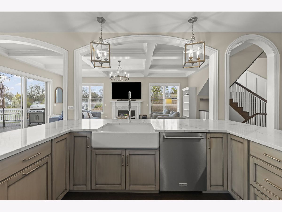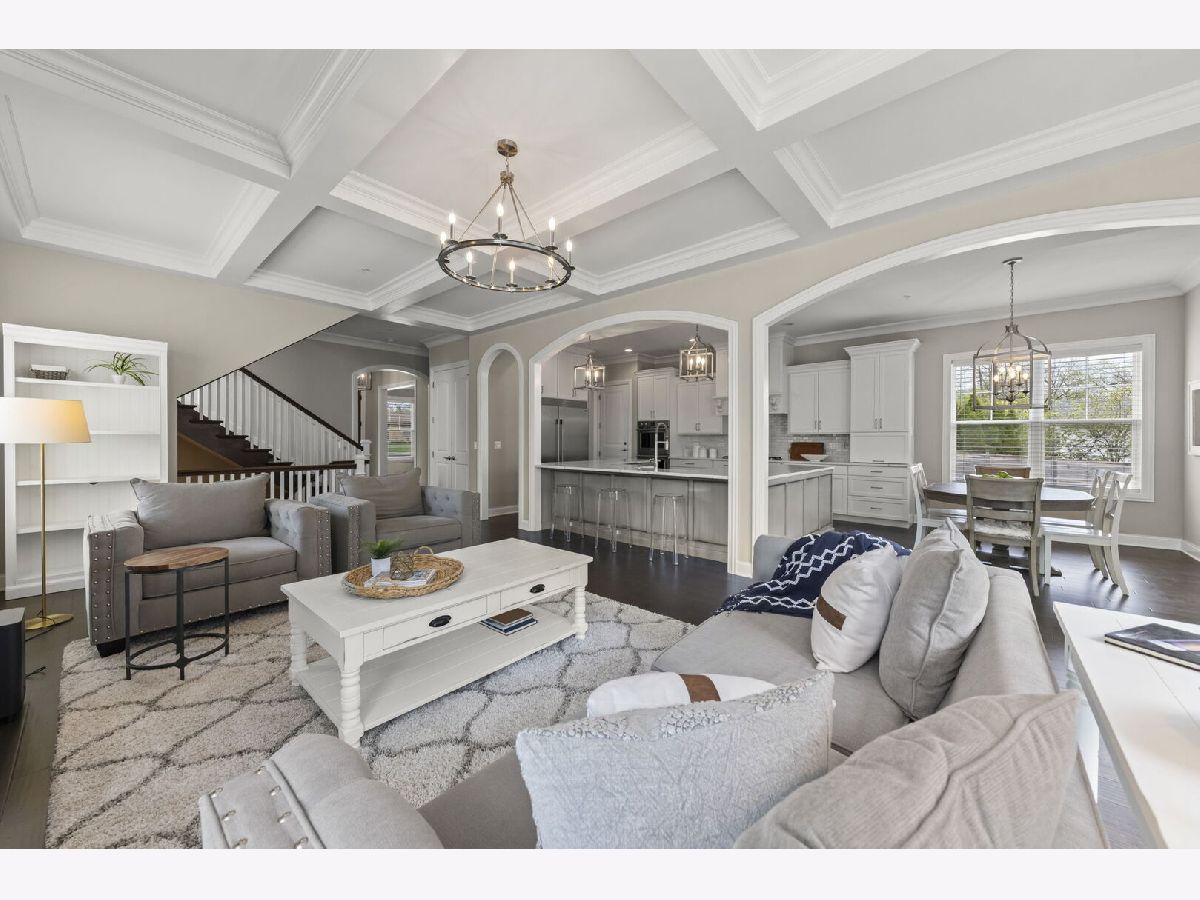 Welcome to 359 Hawthorne in Glen Ellyn, a thoughtfully designed custom-built Smart Home crafted by Abigail Builders in 2020. Blending the timeless elegance of traditional style with the sleek, contemporary appeal of transitional elements, this 5bedroom, 3.5 bathroom home offers impressive craftmanship and attention to detail, a perfect combination of elegance and everyday comfort. Upon entry, you are greeted by soaring 10ft ceilings and rich engineered wood flooring, formal dining with tray ceiling and sophisticated living room/ home office with French doors and wainscoting. At the heart of the home, the gourmet kitchen features custom cabinetry, high-end appliances including Wolf range top, Professional series built-in refrigerator full size freezer, double oven, an expansive center island with seating, stunning quartz countertops, breakfast nook, walk-in pantry and butler's pantry with beverage fridge, ideal for hosting. The open-concept family room with coffered ceiling is warm and inviting centered around a fireplace with custom wood mantle and marble surround. Large windows and sliding doors fill the space with natural light and lead to deck over looking private yard with mature trees. A stylish powder room and a functional mudroom with custom storage and attached 2-car garage complete the main level. Upstairs the 9-foot ceilings and a sun-filled landing create and airy feel. The impressive primary suite serves as a true retreat, complete with a spa-inspired bath with dual vanities, a spacious walk-in steam shower, and an impressive custom 14x15 walk-in closet with a vanity, center island, and direct access to the laundry room. Three additional bedrooms complete the second floor. The deep-pour walk-out finished basement expands the living space with abundant natural light, a fifth bedroom, full bathroom, private office and flexible recreation space. Car enthusiasts and hobbyists will appreciate the additional 3-car detached garage with additional second story storage. *All furniture, garage refrigerator, garage golf simulator are negotiable with sale of the home, offering a unique turnkey opportunity.