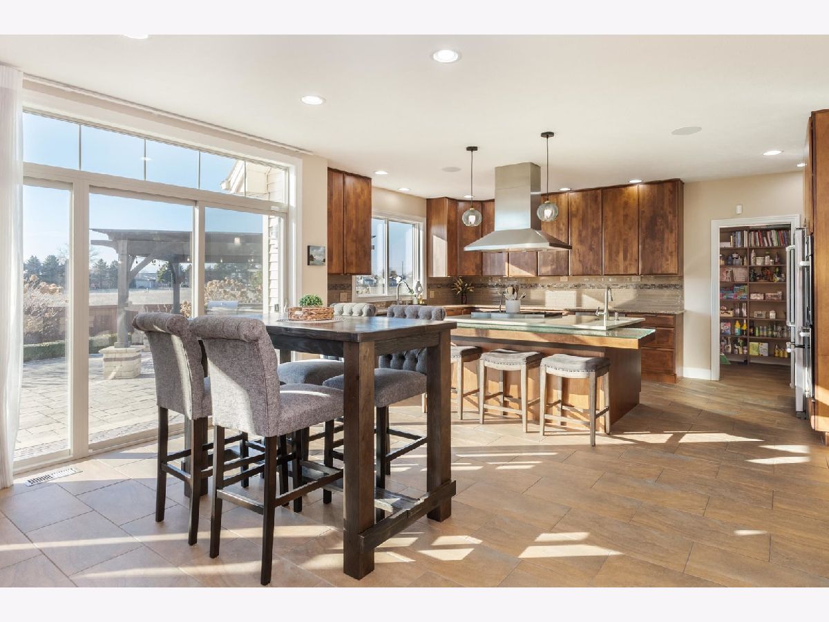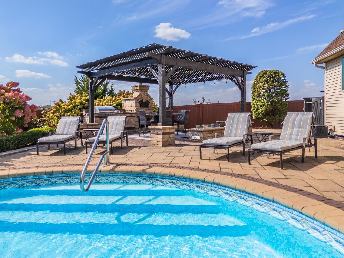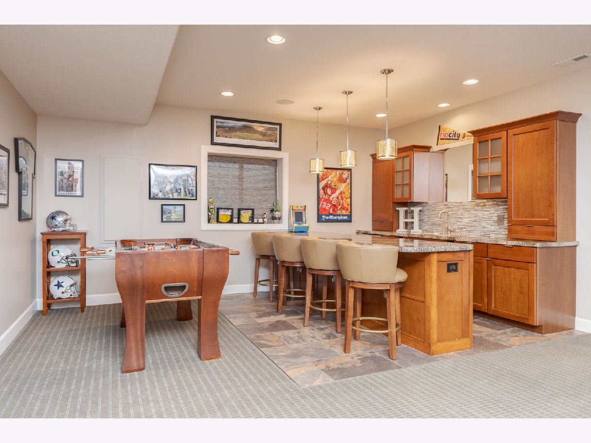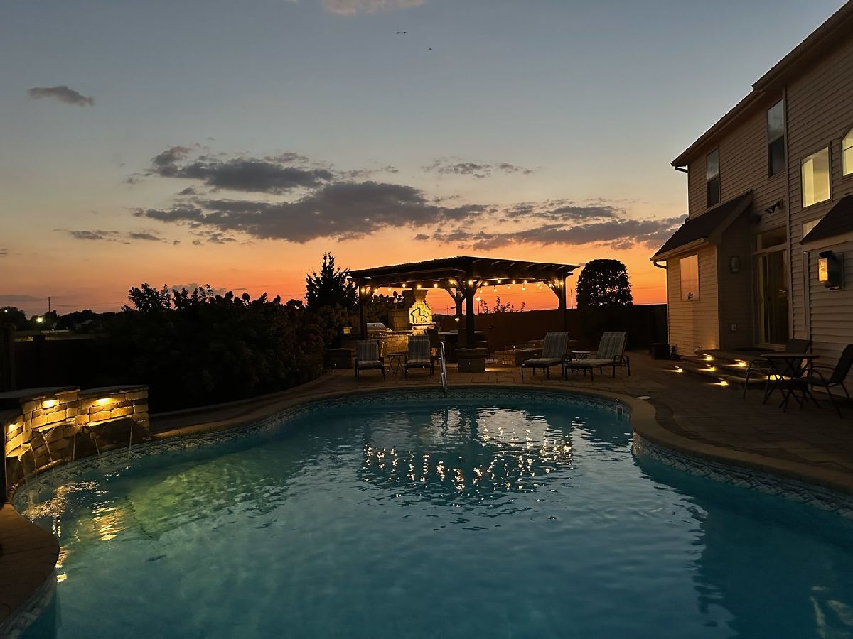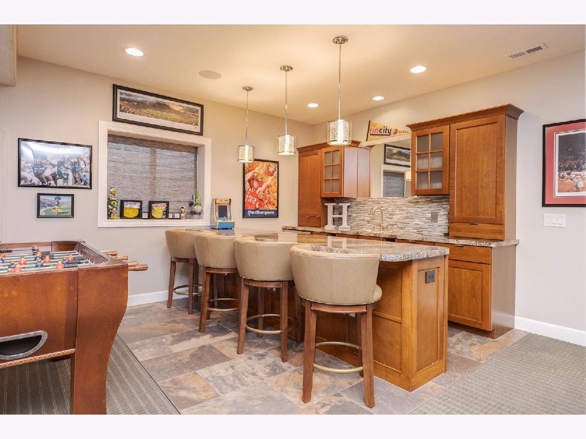 Luxury 1.5-story home with main-floor primary suite, finished basement, and private backyard oasis with in-ground pool. This stunning home is located in one of the exclusive neighborhoods in Normal. It is filled with high-end upgrades, custom built-ins, and designer finishes throughout. The dramatic two-story great room and foyer feature a beamed ceiling, creating an impressive first impression. The gourmet chef's kitchen showcases contemporary design with premium JennAir and Wolf stainless steel appliances, double wall ovens (convection and conventional), quartz countertops, oversized island with breakfast bar, extra-tall cabinetry, abundant counter space, and a large walk-in pantry. Enjoy both a casual dining area and a formal dining room or flex space with custom built-in bookcases. The great room features a custom fireplace surround with built-in entertainment and wall units. The luxurious main-floor primary bedroom offers a spa-inspired en-suite bath with heated floors, walk-in shower, dual vanities, and an expansive walk-in closet with custom organizers. The home includes five bedrooms, including a basement bedroom with tile flooring and double closet, currently used as a home gym. The finished lower level is ideal for entertaining, featuring a large recreation or family room with wet bar and ample storage space. Additional upgrades include zoned heating and cooling, NEST thermostats (new 2025), Hunter Douglas window treatments, central vacuum system, alarm system, irrigation system with new control panel, dual water meters, and 6-zone whole-home audio wiring. The main-floor laundry and mudroom offers built-in lockers, extra cabinetry, and access to the heated three-car garage. Beautiful wood flooring and hard-surface floors span the main level. Relax outdoors in the fully fenced backyard featuring an in-ground swimming pool with new heater and pump (2024), paver patio, pergola, and outdoor kitchen with gas grill and wood-fired pizza oven. This exceptional home, custom built by Trunk Bay Construction features top of the line material and design throughout! Better than new and offered for an incredible price for all the amazing features and upgrades! It blends luxury, comfort, and functionality-perfect for everyday living and entertaining.