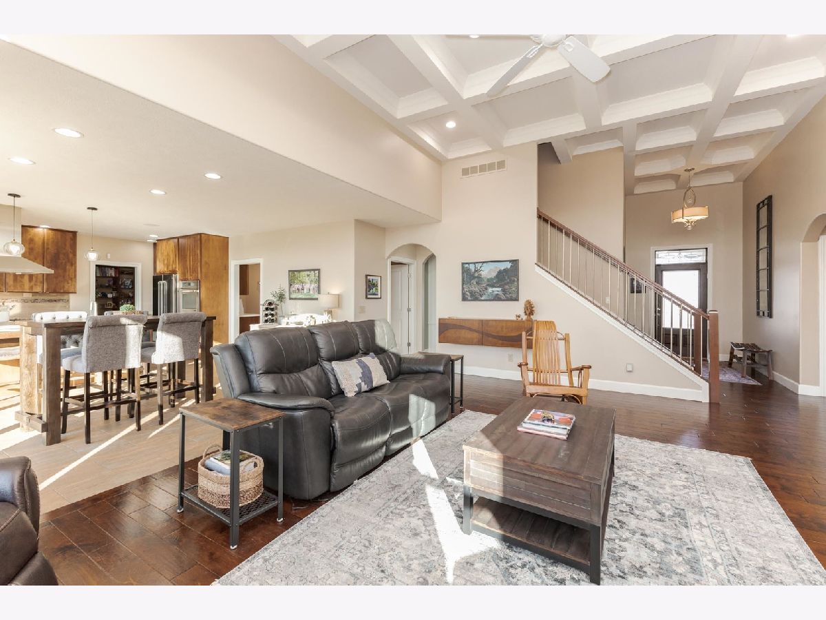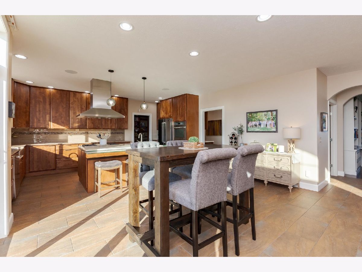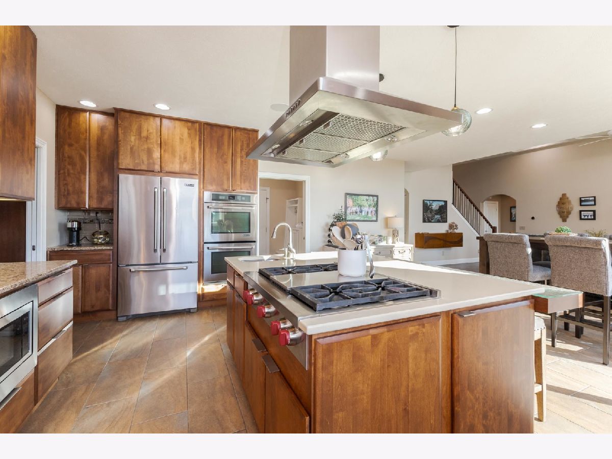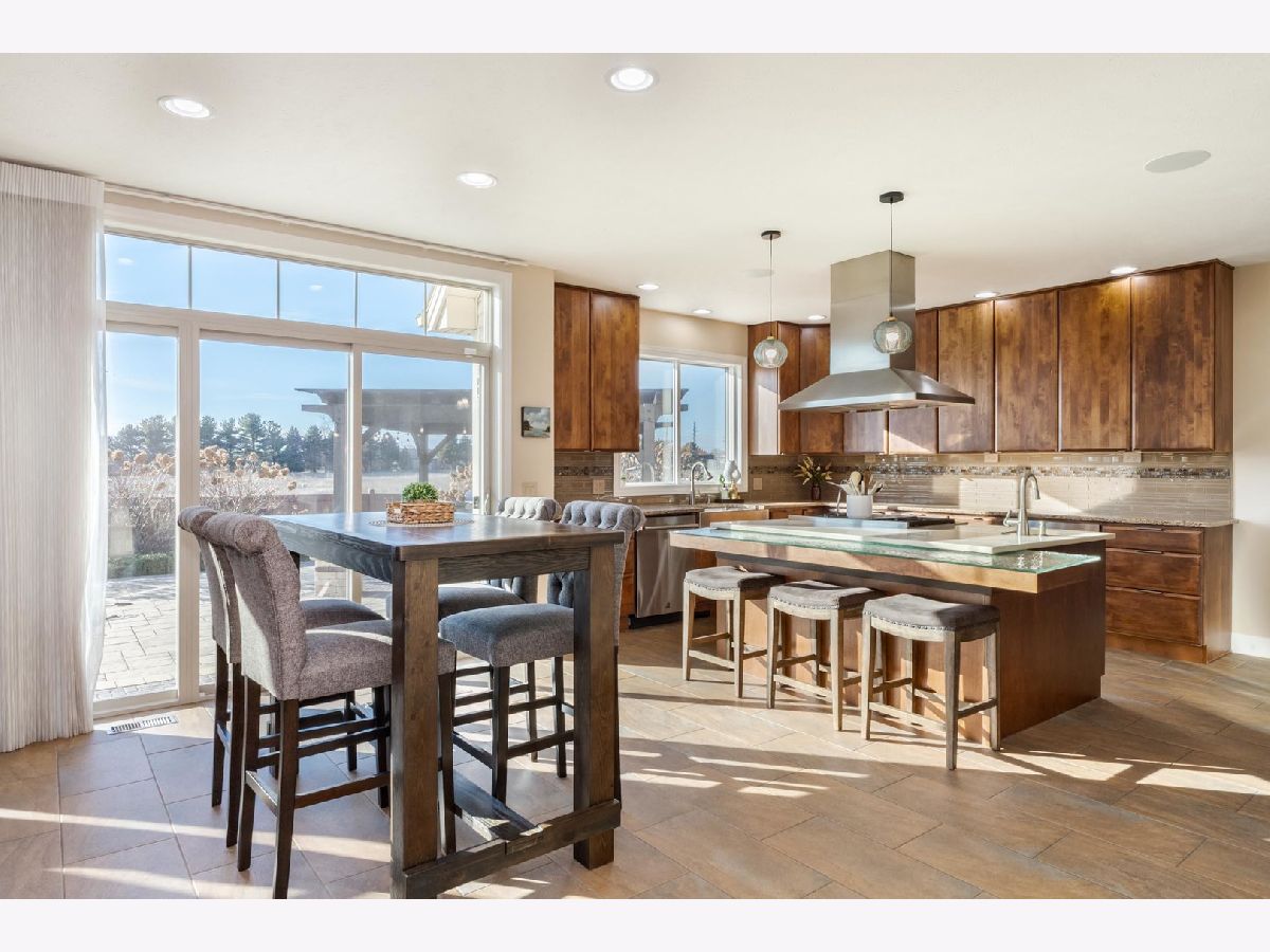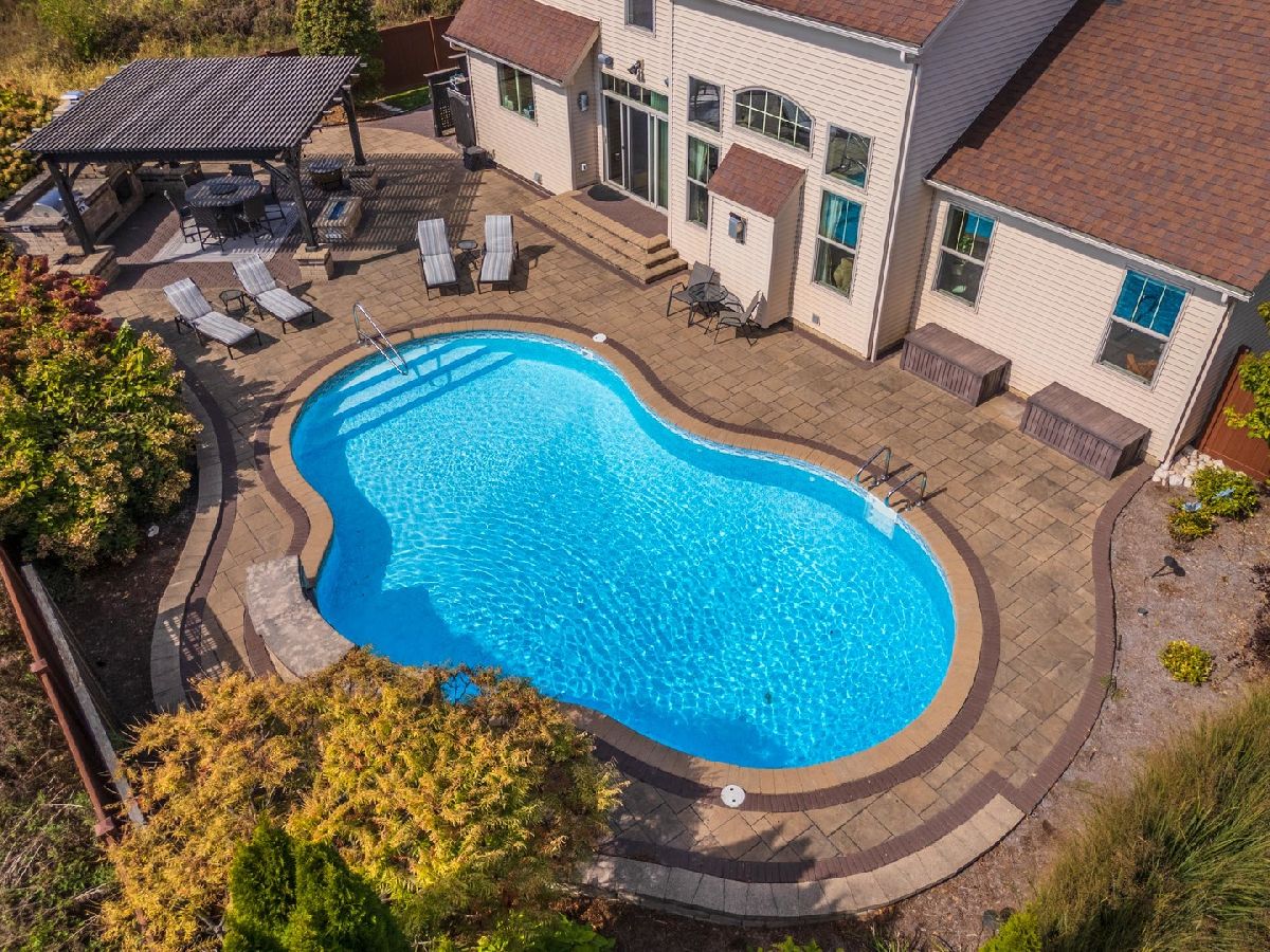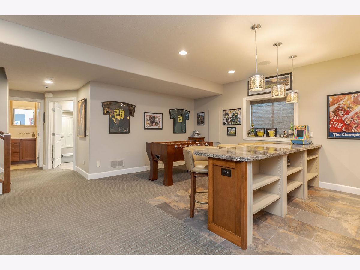 Luxury 1.5-story home with main-floor primary suite, finished basement, and private backyard oasis with in-ground pool. This stunning home is located in one of the exclusive neighborhoods in Normal. It is filled with high-end upgrades, custom built-ins, and designer finishes throughout. The dramatic two-story great room and foyer feature a beamed ceiling, creating an impressive first impression. The gourmet chef's kitchen showcases contemporary design with premium JennAir and Wolf stainless steel appliances, double wall ovens (convection and conventional), quartz countertops, oversized island with breakfast bar, extra-tall cabinetry, abundant counter space, and a large walk-in pantry. Enjoy both a casual dining area and a formal dining room or flex space with custom built-in bookcases. The great room features a custom fireplace surround with built-in entertainment and wall units. The luxurious main-floor primary bedroom offers a spa-inspired en-suite bath with heated floors, walk-in shower, dual vanities, and an expansive walk-in closet with custom organizers. The home includes five bedrooms, including a basement bedroom with tile flooring and double closet, currently used as a home gym. The finished lower level is ideal for entertaining, featuring a large recreation or family room with wet bar and ample storage space. Additional upgrades include zoned heating and cooling, NEST thermostats (new 2025), Hunter Douglas window treatments, central vacuum system, alarm system, irrigation system with new control panel, dual water meters, and 6-zone whole-home audio wiring. The main-floor laundry and mudroom offers built-in lockers, extra cabinetry, and access to the heated three-car garage. Beautiful wood flooring and hard-surface floors span the main level. Relax outdoors in the fully fenced backyard featuring an in-ground swimming pool with new heater and pump (2024), paver patio, pergola, and outdoor kitchen with gas grill and wood-fired pizza oven. This exceptional home, custom built by Trunk Bay Construction features top of the line material and design throughout! Better than new and offered for an incredible price for all the amazing features and upgrades! It blends luxury, comfort, and functionality-perfect for everyday living and entertaining.