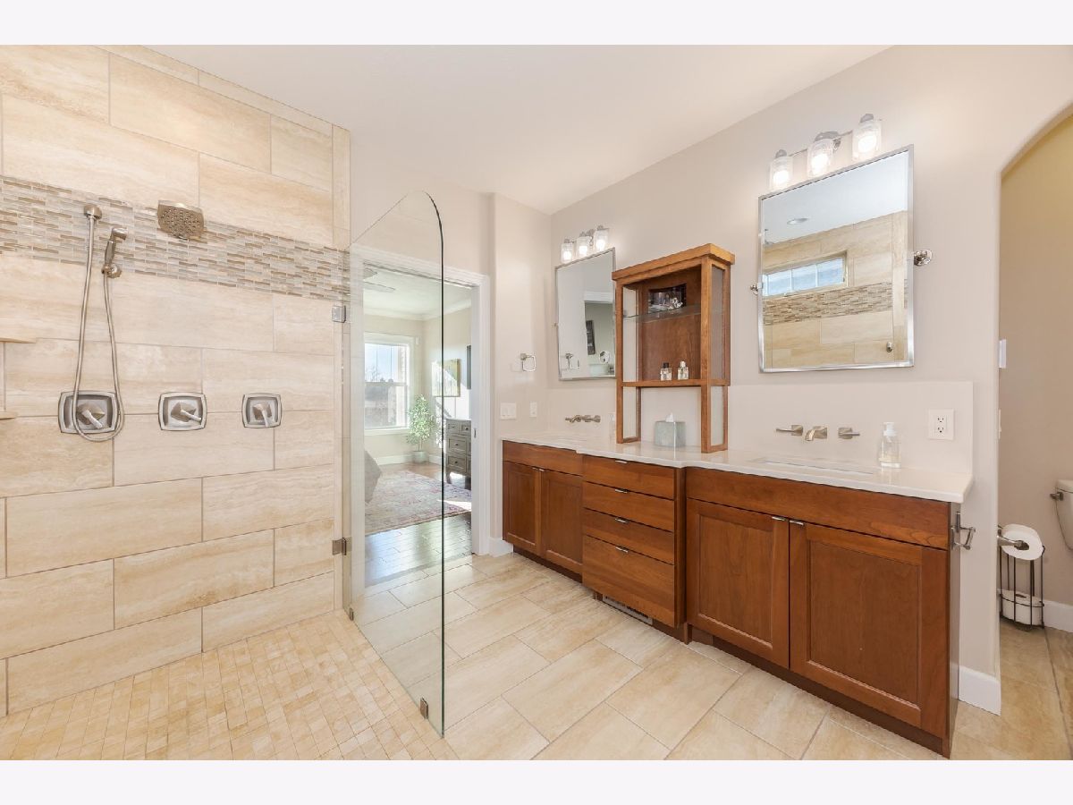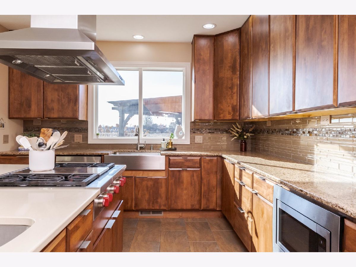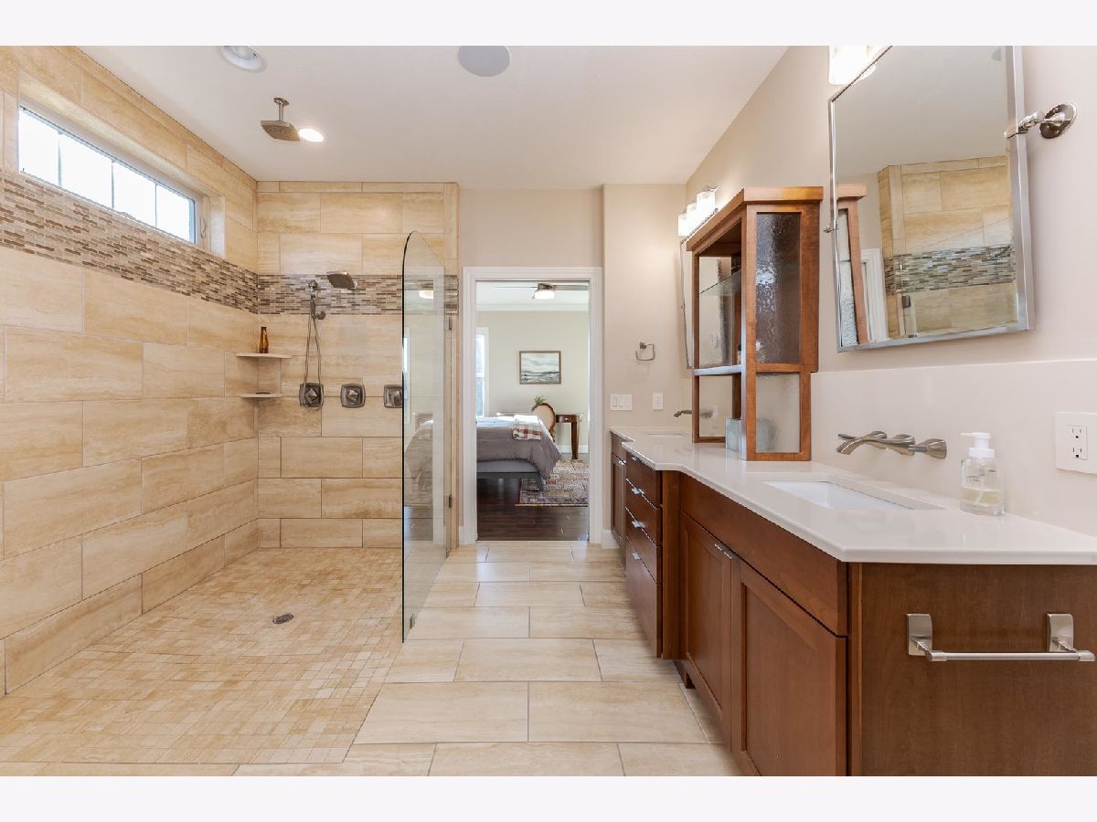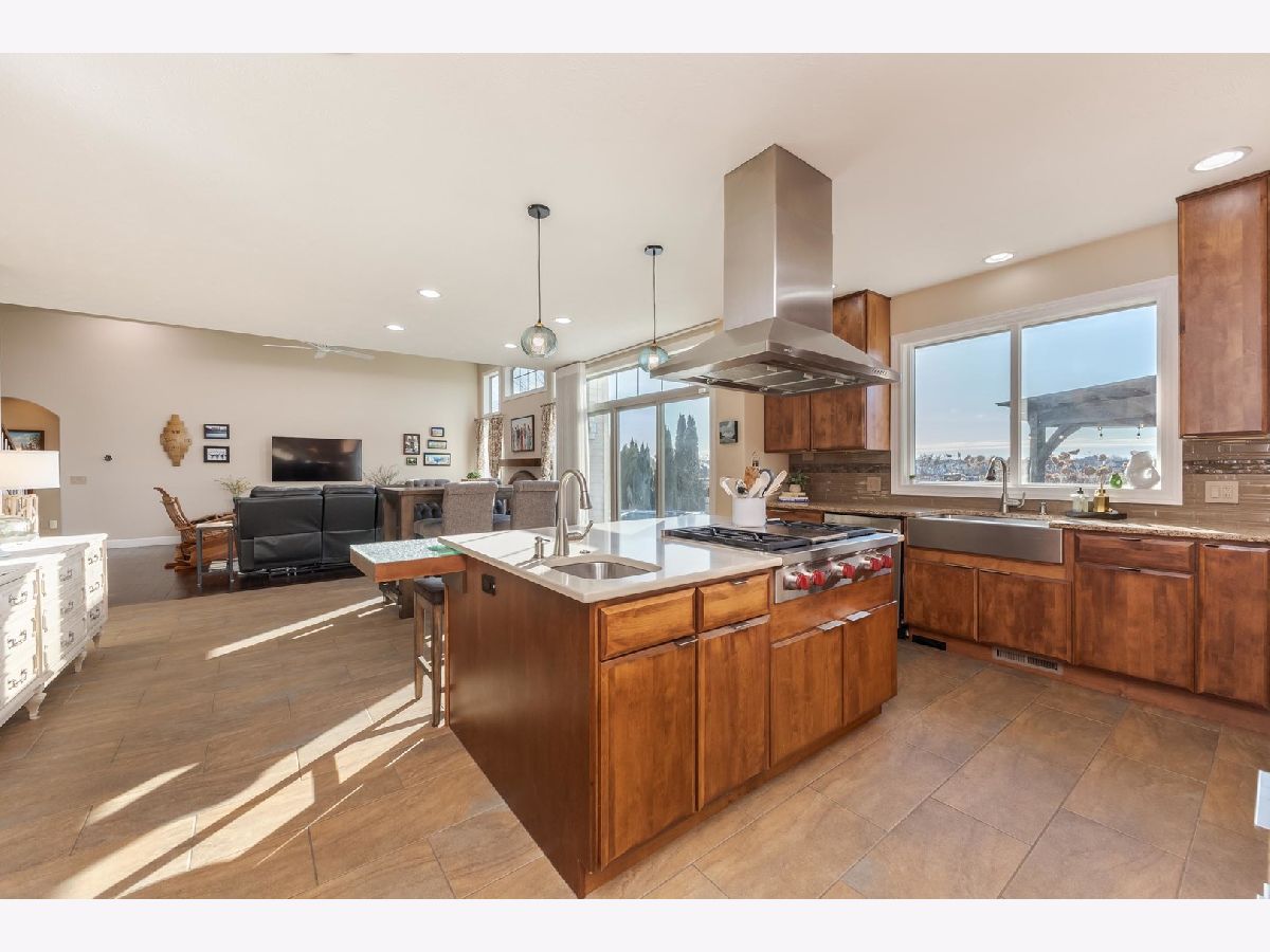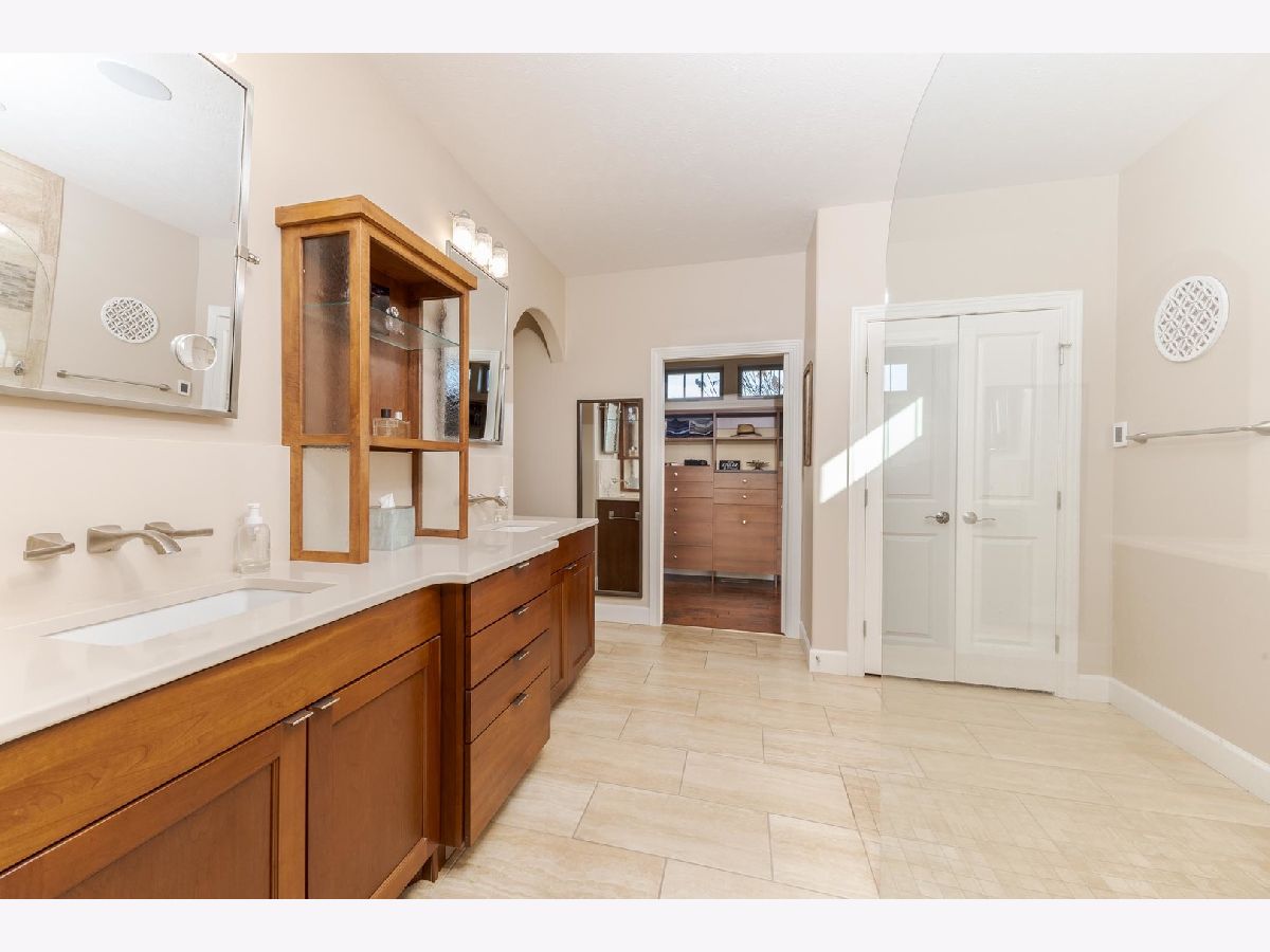 Luxury 1.5-story home with main-floor primary suite, finished basement, and private backyard oasis with in-ground pool. This stunning home is located in one of the exclusive neighborhoods in Normal. It is filled with high-end upgrades, custom built-ins, and designer finishes throughout. The dramatic two-story great room and foyer feature a beamed ceiling, creating an impressive first impression. The gourmet chef's kitchen showcases contemporary design with premium JennAir and Wolf stainless steel appliances, double wall ovens (convection and conventional), quartz countertops, oversized island with breakfast bar, extra-tall cabinetry, abundant counter space, and a large walk-in pantry. Enjoy both a casual dining area and a formal dining room or flex space with custom built-in bookcases. The great room features a custom fireplace surround with built-in entertainment and wall units. The luxurious main-floor primary bedroom offers a spa-inspired en-suite bath with heated floors, walk-in shower, dual vanities, and an expansive walk-in closet with custom organizers. The home includes five bedrooms, including a basement bedroom with tile flooring and double closet, currently used as a home gym. The finished lower level is ideal for entertaining, featuring a large recreation or family room with wet bar and ample storage space. Additional upgrades include zoned heating and cooling, NEST thermostats (new 2025), Hunter Douglas window treatments, central vacuum system, alarm system, irrigation system with new control panel, dual water meters, and 6-zone whole-home audio wiring. The main-floor laundry and mudroom offers built-in lockers, extra cabinetry, and access to the heated three-car garage. Beautiful wood flooring and hard-surface floors span the main level. Relax outdoors in the fully fenced backyard featuring an in-ground swimming pool with new heater and pump (2024), paver patio, pergola, and outdoor kitchen with gas grill and wood-fired pizza oven. This exceptional home, custom built by Trunk Bay Construction features top of the line material and design throughout! Better than new and offered for an incredible price for all the amazing features and upgrades! It blends luxury, comfort, and functionality-perfect for everyday living and entertaining.