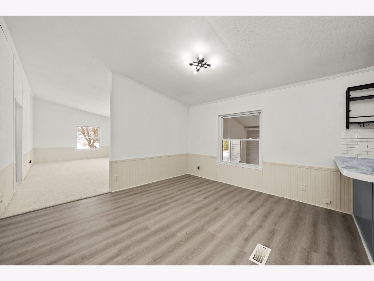 Spacious & Renovated 1989 Schultz Vinewood Model Double-Wide: Discover comfort and an open, airy layout in this beautifully updated 3-bedroom, 2-bath home located in the desirable 55+ Maple Ridge community. This double-wide features central air, a bright open floor plan with vaulted ceilings and abundant natural light from large surrounding windows. The renovated kitchen includes a peninsula island, plentiful cabinetry, generous counter space, and new stainless-steel appliances. All three bedrooms are spacious with large closets and are conveniently situated near an updated full bath. The expansive primary suite offers new carpeting and an en-suite bath with a double-sink vanity, whirlpool tub (switch to turn on tub is outside the bathroom door), and separate shower. A dedicated laundry room includes a washer and dryer. Enjoy the enclosed porch, or step outside to a private pergola-covered patio and backyard. In addition, there is an open field behind the home for added privacy. Additional conveniences include a 1-car garage and concrete side driveway. Recent updates include: new flooring, new carpet, remodeled kitchen, updated bathrooms, new fixtures, roof (approx. 6 years), and water heater (approx. 9 years). Move in Ready! Buyer must receive park approval prior to purchase. Fees: $50 move in fee; $30 application fee; $738 monthly lot rent; $387/year garage, breezeway & deck tax; $165 Kankakee sticker tax. Move-in ready!