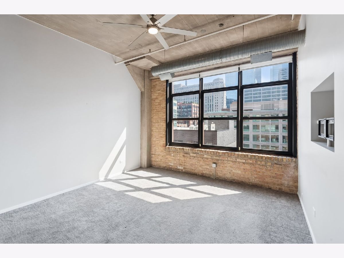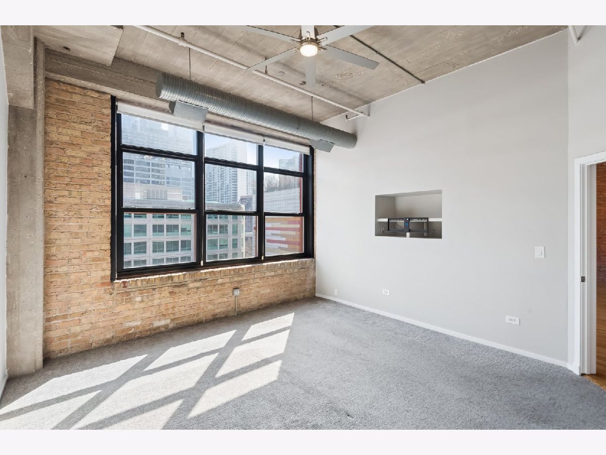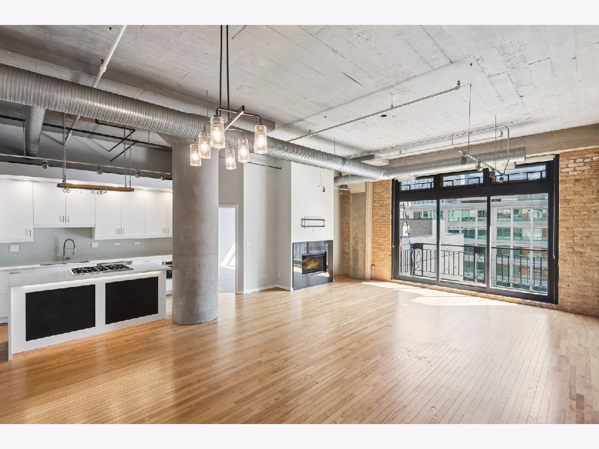 South-facing, beautifully updated 2 bed, 2 bath concrete loft offering over 1,600 square feet of bright, open living space. This home features two fully enclosed bedrooms, each with spacious custom closets. The thoughtfully designed floor plan showcases soaring 12-foot ceilings, gorgeous hardwood floors, a gas fireplace, exposed brick, and classic loft elements including columns and ductwork. A full wall of south-facing windows floods the space with natural light throughout the day. The updated kitchen features a modern backsplash, large island, generous prep space, and ample storage including a pantry. Just off the living area, a private balcony provides the perfect setup for grilling and outdoor seating. The primary suite includes a stunning, spa-inspired bathroom with double vanities and a beautifully designed walk-in shower. Located in The Sexton, one of River North's premier buildings, residents enjoy 24-hour door staff, on-site management, a landscaped courtyard and sundeck, fitness center, dry cleaner, storage, and a bike room. Unbeatable location just steps from East Bank Club, top restaurants, shopping, the Merchandise Mart, and convenient access to highways, buses, and the Brown, Purple, and Red lines. One garage parking space available for $25,000 with an EV charging station.