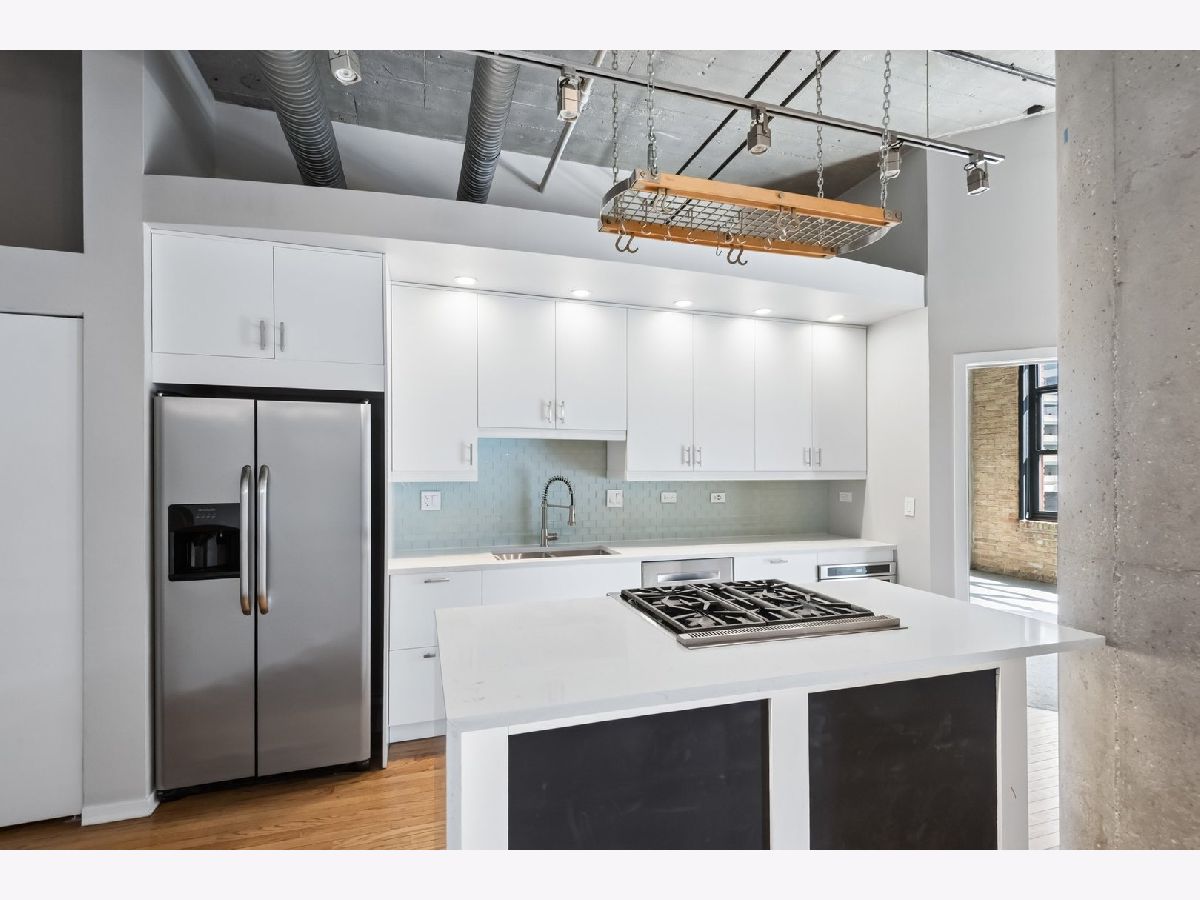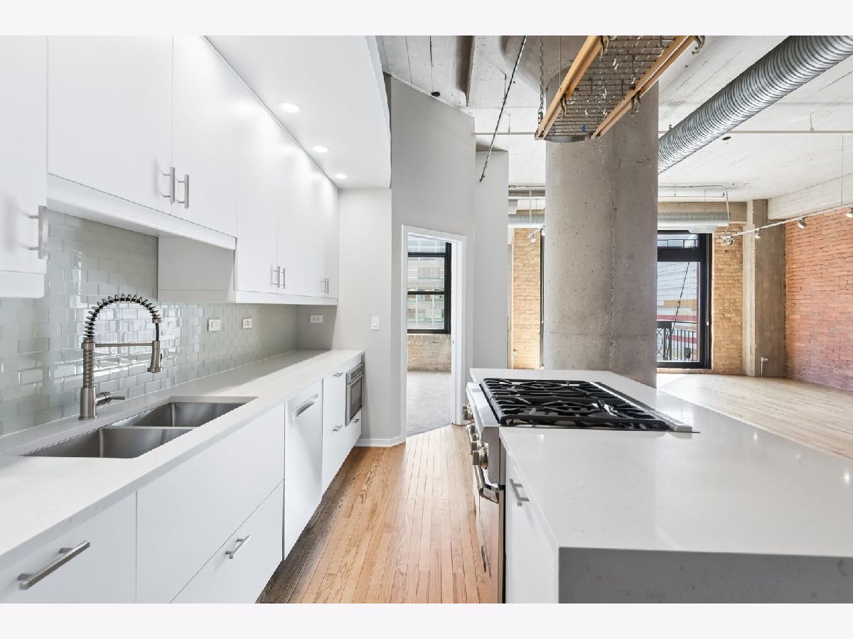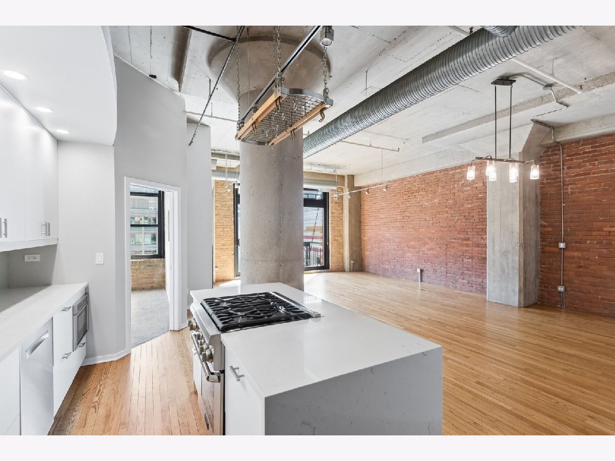 South-facing, beautifully updated 2 bed, 2 bath concrete loft offering over 1,600 square feet of bright, open living space. This home features two fully enclosed bedrooms, each with spacious custom closets. The thoughtfully designed floor plan showcases soaring 12-foot ceilings, gorgeous hardwood floors, a gas fireplace, exposed brick, and classic loft elements including columns and ductwork. A full wall of south-facing windows floods the space with natural light throughout the day. The updated kitchen features a modern backsplash, large island, generous prep space, and ample storage including a pantry. Just off the living area, a private balcony provides the perfect setup for grilling and outdoor seating. The primary suite includes a stunning, spa-inspired bathroom with double vanities and a beautifully designed walk-in shower. Located in The Sexton, one of River North's premier buildings, residents enjoy 24-hour door staff, on-site management, a landscaped courtyard and sundeck, fitness center, dry cleaner, storage, and a bike room. Unbeatable location just steps from East Bank Club, top restaurants, shopping, the Merchandise Mart, and convenient access to highways, buses, and the Brown, Purple, and Red lines. One garage parking space available for $25,000 with an EV charging station.