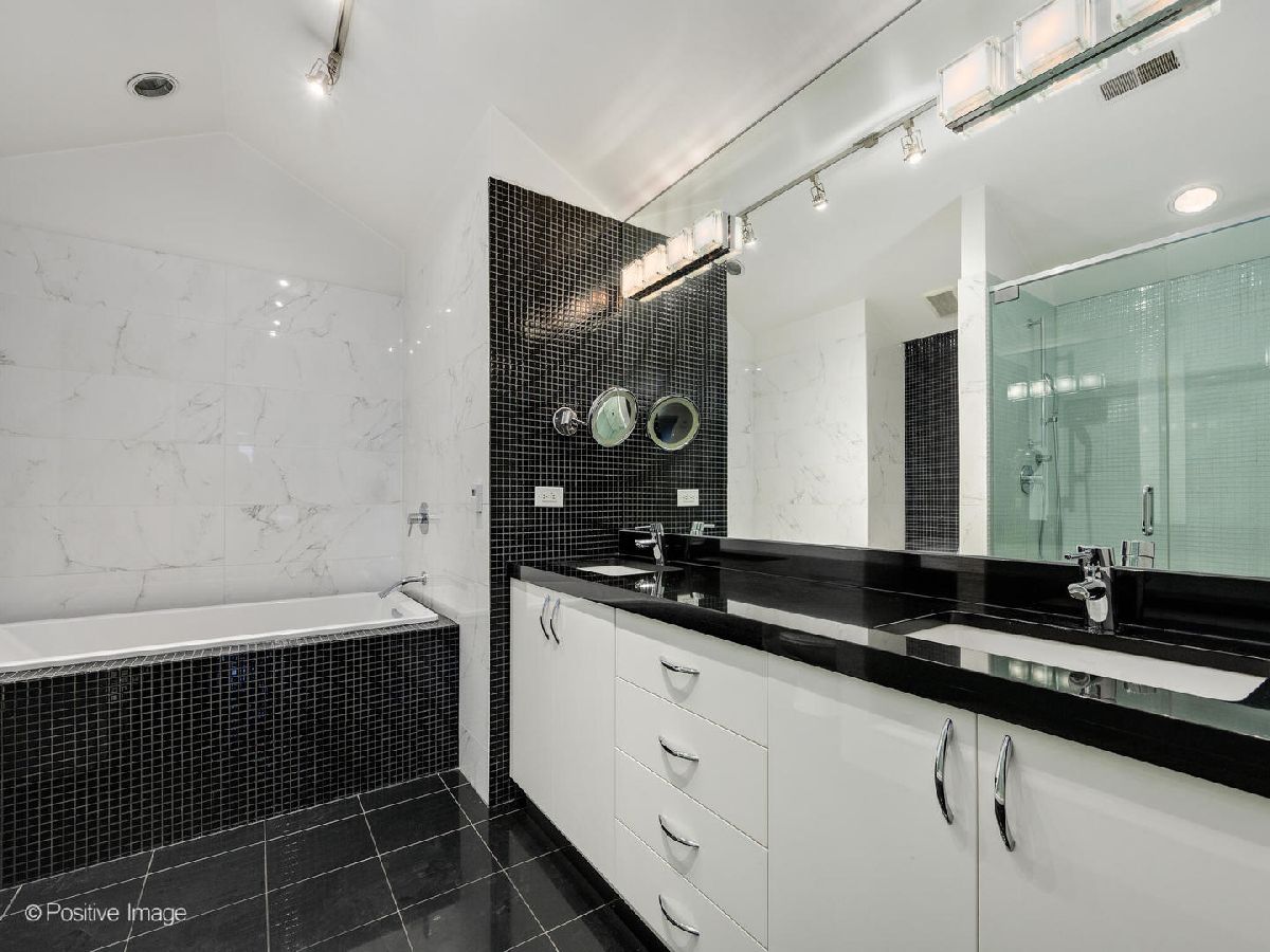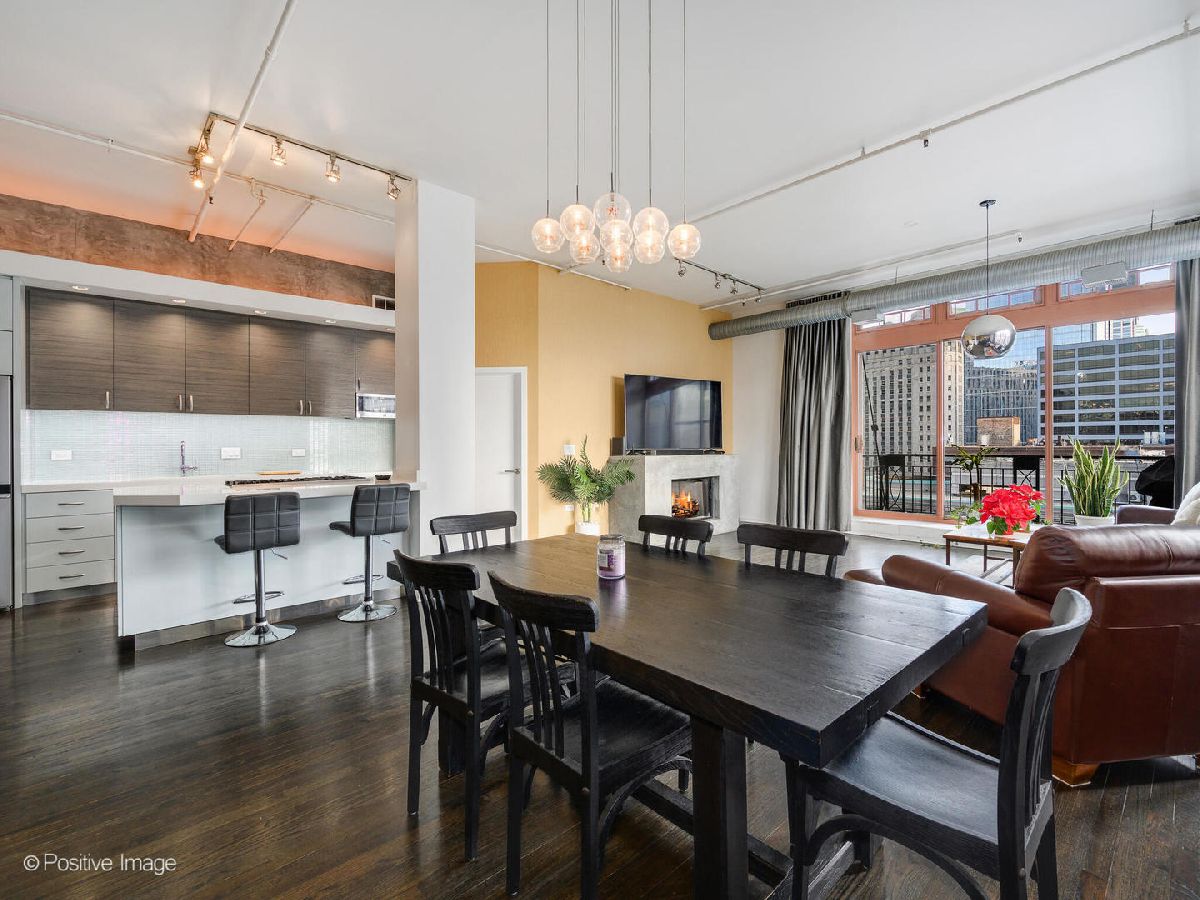 Stunning, fully renovated Penthouse "F" tier residence at The Sexton in the heart of River North. This expansive 2 bed / 2 bath concrete loft with soaring 12' ceilings and a dramatic wall of windows has undergone a complete top-to-bottom renovation. Every surface thoughtfully redesigned with modern, high-end finishes while preserving the authentic loft character. The open-concept floor plan is anchored by an industrial concrete fireplace and flows seamlessly to a private balcony with breathtaking southern skyline views - ideal for grilling and entertaining. The brand-new kitchen features custom cabinetry, premium appliances, quartz countertops, and designer lighting throughout. Glass and metal dimmable fixtures, layered accent/backdrop lighting, and clean architectural lines elevate the entire space. Both bathrooms have been completely reimagined with full tile surrounds (no painted walls), new sinks, faucets, custom showers, and an oversized soaking tub in the spa-inspired primary bath. The king-sized primary suite also includes a professionally organized walk-in closet with built-in shelving and drawers. Additional highlights include restored and restained hardwood floors, modern textured wallpaper in the hallway and living area, custom entry cabinetry, and a fully equipped laundry room. The Sexton is a full-amenity building offering 24/7 doorstaff, fitness center, on-site management, valet cleaners, and a landscaped courtyard. Unbeatable location just steps to River North's best dining and nightlife, East Bank Club, and easy expressway access. Heated premium garage parking is an additional $25,000, must be sold with the home. An exceptional value for a lovely recent renovation in one of River North's most sought-after buildings.
