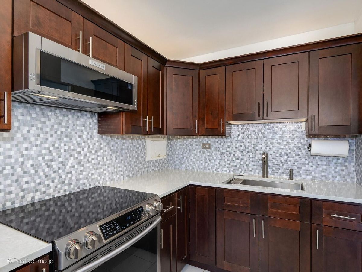 Oversized and sun-drenched one-bedroom condo in the heart of Lakeview at 360 W Wellington. This bright and inviting home features expansive windows that flood the space with natural light, a spacious bedroom with a walk-in closet, and a thoughtfully updated kitchen designed for both style and function. Recent improvements include updated cabinetry, quartz countertops, induction stovetop, over-the-range microwave, and new porcelain tile flooring. The bathroom offers a new vanity with granite countertop and updated plumbing. Additional enhancements include porcelain tile in the entryway and updated light fixtures. This quiet, well-managed building offers modern convenience with a ButterflyMX intercom system and an impressive rooftop deck with sweeping city views-perfect for relaxing or entertaining on summer evenings. Ideally located just steps from the lakefront, parks, premier shopping, dining, and easy access to multiple bus routes plus the Red and Brown Lines. Experience the very best of Lakeview living in this move-in ready home.