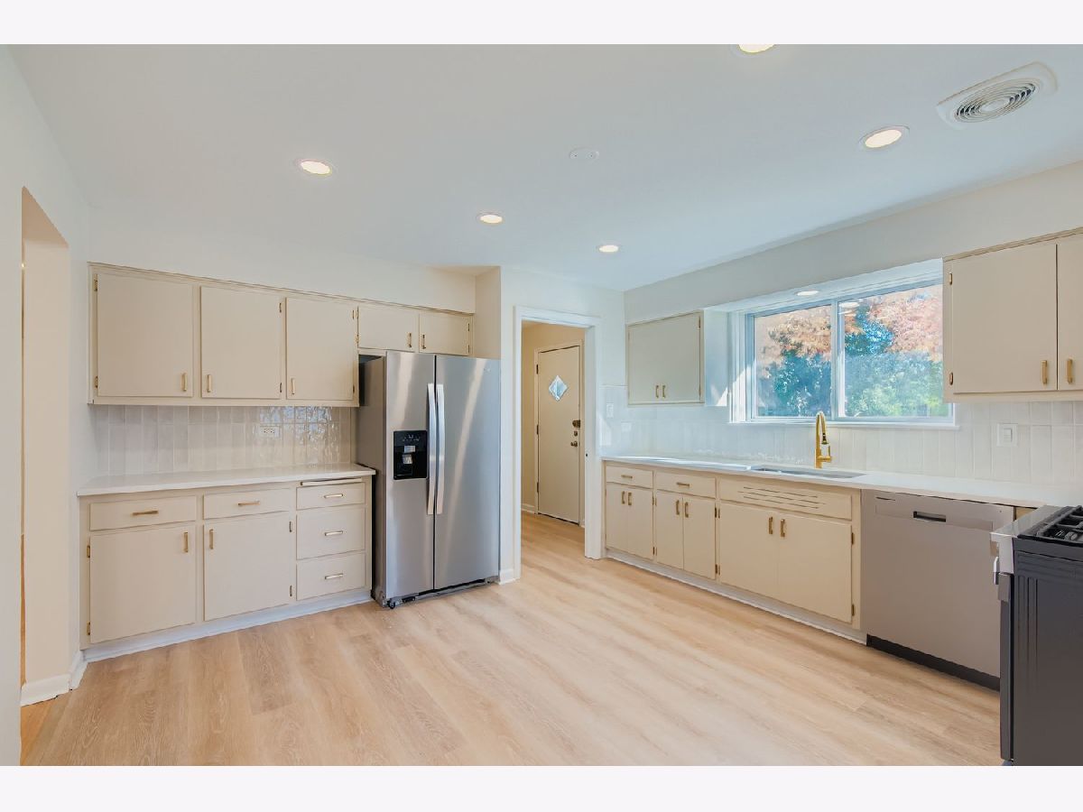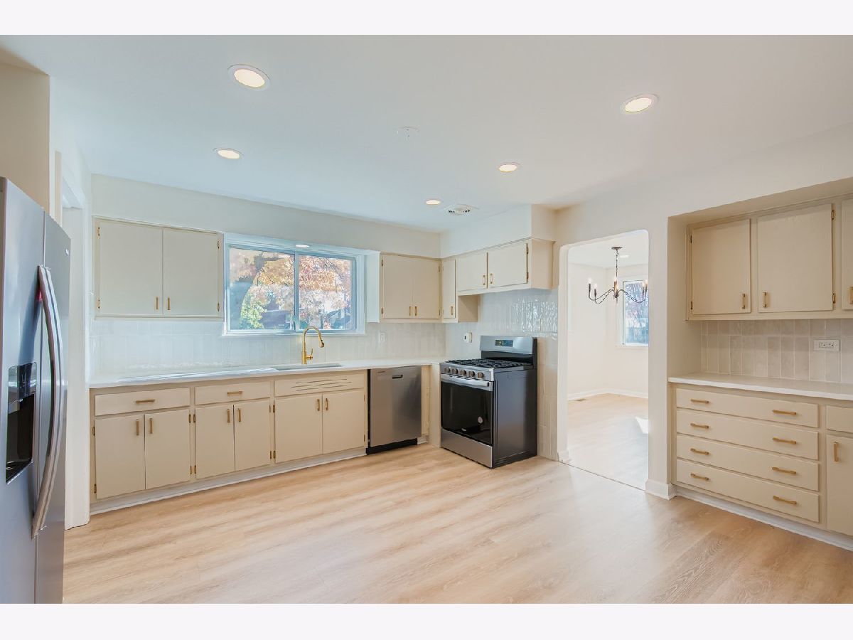 Welcome to this beautifully updated Brick Raised Ranch on a Corner Lot. This solid, freshly painted brick raised ranch offers 3 bedrooms and 2 full bathrooms in a desirable location. Step inside to find refinished hardwood floors and a bright layout. Both bathrooms have been tastefully updated, and the kitchen features refinished cabinets, new luxury vinyl flooring, quartz counter-tops, and brand-new stainless steel appliances-including a range, dishwasher, and refrigerator. Additional upgrades include updated lighting fixtures throughout, new 220-amp electrical panel and service, new central air conditioning and hvac system and duct-work, also a new sump pump. The basement has been fully refinished, providing extra living or entertainment space. The basement includes a family room with a full kitchen, refrigerator, stove, sink, cabinets, and counter tops. The basement also features a bar with stools, a fireplace, and built in book cases and reading bench. A 1 car brick garage and backyard patio adds to the appeal of this move-in-ready home. Don't miss this beautifully renovated property that blends classic charm with modern updates!