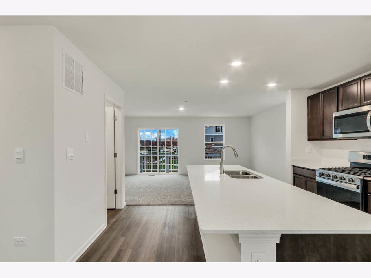 Discover yourself at 361 Bridgeview Ct., a beautiful new home in our Charlestowne Lakes community in St. Charles, Illinois. This townhome will be ready for a fall move-in! Homesite includes a fully sodded yard that is maintained throughout the year. This END UNIT Grant townhome plan offers over 1,800 square feet of living space with 3 bedrooms, 2.5 baths, and finished flex room. As soon as you step inside, you'll be greeted by the finished flex room, which is perfect as a den or playroom. Walking up the stairs, you will find this home's open concept living space. The expansive kitchen overlooks both the front dining and back great room areas, making it the ideal space to entertain. Additionally, your kitchen features flagstone designer cabinetry, a spacious island with quartz countertops, and pantry. Enjoy your large primary bedroom with a walk-in closet and connecting en suite bathroom. The rest of the upper level features a laundry room, secondary bedrooms with a full second bath, and linen closet. You'll find luxury vinyl plank flooring in the kitchen and dining areas on the main level living space, bathrooms, and laundry. Impressive innovative ERV furnace system and tankless water heater round out the amazing features this home has to offer! Charlestowne Lakes is an upscale townhome community, tucked off Rt. 64, in a highly desirable area, loaded with everyday conveniences, and just minutes from the flourishing downtown St. Charles. All Chicago homes include our America's Smart Home Technology, featuring a smart video doorbell, smart Honeywell thermostat, Amazon Echo Pop, smart door lock, Deako smart light switches and more. Photos are of similar home and model home. Actual home built may vary.