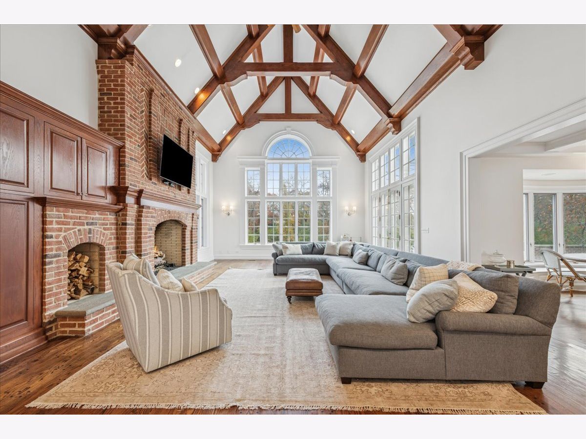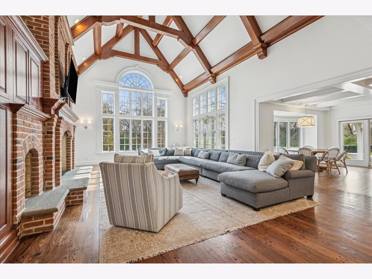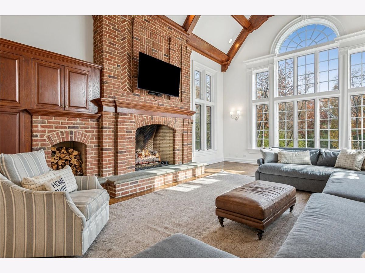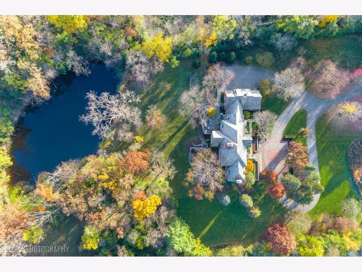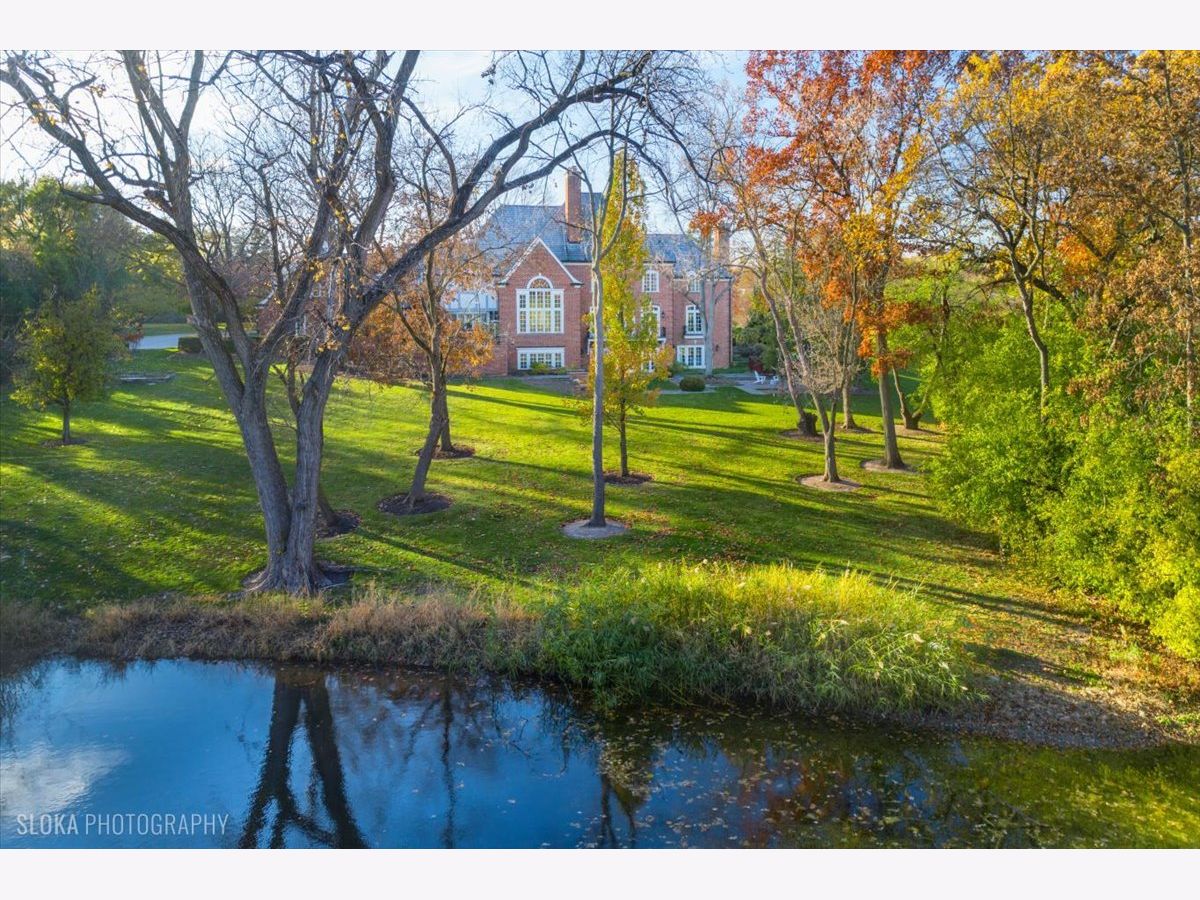 Luxurious, sophisticated, and timeless, this magnificent Barrington Hills estate is perfectly sited on a premier 5-acre waterfront setting-offering sweeping views, extraordinary privacy, and exceptional craftsmanship throughout. Custom millwork, arched passageways, gleaming hardwood floors, and five fireplaces create an atmosphere of warmth and refinement, while the home's flowing, light-filled layout invites effortless indoor/outdoor living. A grand two-story foyer with a curved staircase sets an elegant tone, revealing beautiful sightlines to the rear grounds. Formal living and dining rooms are complemented by a well-appointed butler's pantry with wet bar-ideal for hosting with ease. The striking great room impresses with soaring beamed cathedral ceilings, a dramatic brick fireplace, and an inviting, rustic-chic ambiance perfect for intimate gatherings. The newly renovated chef's kitchen is a true showpiece with custom inset cabinetry, quartzite counters, an oversized island with breakfast bar, high-end Thermador appliances, and a walk-in pantry. The adjoining breakfast room, wrapped in windows and featuring a charming bay window seat, frames picturesque views. Step directly outside to the bluestone patio and covered grilling station for seamless al fresco dining. A richly appointed main-floor library with cherry built-ins offers a quiet retreat or refined work-from-home space, conveniently located near a full bath. A spacious laundry room, mudroom with service entrance, rear staircase, and powder room complete the main level. Upstairs, the craftsmanship continues with a luxurious primary suite featuring a cozy fireplace, spa-like bath with whirlpool tub, glass door shower, and dual walk-in closets. Three generously sized secondary bedrooms-one ensuite and two sharing a Jack-and-Jill bath-along with a nursery or second office provide exceptional flexibility. A private guest wing enhances the home's versatility with its own living room, full kitchen, and ensuite bedroom, making it ideal for in-laws, long-term guests, or nanny. The expansive walkout lower level delivers even more living and entertaining space with a large recreation area, second kitchen, dining space, and direct access to the bluestone patio. A dedicated media/theater room, game or fitness room, wine cellar, half bath, and ensuite bedroom round out this impressive level. A heated 4-car garage with epoxy flooring, plus a large carport, accommodates guests and gatherings with ease. Multiple terraces, blue stone patios and pathways invite you to savor tranquil views of the pond and natural surroundings in every season. Meticulously maintained and thoughtfully updated, this remarkable estate offers a rare blend of beauty, privacy, and convenience-just minutes to town, train, riding trails, shopping, dining, and award-winning District 220 schools.