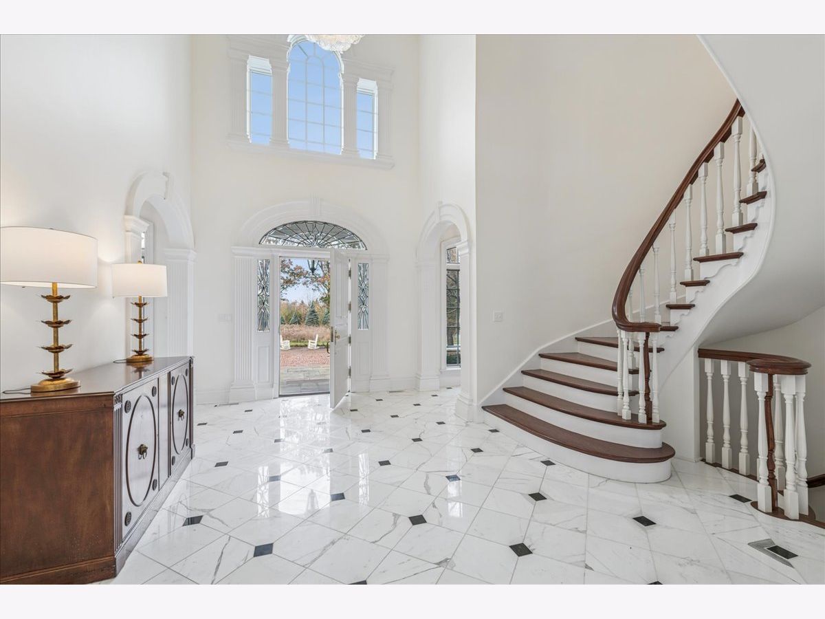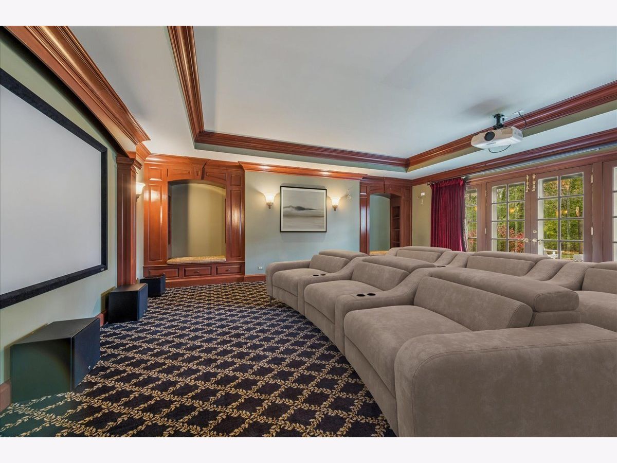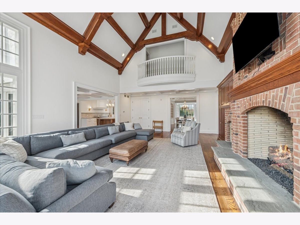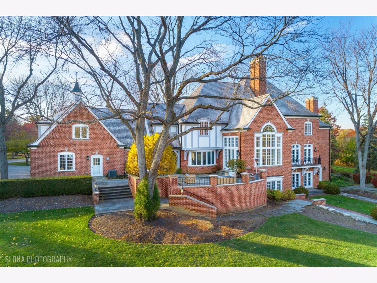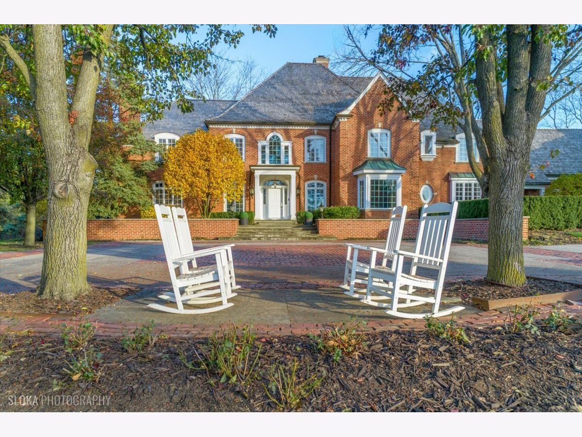 Luxurious, sophisticated, and timeless, this magnificent Barrington Hills estate is perfectly sited on a premier 5-acre waterfront setting-offering sweeping views, extraordinary privacy, and exceptional craftsmanship throughout. Custom millwork, arched passageways, gleaming hardwood floors, and five fireplaces create an atmosphere of warmth and refinement, while the home's flowing, light-filled layout invites effortless indoor/outdoor living. A grand two-story foyer with a curved staircase sets an elegant tone, revealing beautiful sightlines to the rear grounds. Formal living and dining rooms are complemented by a well-appointed butler's pantry with wet bar-ideal for hosting with ease. The striking great room impresses with soaring beamed cathedral ceilings, a dramatic brick fireplace, and an inviting, rustic-chic ambiance perfect for intimate gatherings. The newly renovated chef's kitchen is a true showpiece with custom inset cabinetry, quartzite counters, an oversized island with breakfast bar, high-end Thermador appliances, and a walk-in pantry. The adjoining breakfast room, wrapped in windows and featuring a charming bay window seat, frames picturesque views. Step directly outside to the bluestone patio and covered grilling station for seamless al fresco dining. A richly appointed main-floor library with cherry built-ins offers a quiet retreat or refined work-from-home space, conveniently located near a full bath. A spacious laundry room, mudroom with service entrance, rear staircase, and powder room complete the main level. Upstairs, the craftsmanship continues with a luxurious primary suite featuring a cozy fireplace, spa-like bath with whirlpool tub, glass door shower, and dual walk-in closets. Three generously sized secondary bedrooms-one ensuite and two sharing a Jack-and-Jill bath-along with a nursery or second office provide exceptional flexibility. A private guest wing enhances the home's versatility with its own living room, full kitchen, and ensuite bedroom, making it ideal for in-laws, long-term guests, or nanny. The expansive walkout lower level delivers even more living and entertaining space with a large recreation area, second kitchen, dining space, and direct access to the bluestone patio. A dedicated media/theater room, game or fitness room, wine cellar, half bath, and ensuite bedroom round out this impressive level. A heated 4-car garage with epoxy flooring, plus a large carport, accommodates guests and gatherings with ease. Multiple terraces, blue stone patios and pathways invite you to savor tranquil views of the pond and natural surroundings in every season. Meticulously maintained and thoughtfully updated, this remarkable estate offers a rare blend of beauty, privacy, and convenience-just minutes to town, train, riding trails, shopping, dining, and award-winning District 220 schools.